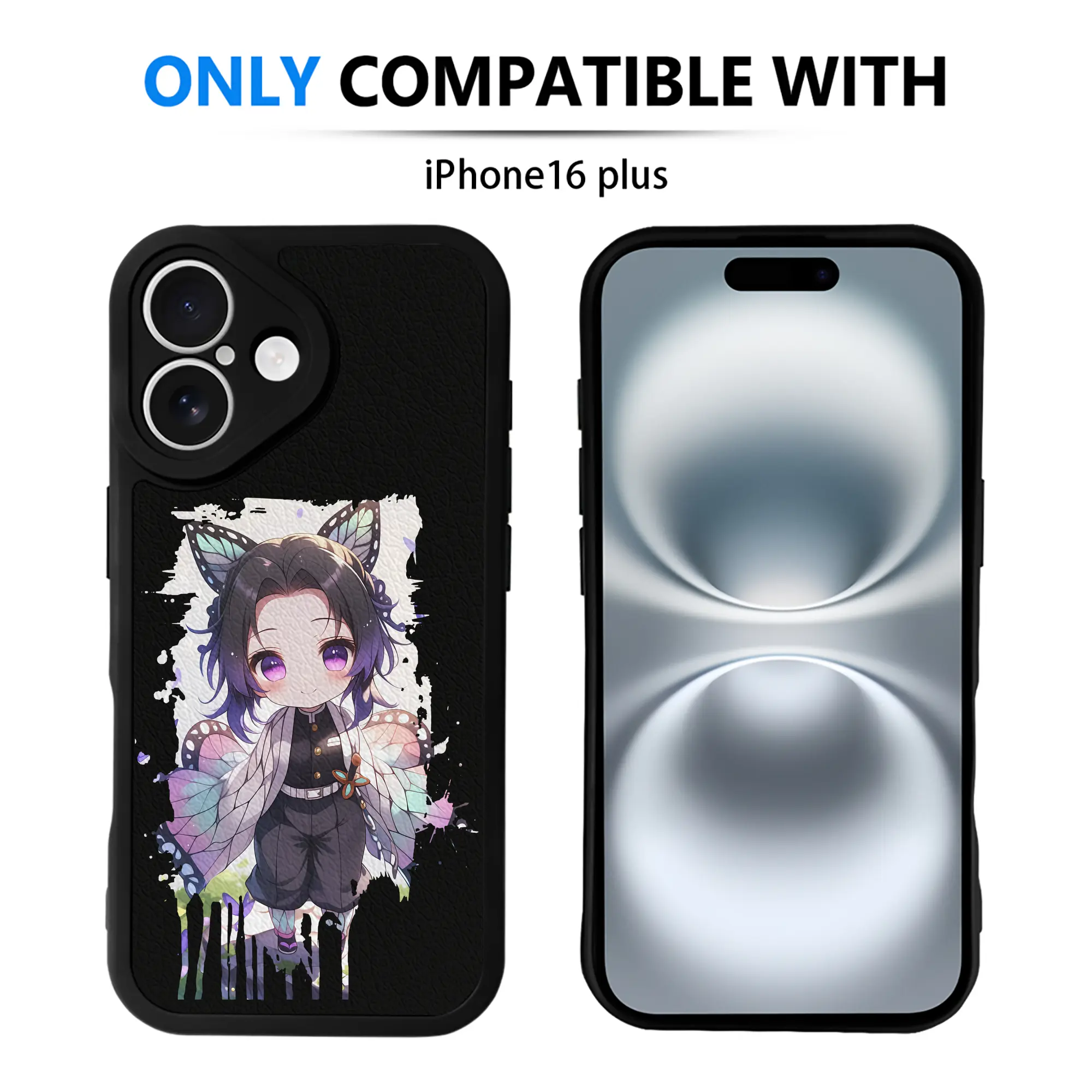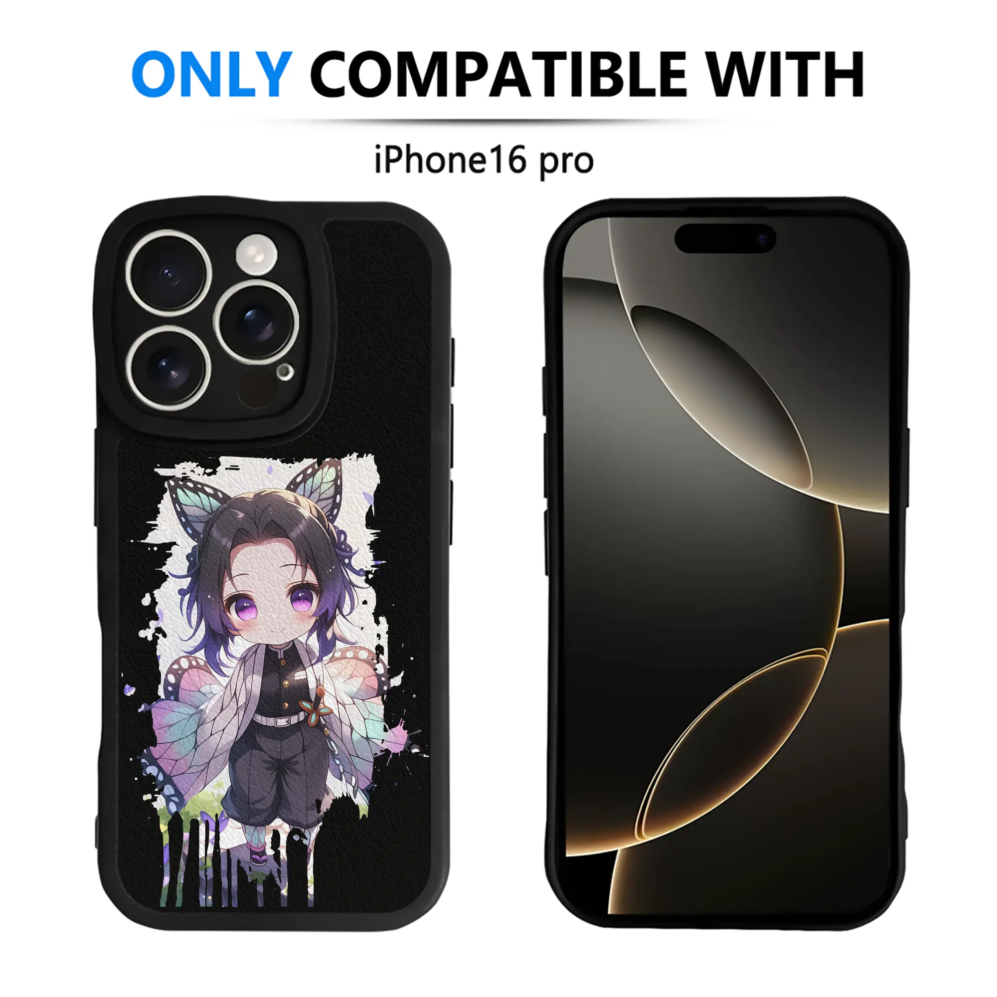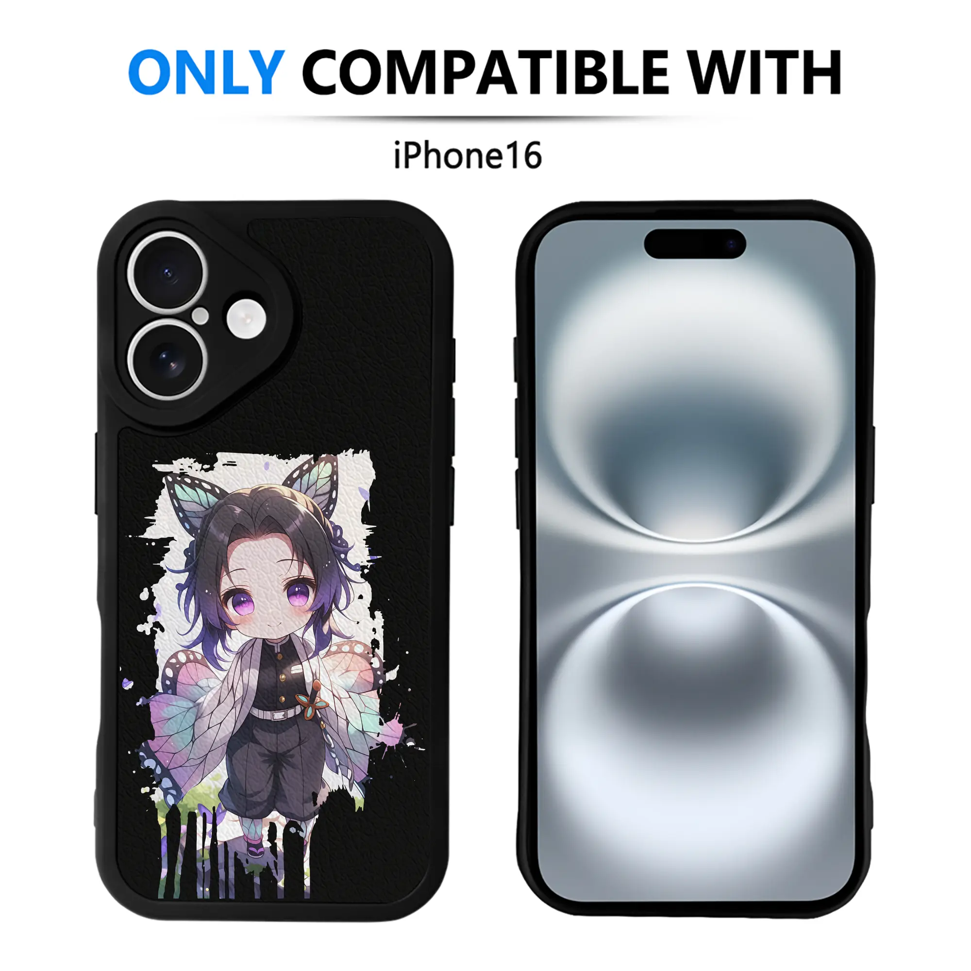 鬼滅の刃 グッズ,胡蝶 しのぶ - IPhone 16シリーズ対応 ・ シリコンスマホケース ・ レザー調 ・ 高精度フィット ・ 耐衝撃 ・ ワイヤレス充電対応 ・ 精密カット