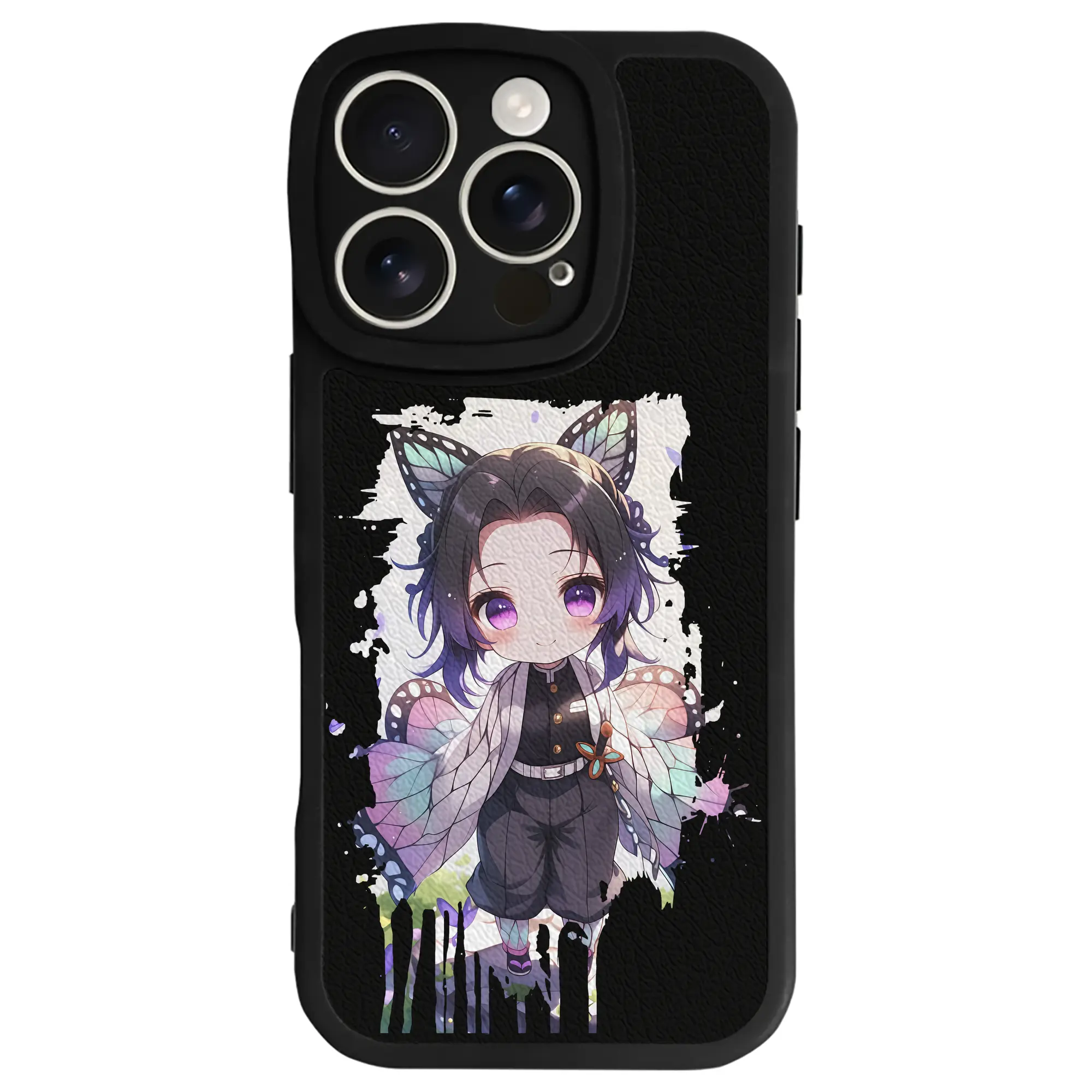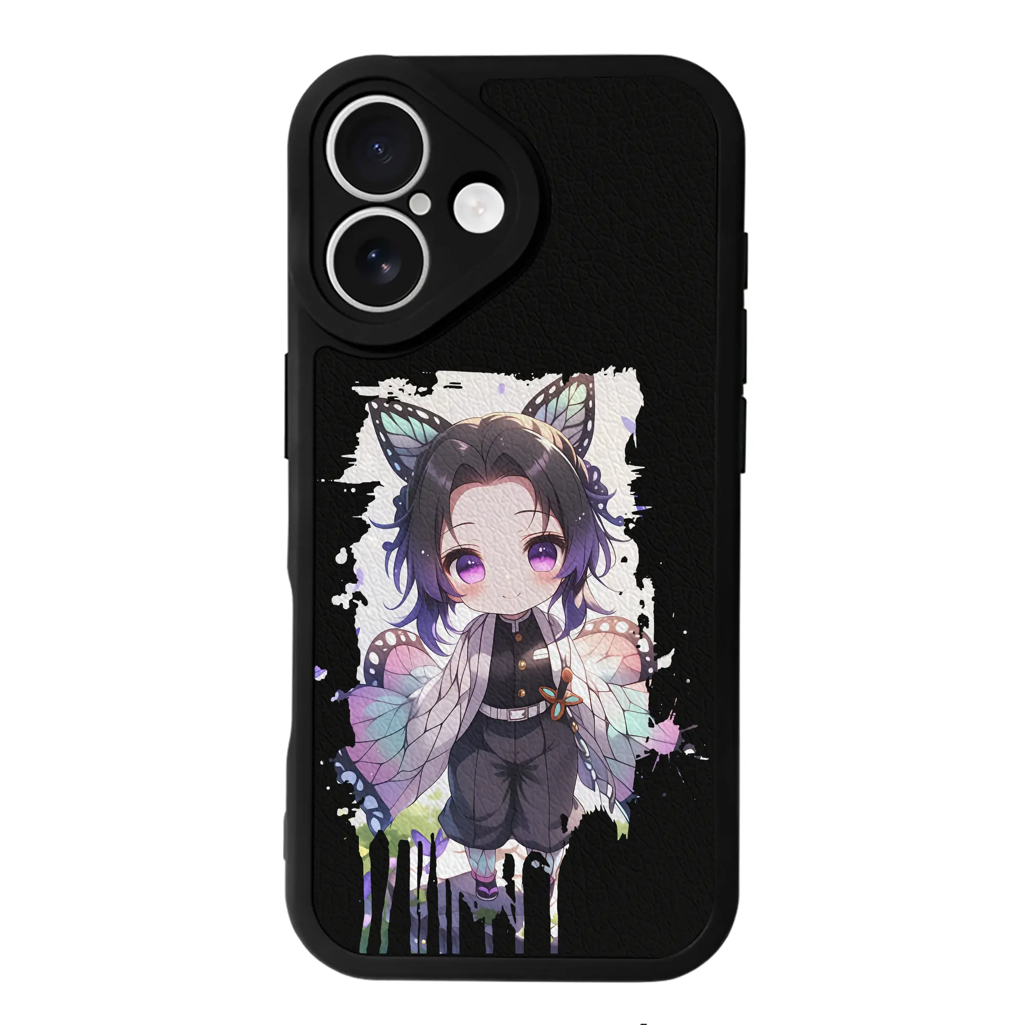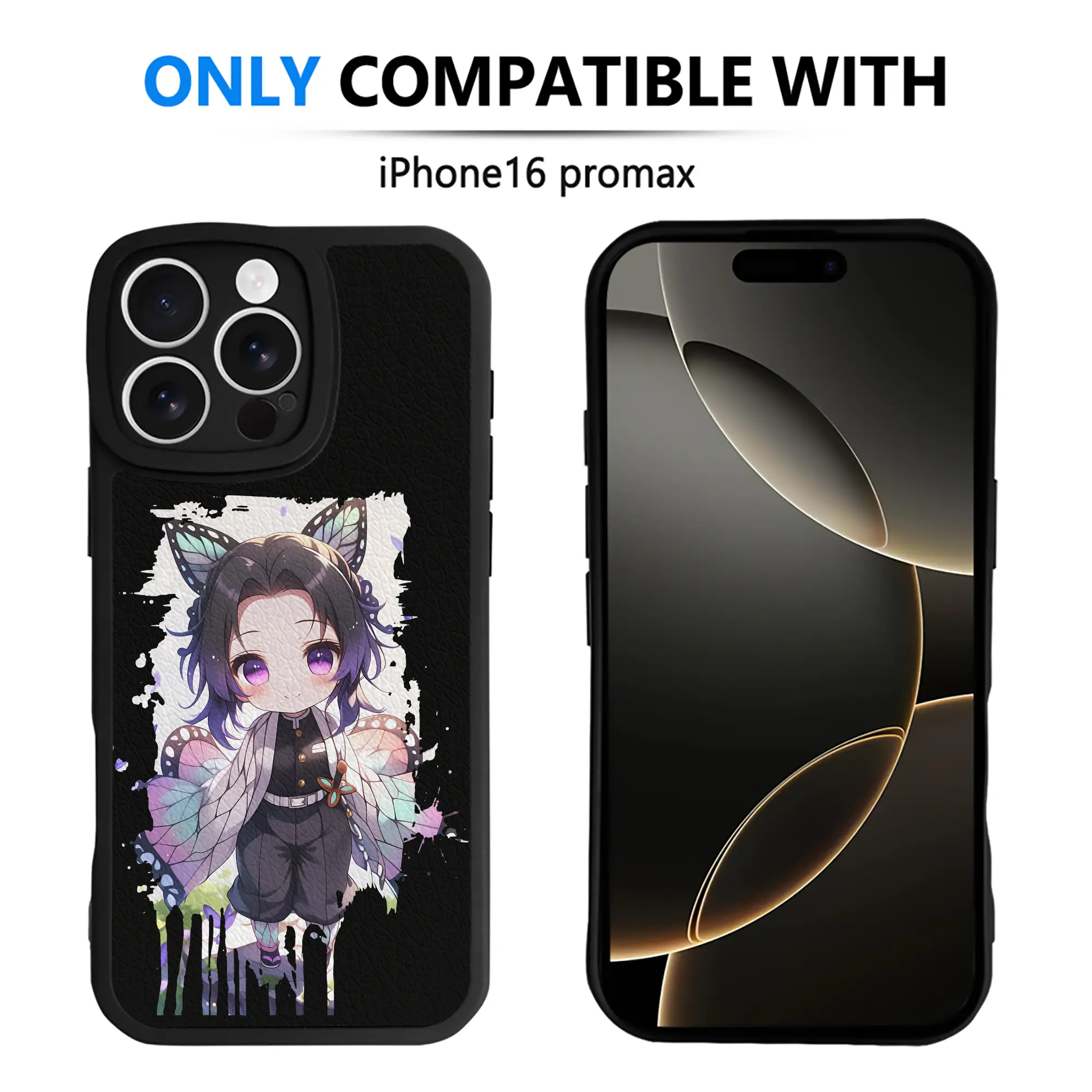 鬼滅の刃 グッズ,胡蝶 しのぶ - IPhone 16シリーズ対応 ・ シリコンスマホケース ・ レザー調 ・ 高精度フィット ・ 耐衝撃 ・ ワイヤレス充電対応 ・ 精密カット