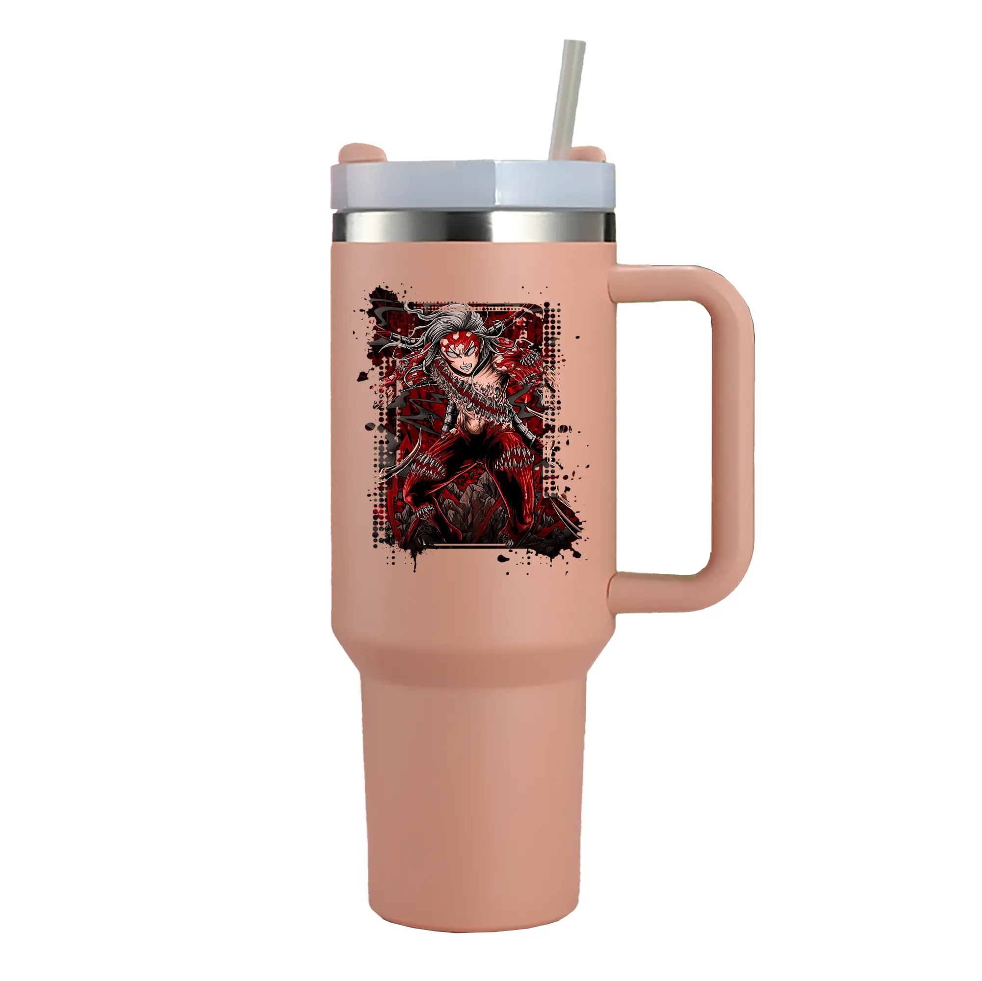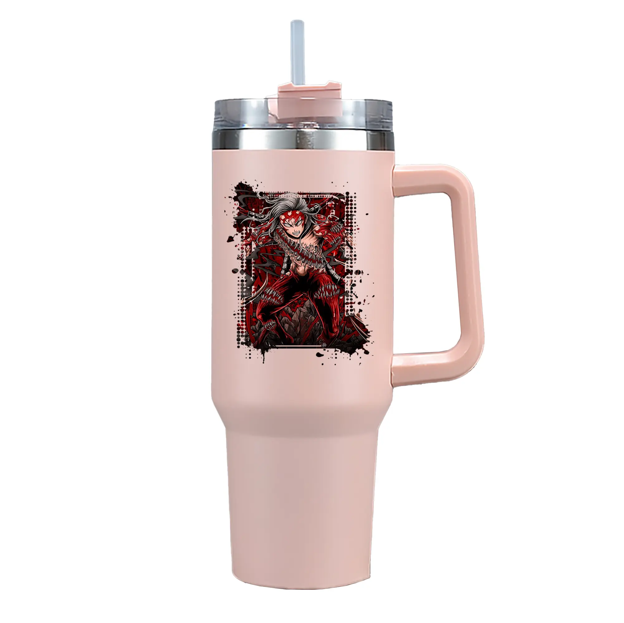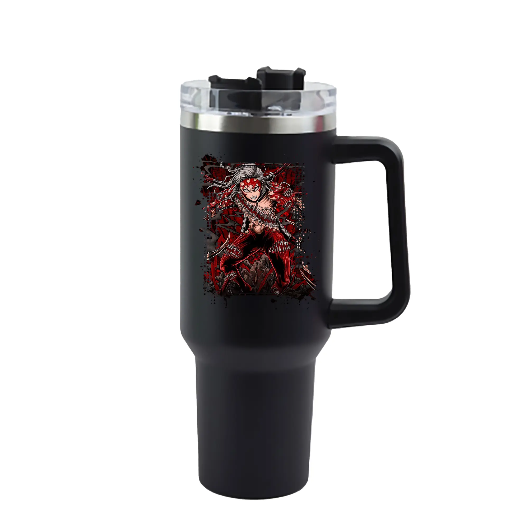 鬼滅の刃 グッズ,鬼舞辻 無惨 - 1200mL 車用タンブラー ・ クリスタルステッカー ・ 304ステンレス 内側 ・ 201ステンレス 外側 ・ 保温 保冷 ・ ハンドル&ストロー付き ・ 通勤 ドライブ アウトドア用
