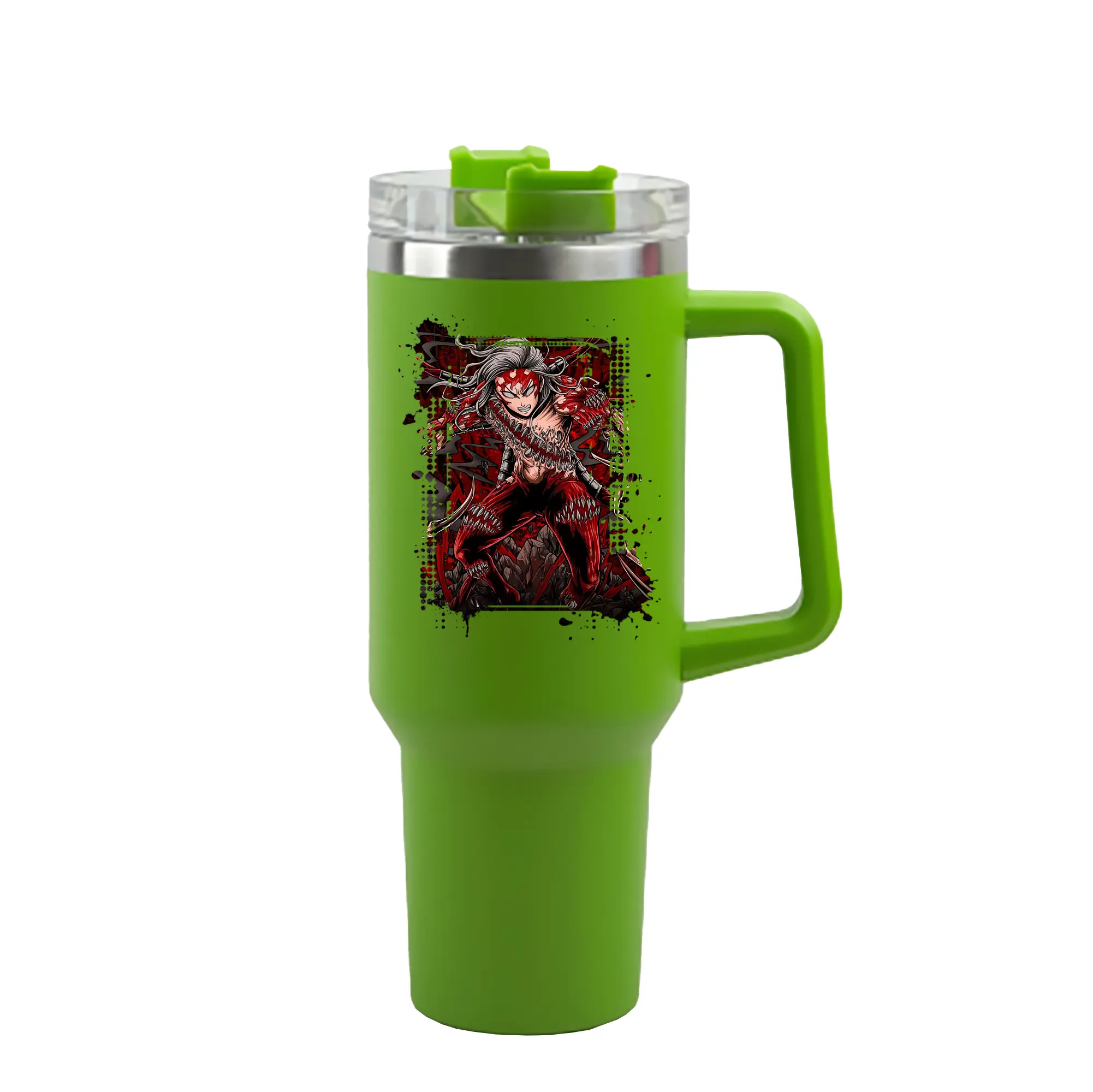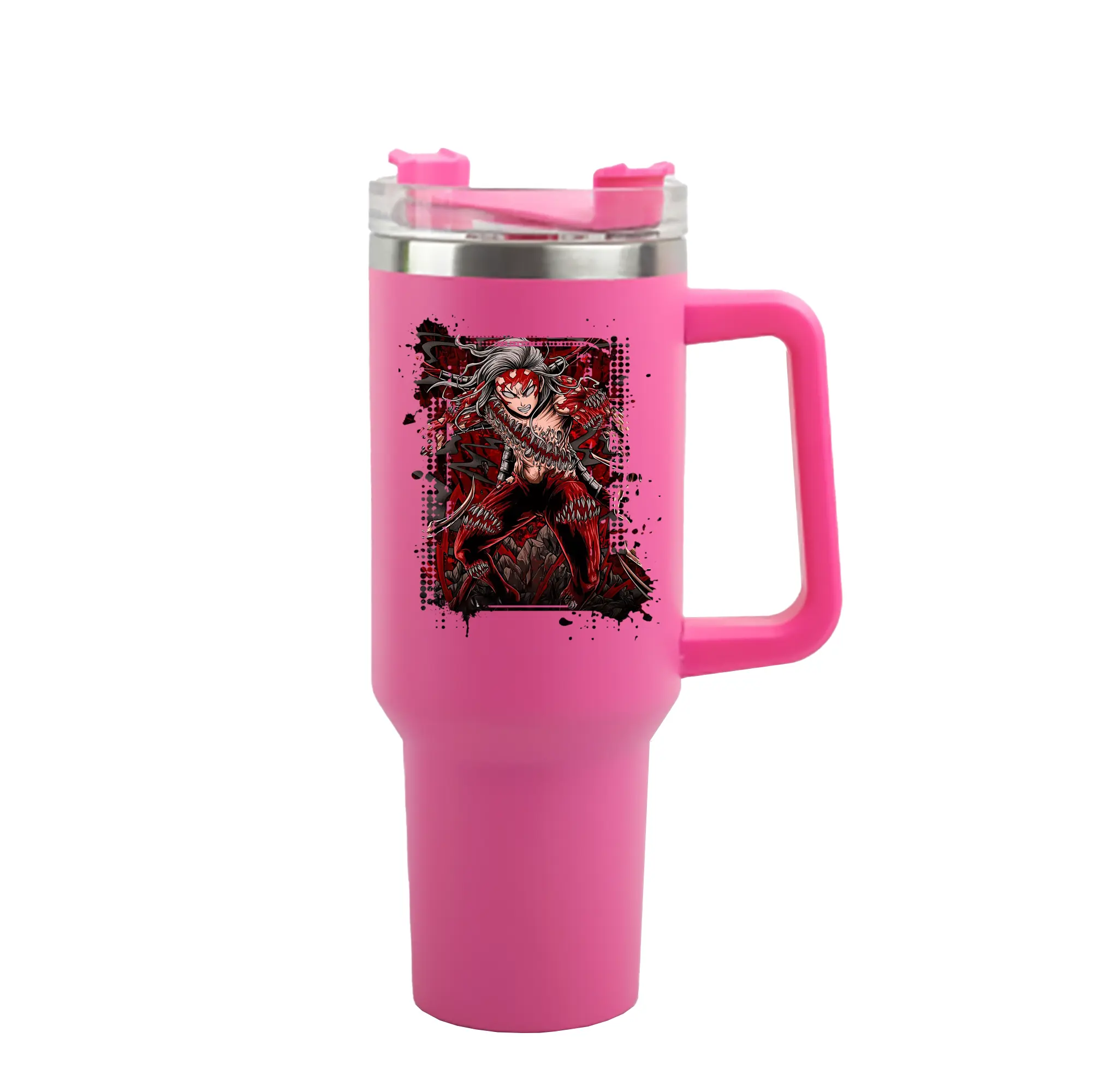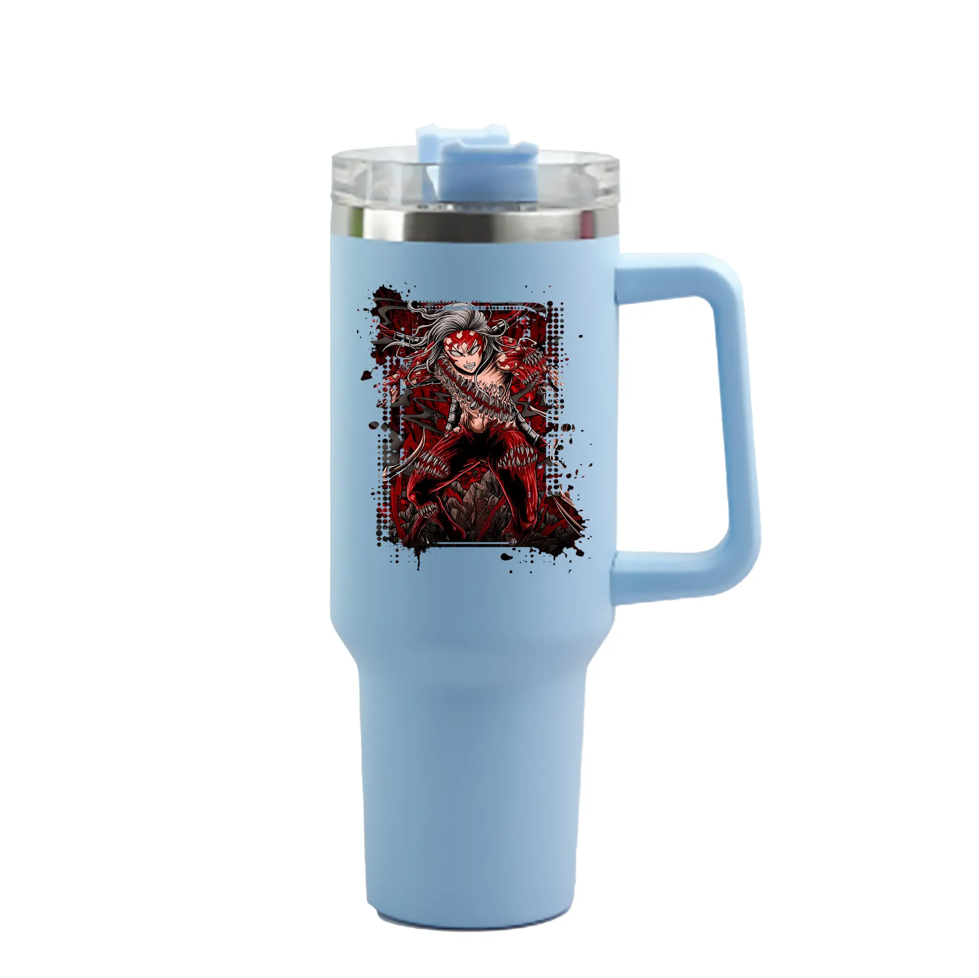 鬼滅の刃 グッズ,鬼舞辻 無惨 - 1200mL 車用タンブラー ・ クリスタルステッカー ・ 304ステンレス 内側 ・ 201ステンレス 外側 ・ 保温 保冷 ・ ハンドル&ストロー付き ・ 通勤 ドライブ アウトドア用