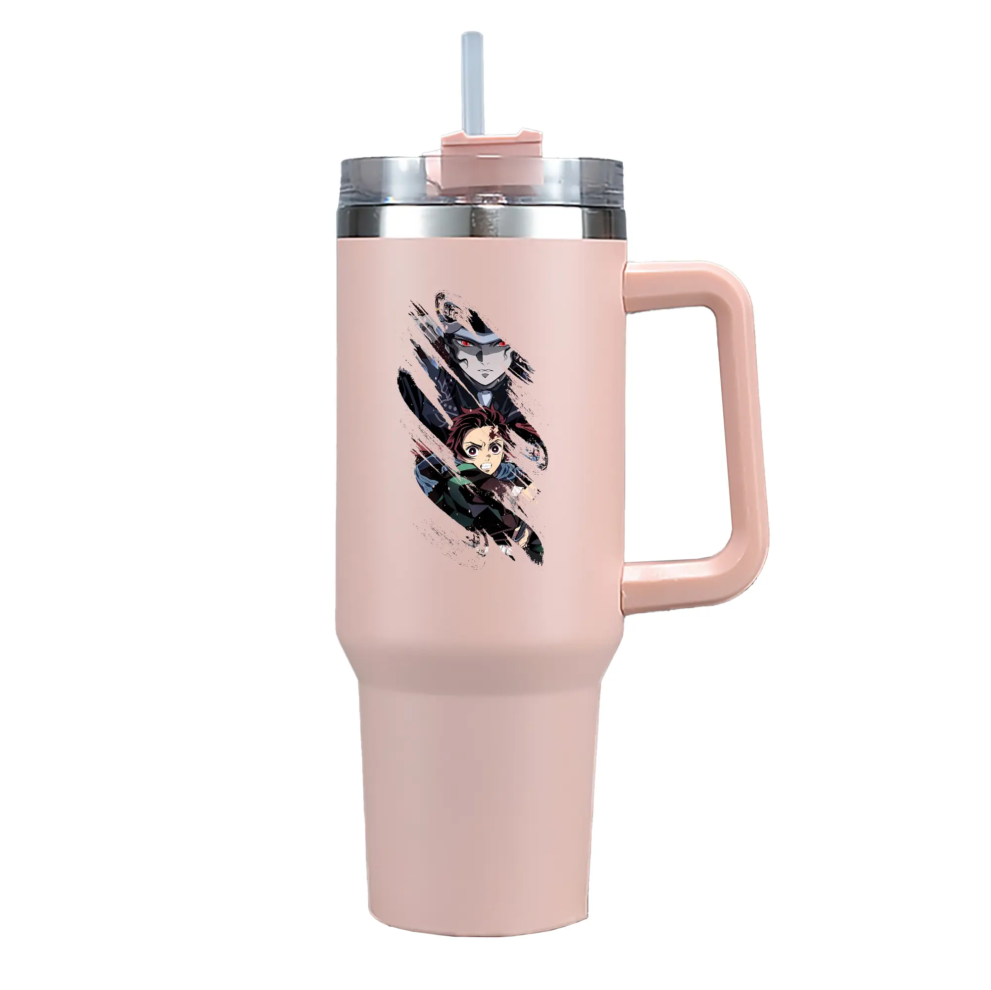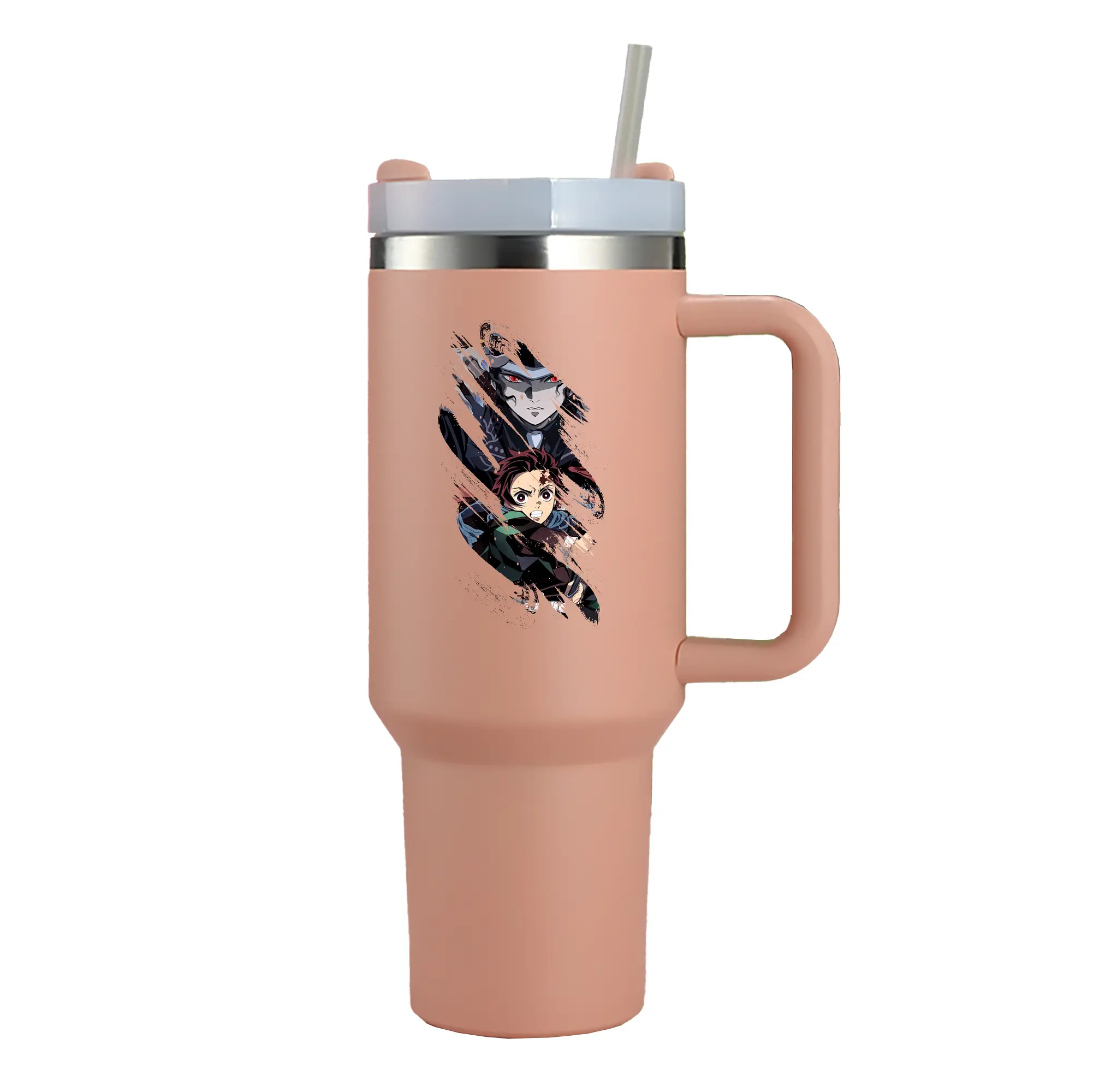 鬼滅の刃 グッズ,鬼舞辻 無惨 - 1200mL 車用タンブラー ・ クリスタルステッカー ・ 304ステンレス 内側 ・ 201ステンレス 外側 ・ 保温 保冷 ・ ハンドル&ストロー付き ・ 通勤 ドライブ アウトドア用