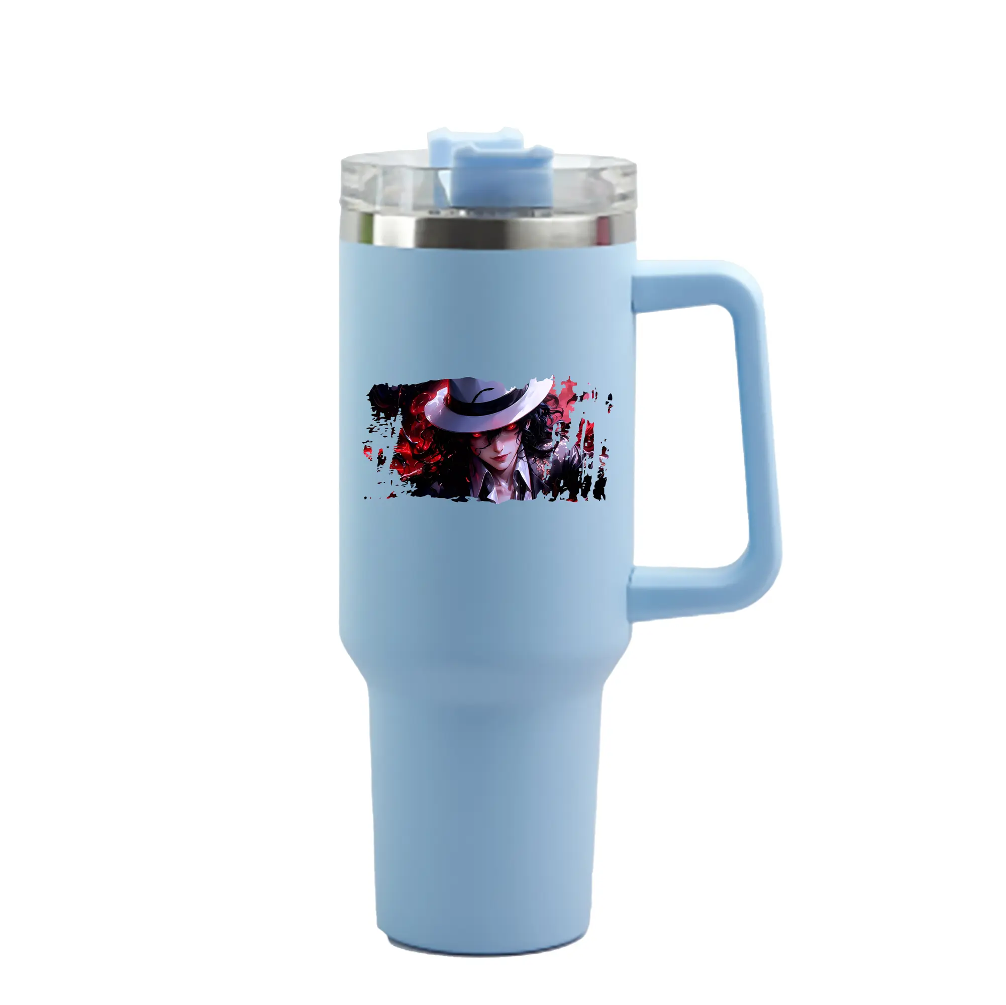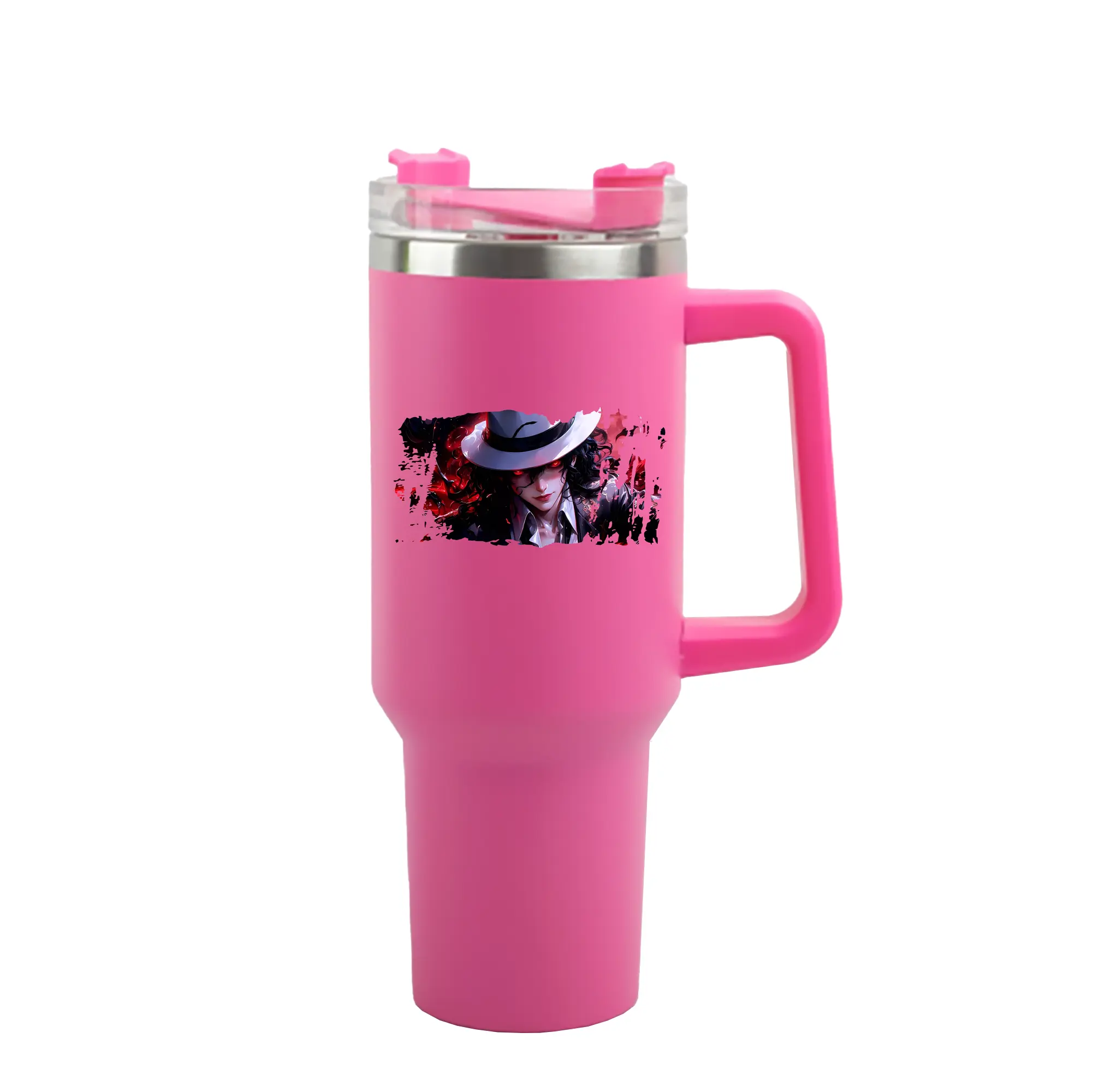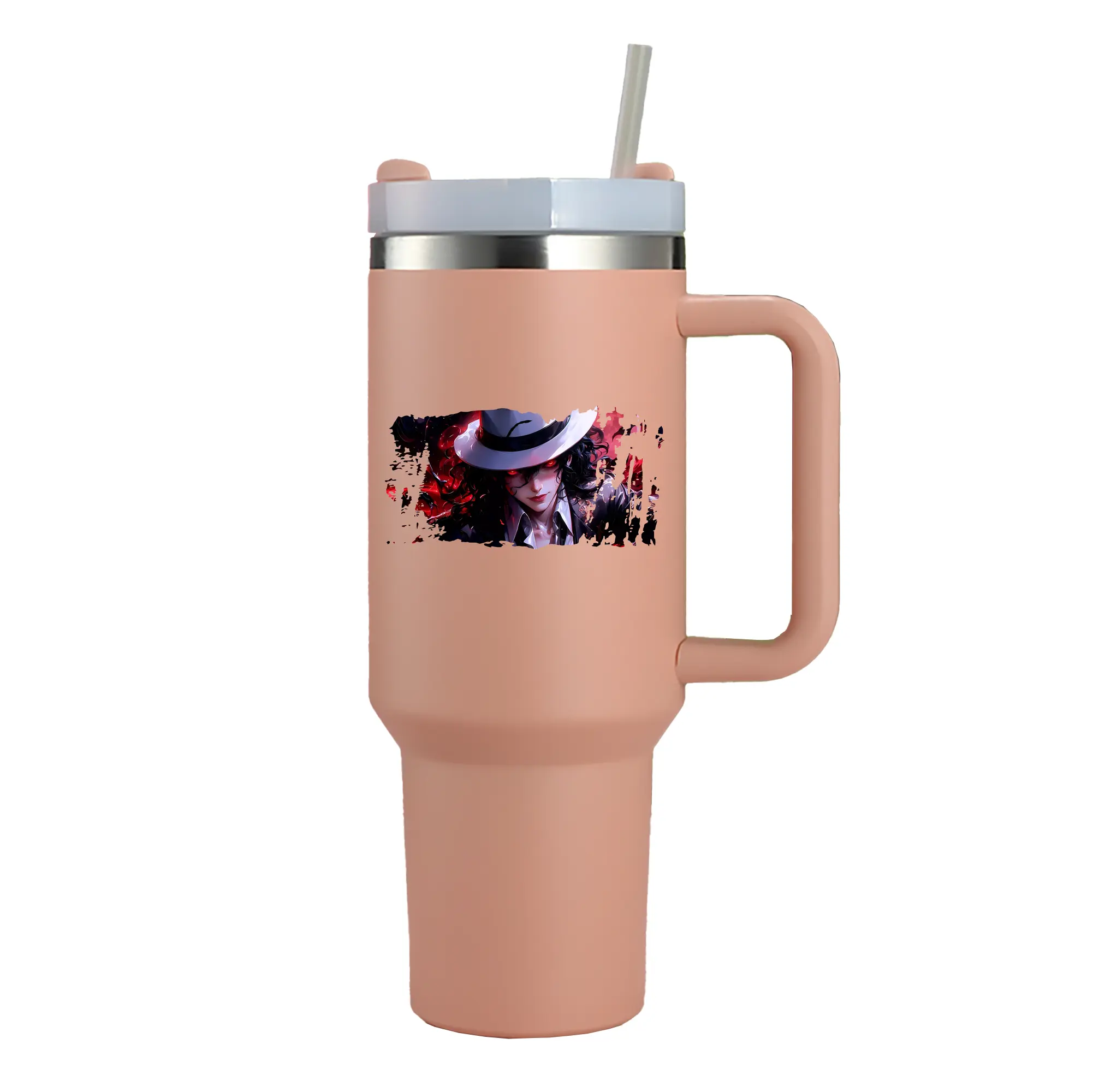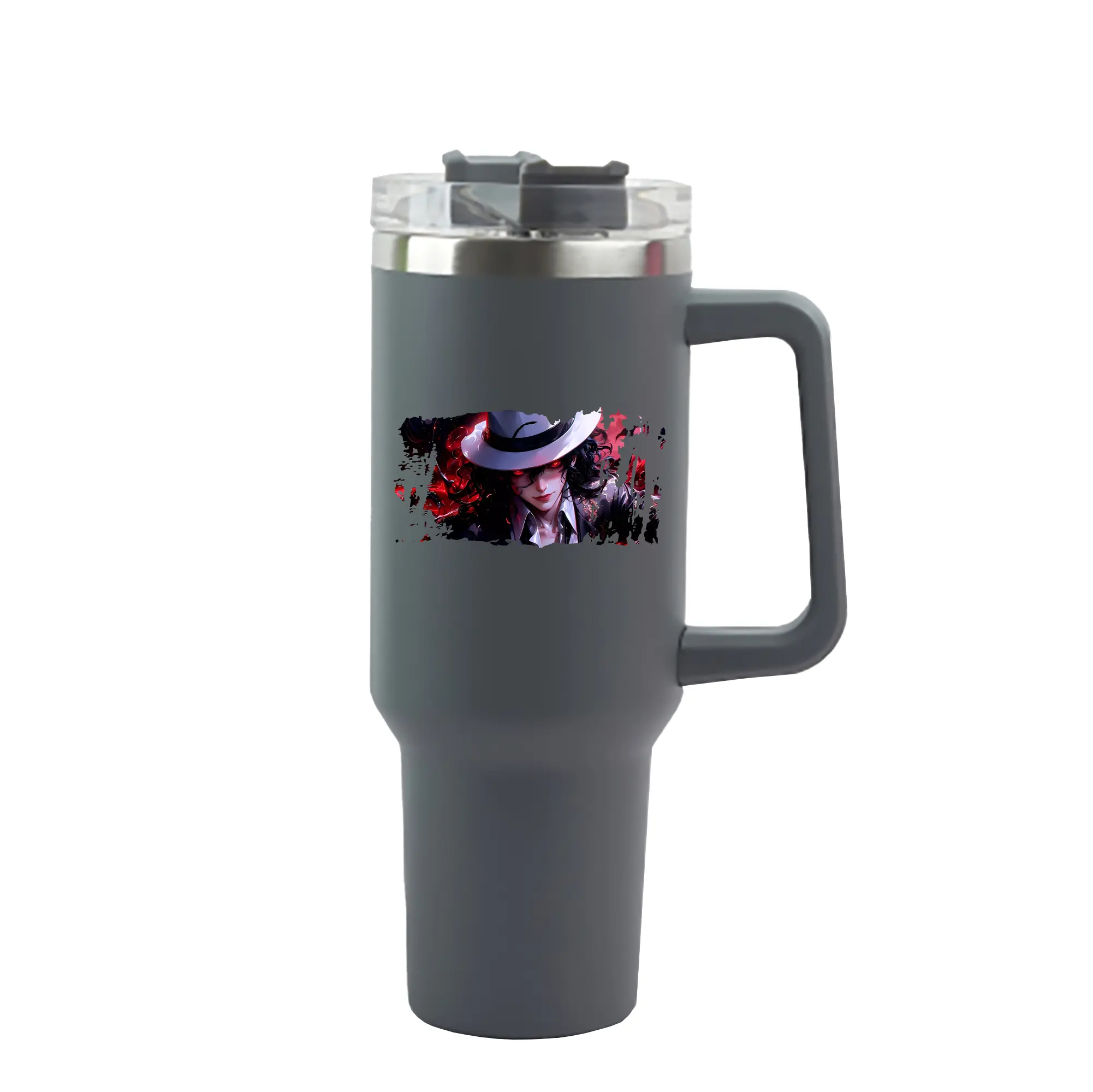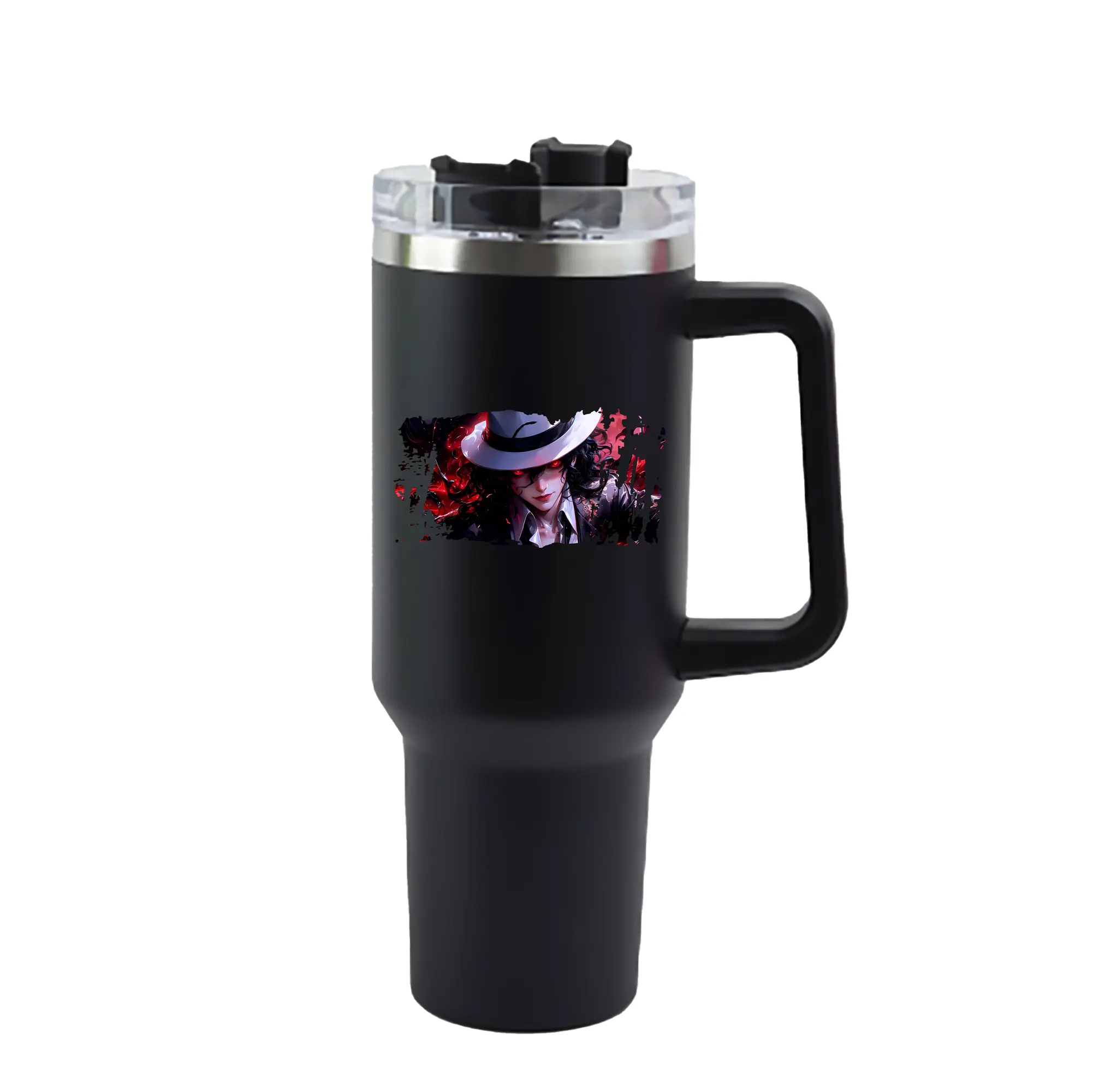 鬼滅の刃 グッズ,鬼舞辻 無惨 - 1200mL 車用タンブラー ・ クリスタルステッカー ・ 304ステンレス 内側 ・ 201ステンレス 外側 ・ 保温 保冷 ・ ハンドル&ストロー付き ・ 通勤 ドライブ アウトドア用