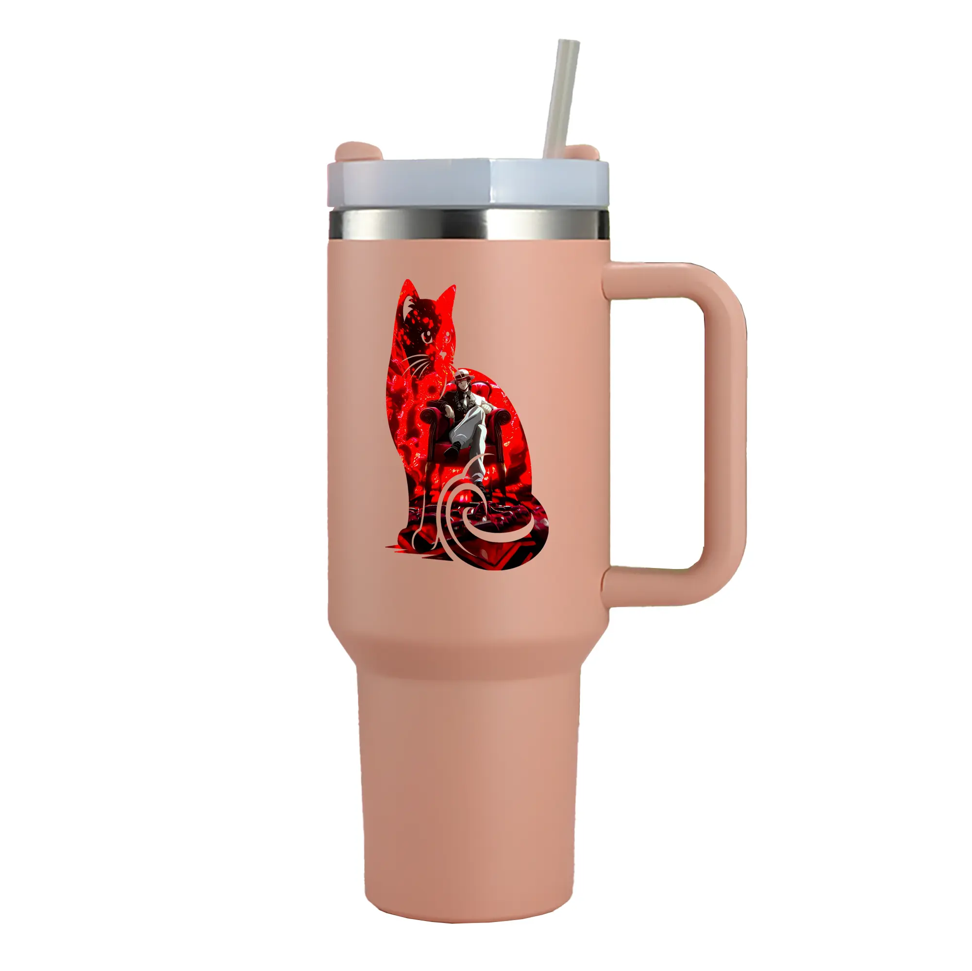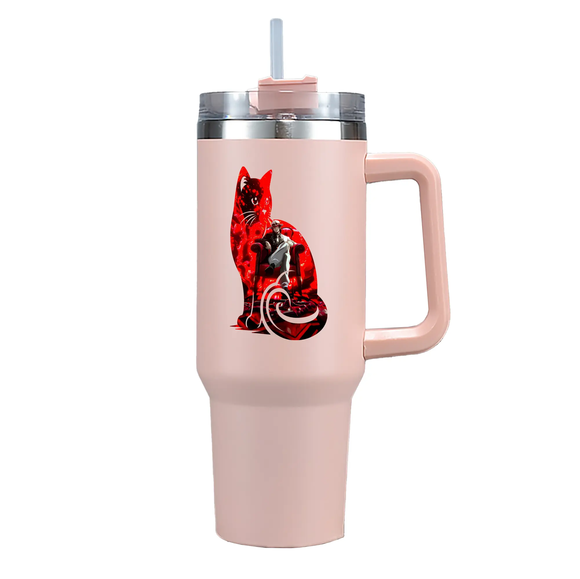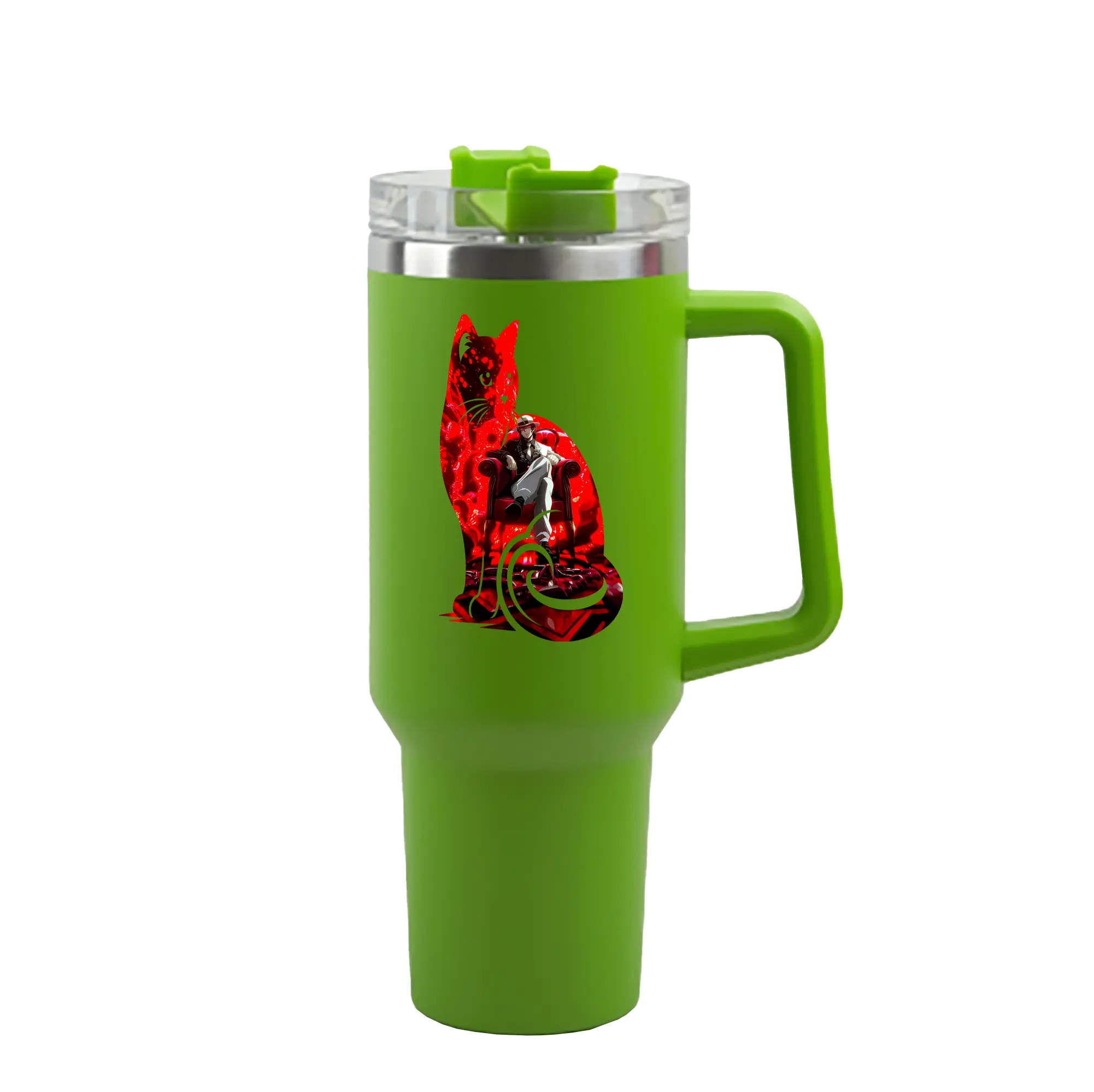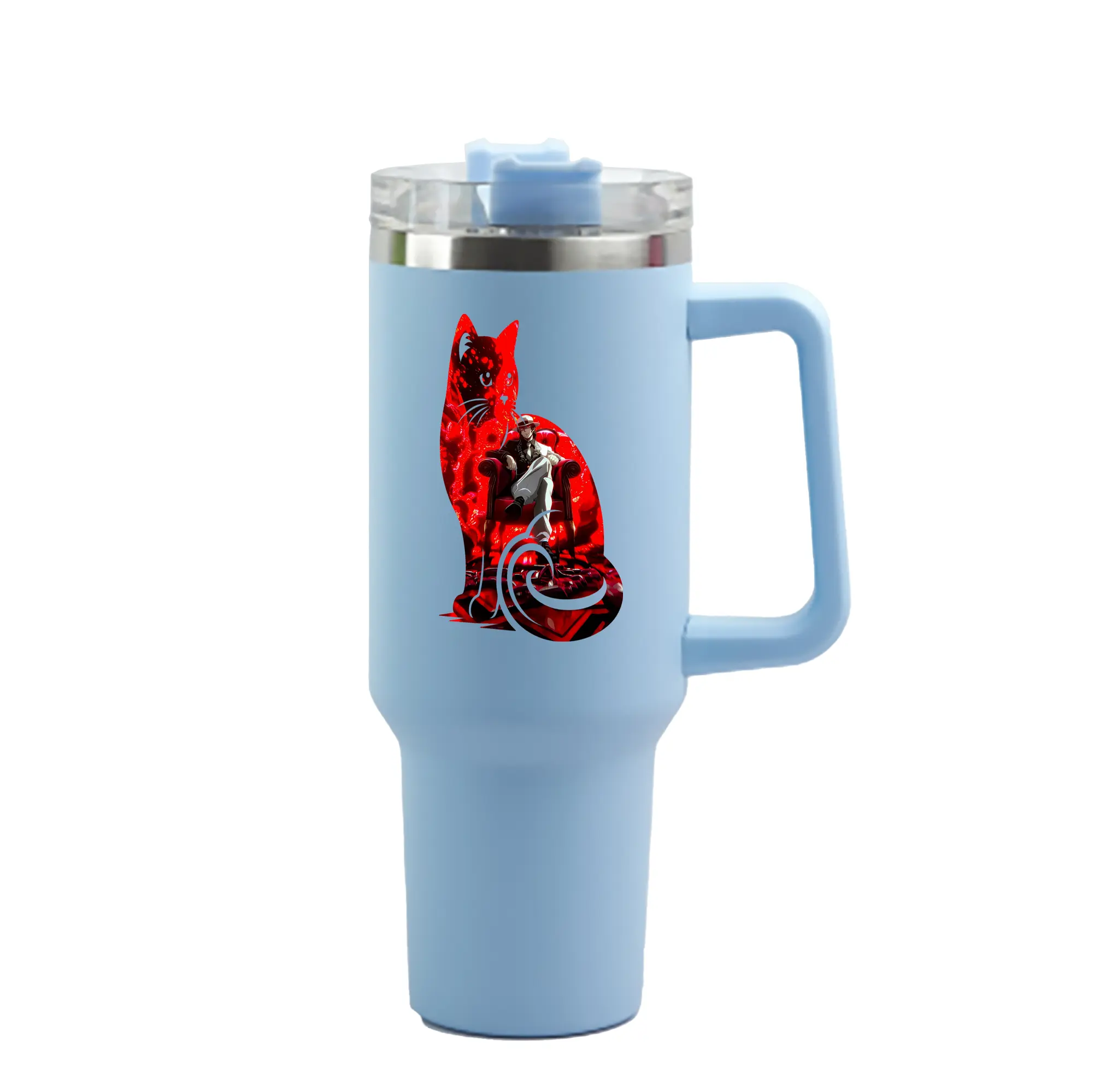 鬼滅の刃 グッズ,鬼舞辻 無惨 - 1200mL 車用タンブラー ・ クリスタルステッカー ・ 304ステンレス 内側 ・ 201ステンレス 外側 ・ 保温 保冷 ・ ハンドル&ストロー付き ・ 通勤 ドライブ アウトドア用