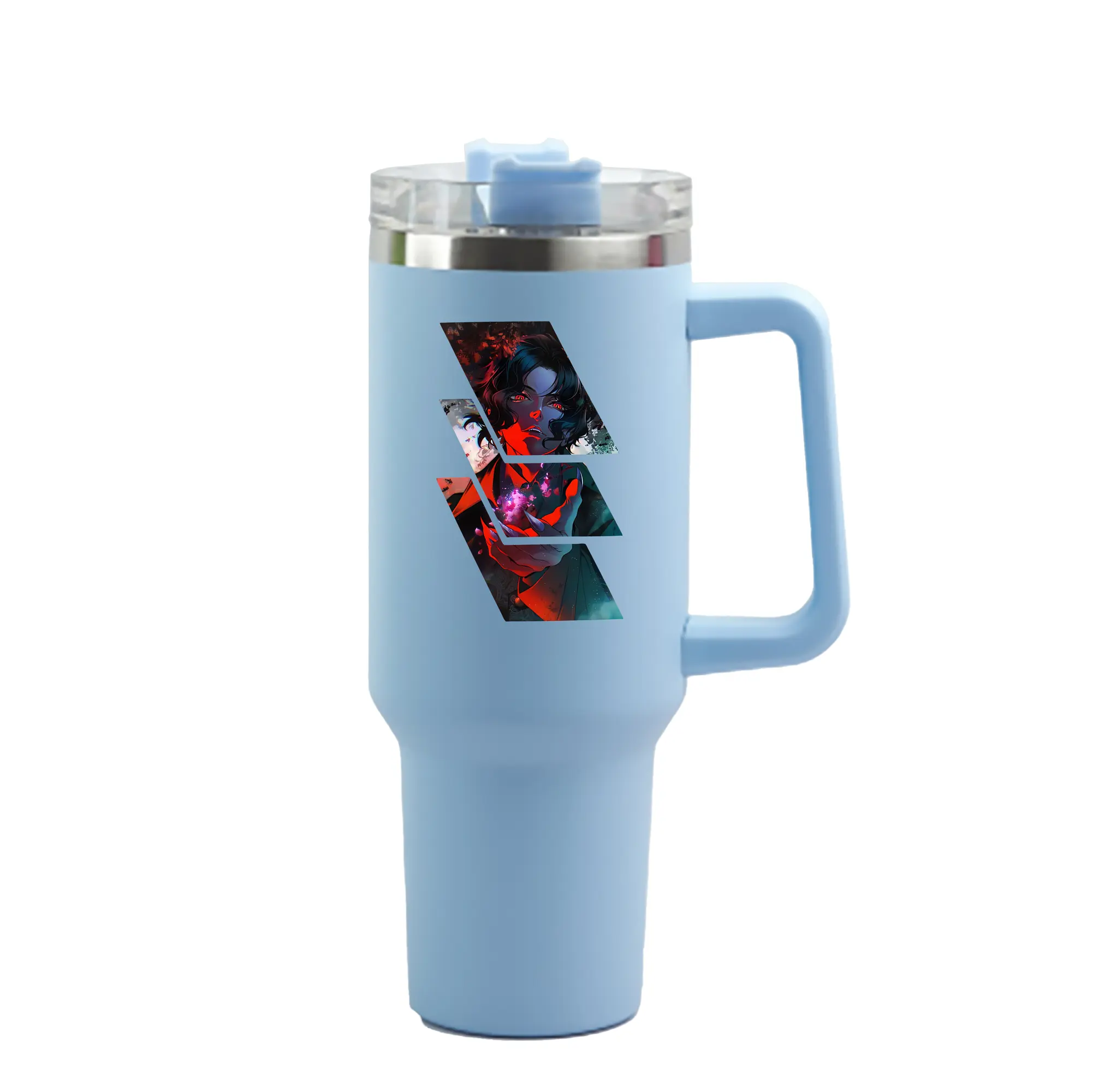 鬼滅の刃 グッズ,鬼舞辻 無惨 - 1200mL 車用タンブラー ・ クリスタルステッカー ・ 304ステンレス 内側 ・ 201ステンレス 外側 ・ 保温 保冷 ・ ハンドル&ストロー付き ・ 通勤 ドライブ アウトドア用
