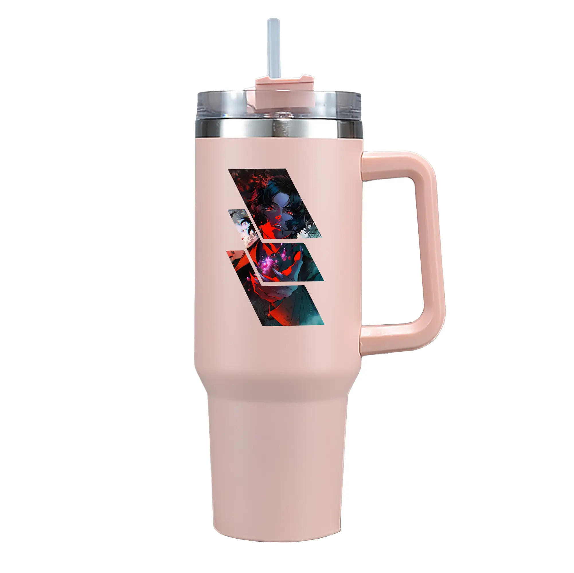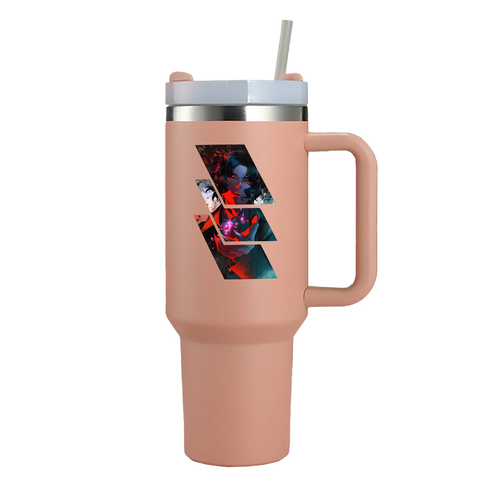 1200mL(40オンス)の大容量ハンドル付きカータンブラー。キラキラと輝くクリスタルステッカーデザインが、毎日の使用に華やかさをプラスします。食品グレード304ステンレスの内側と頑丈な201ステンレスの外側を採用し、耐久性・耐腐食性・安全性を兼ね備えています。