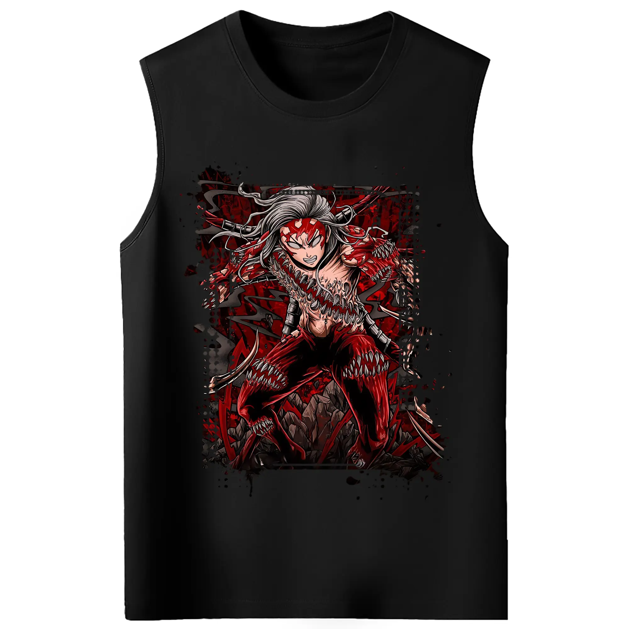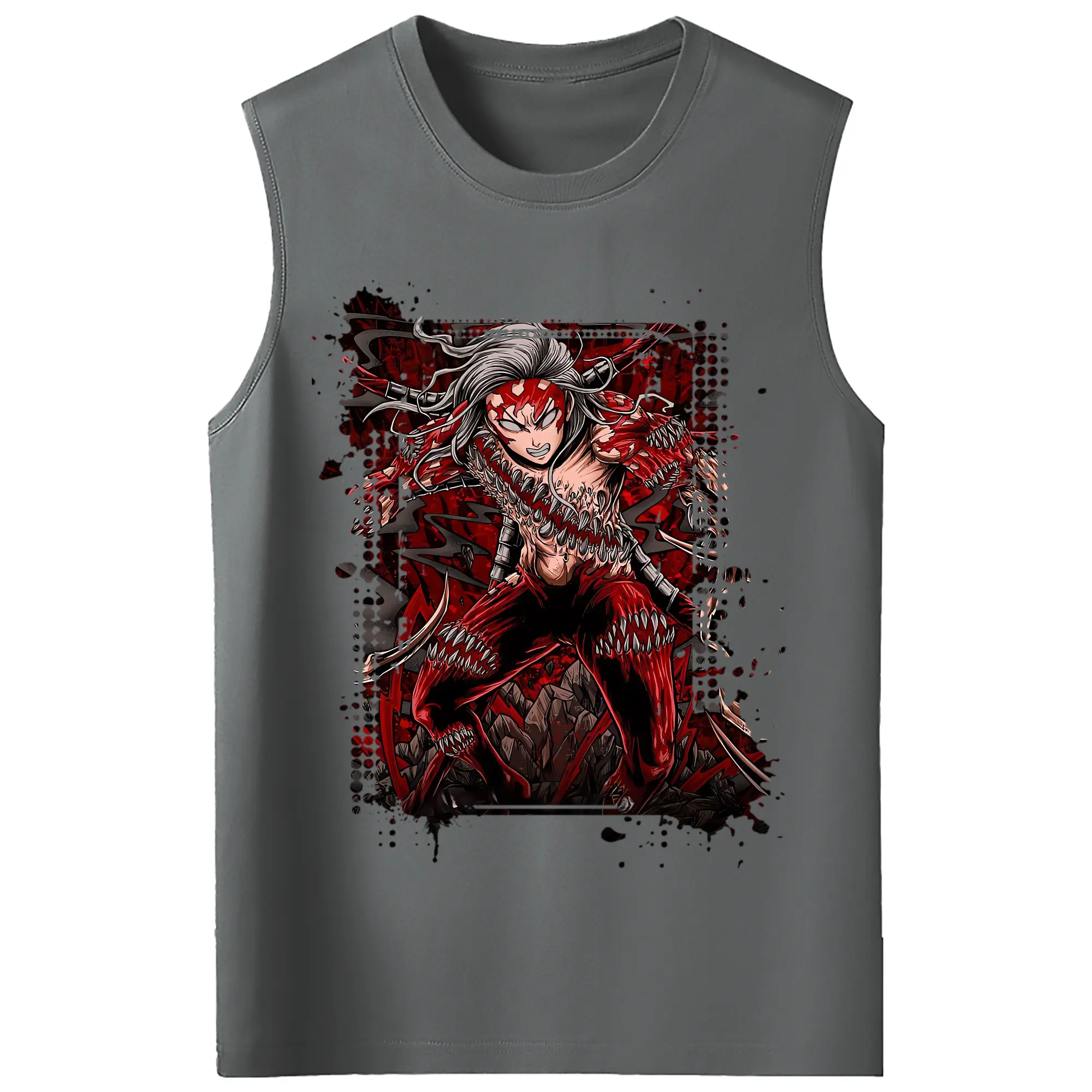 鬼滅の刃 グッズ,鬼舞辻 無惨 - コットン100% タンクトップ ・ フロントプリント ・ タイトフィット ・ 快適 通気性 ・ スポーツ カジュアル 散歩用