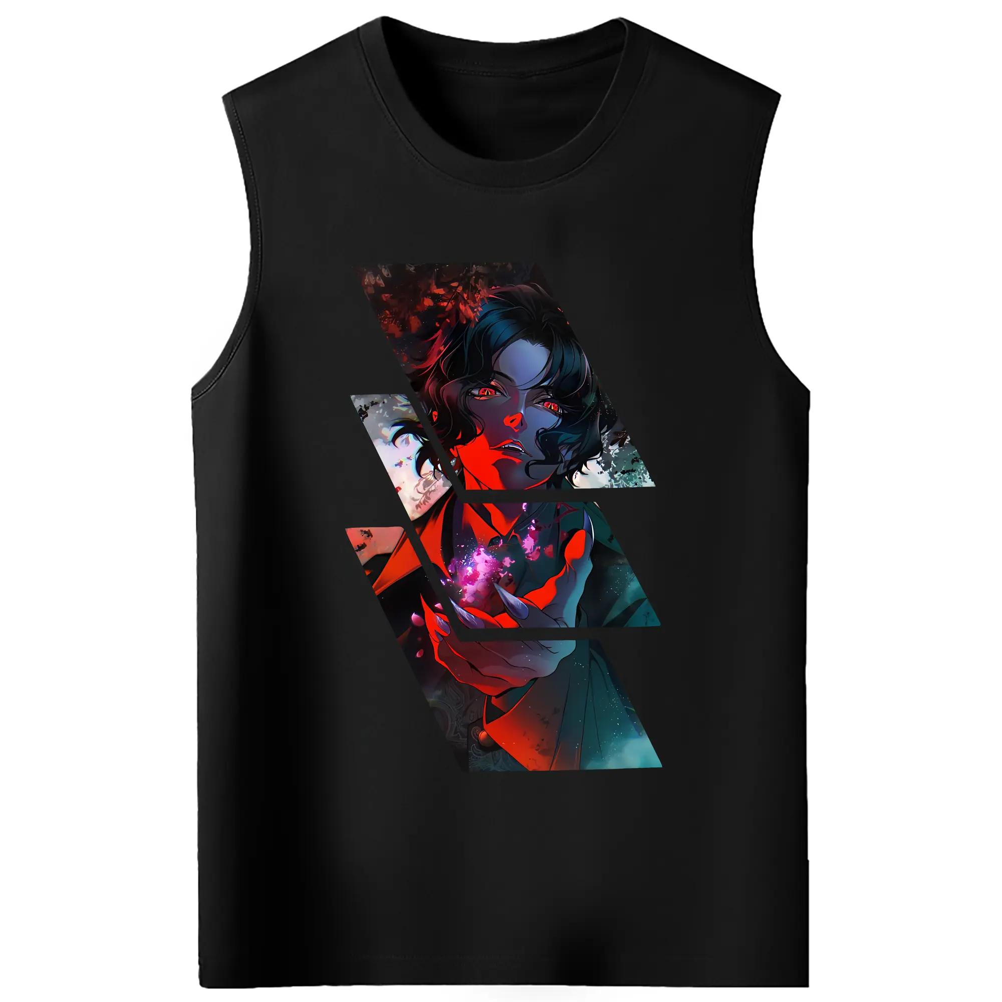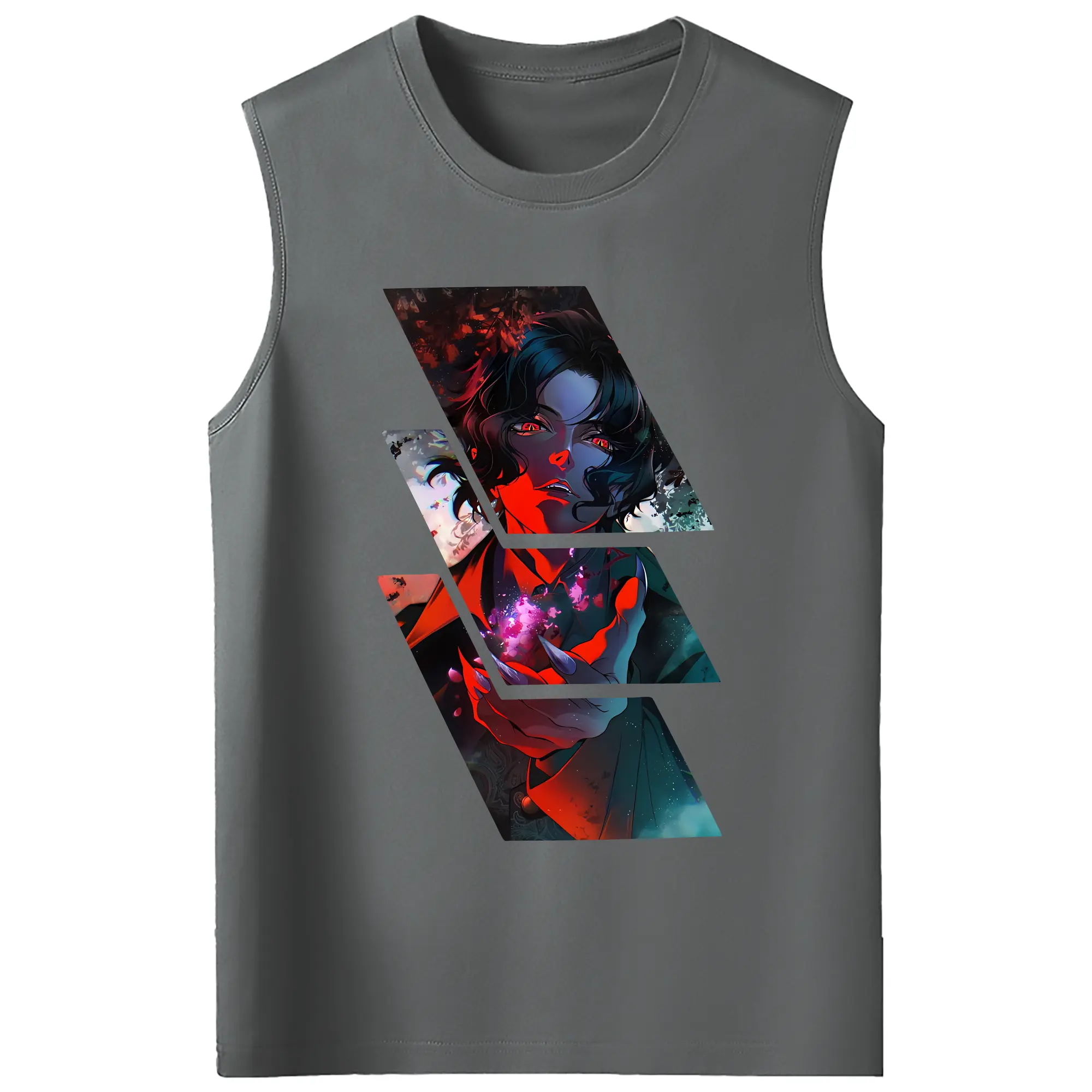鬼滅の刃 グッズ,鬼舞辻 無惨 - コットン100% タンクトップ ・ フロントプリント ・ タイトフィット ・ 快適 通気性 ・ スポーツ カジュアル 散歩用
