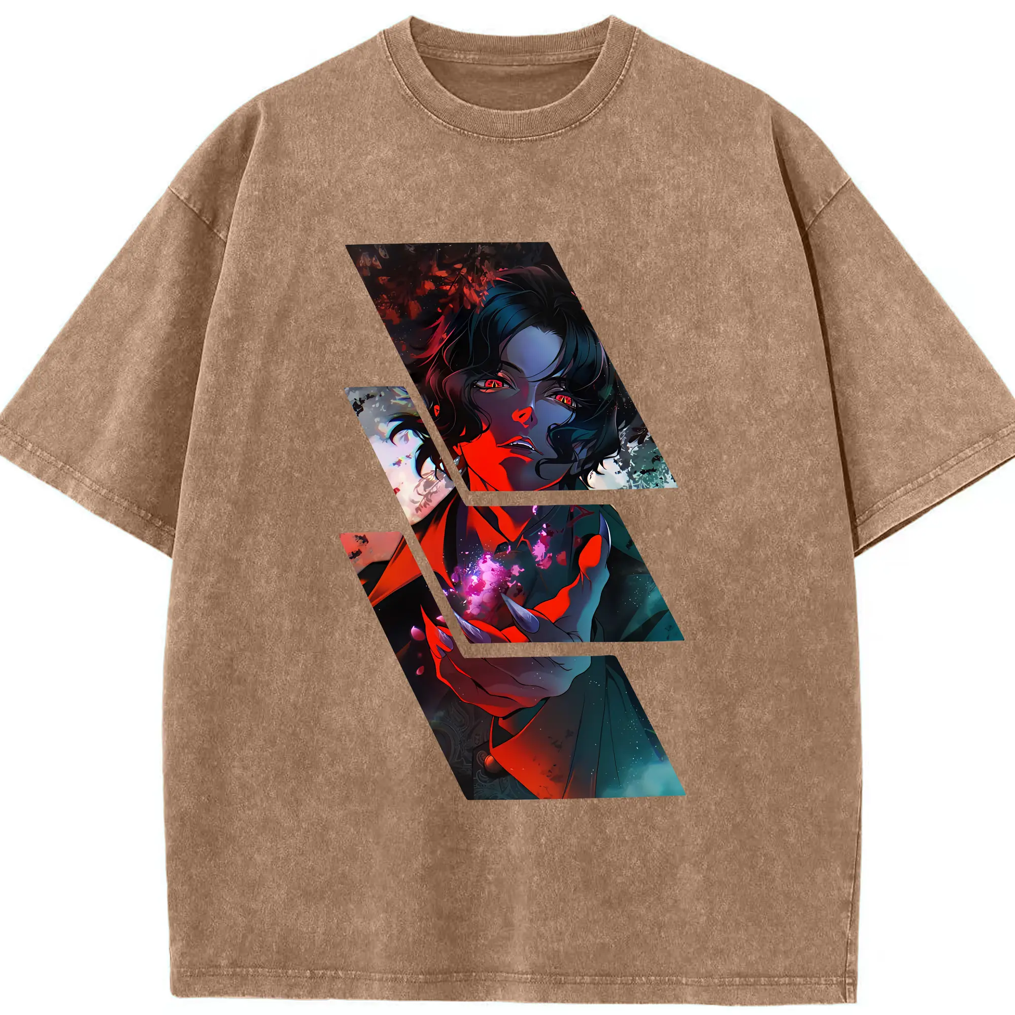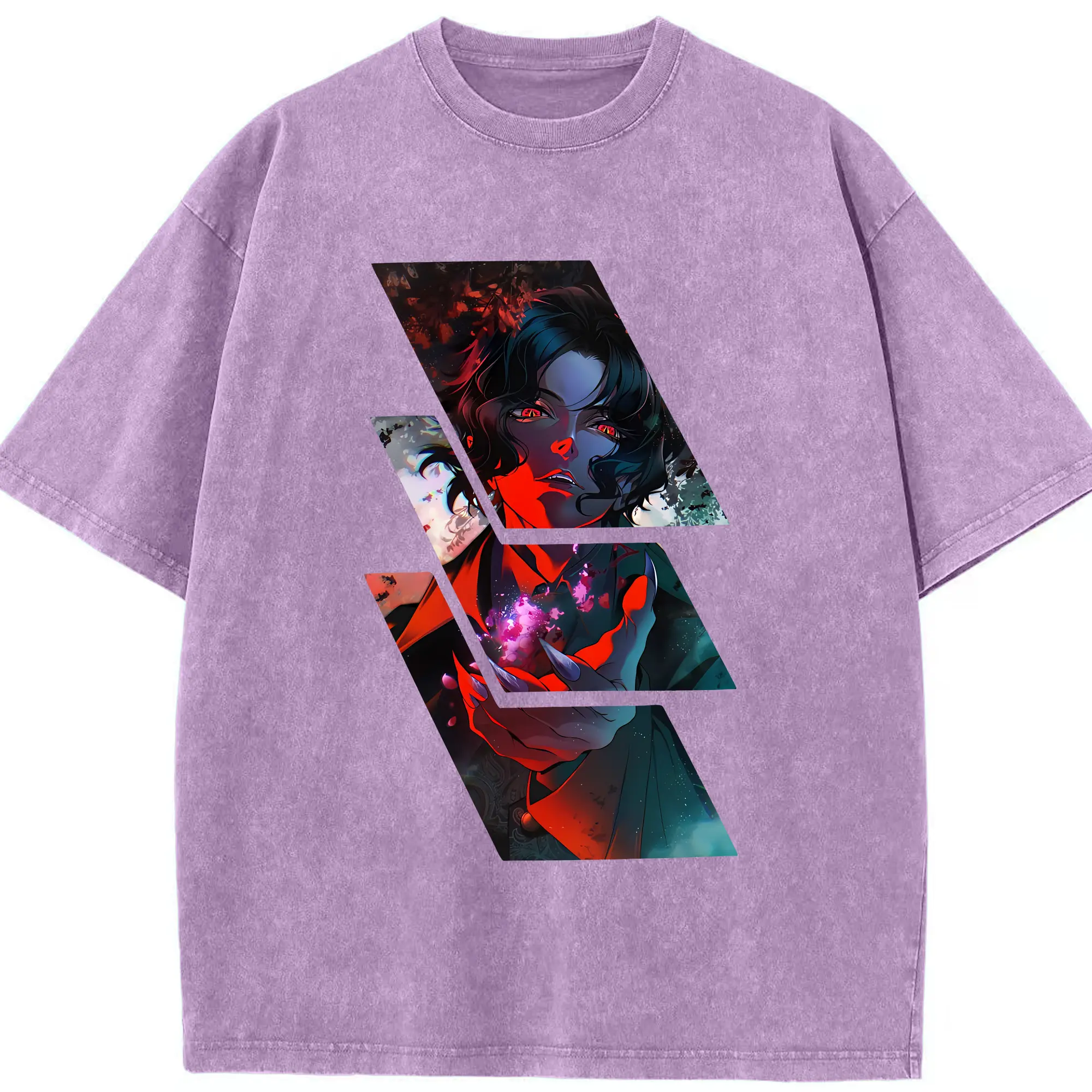 ハンター×ハンター グッズ ヒソカ=モロウ - 綿100% ヴィンテージ風 半袖Tシャツ ・ フロントプリント ・ 柔らか肌触り ・ 通気性 快適 ・ スポーツ カジュアル 外出用