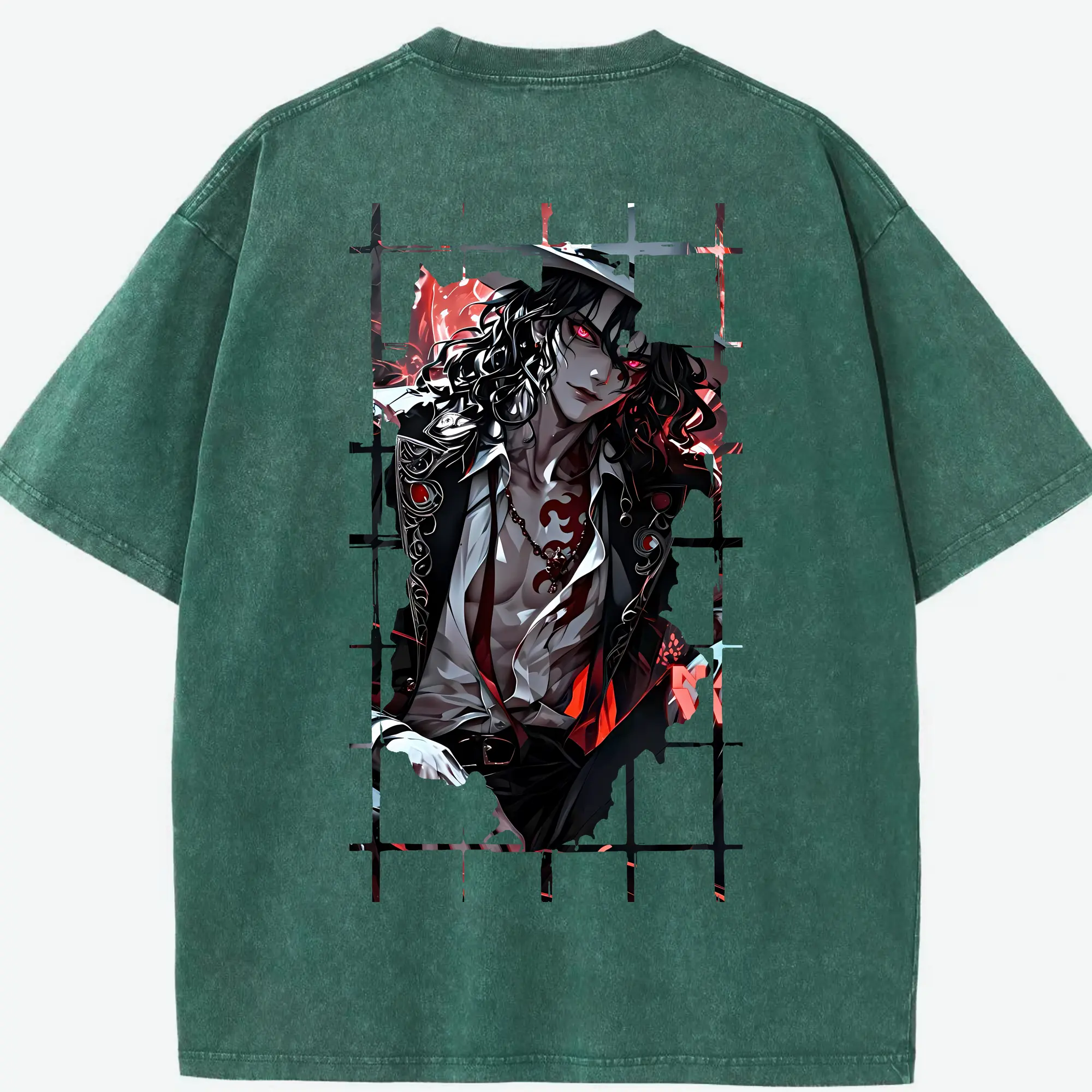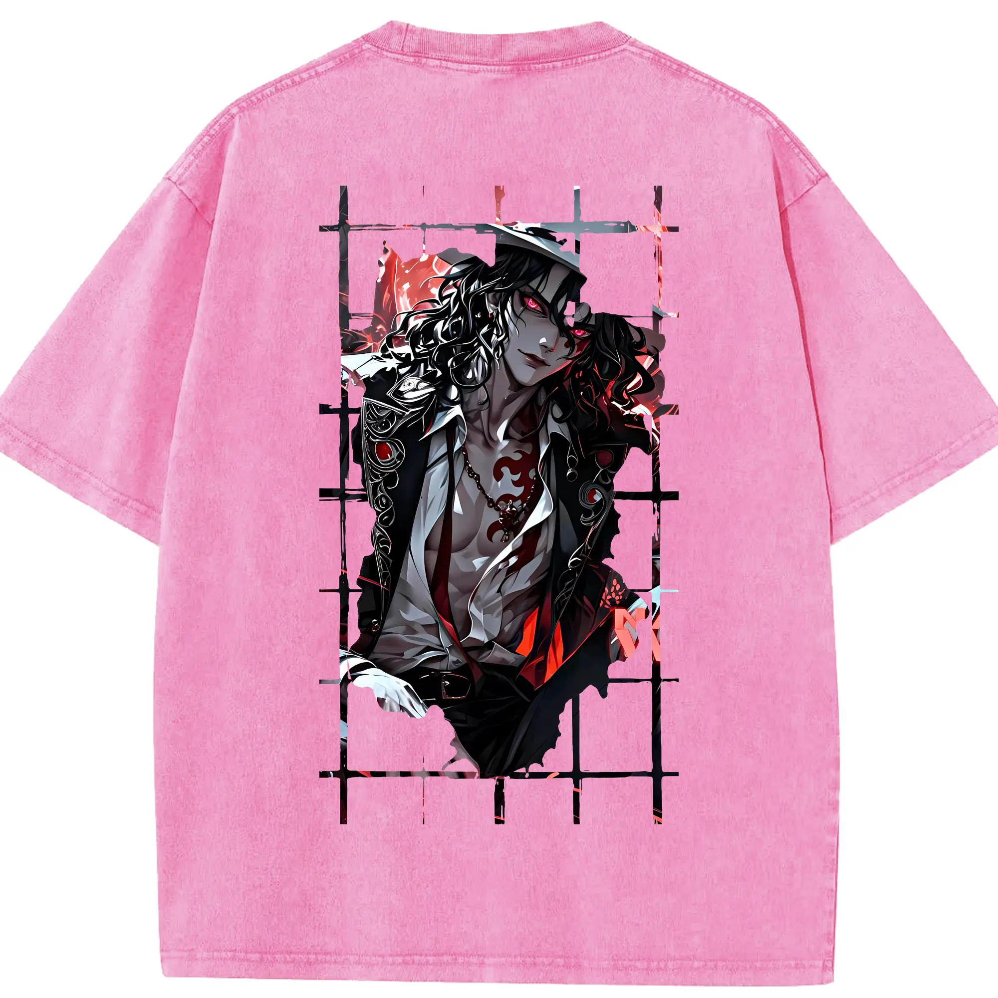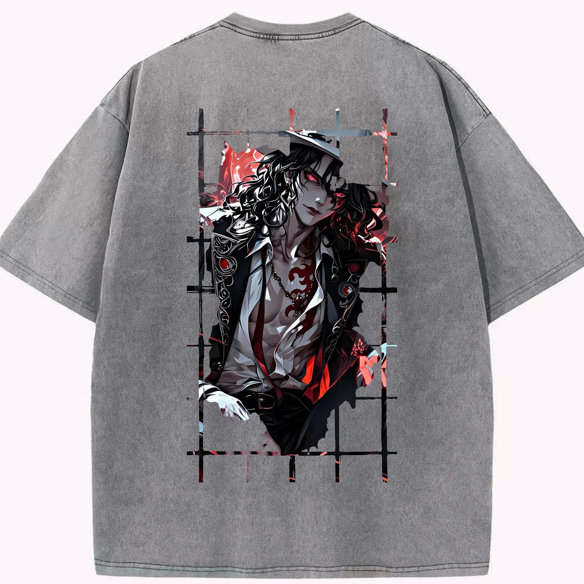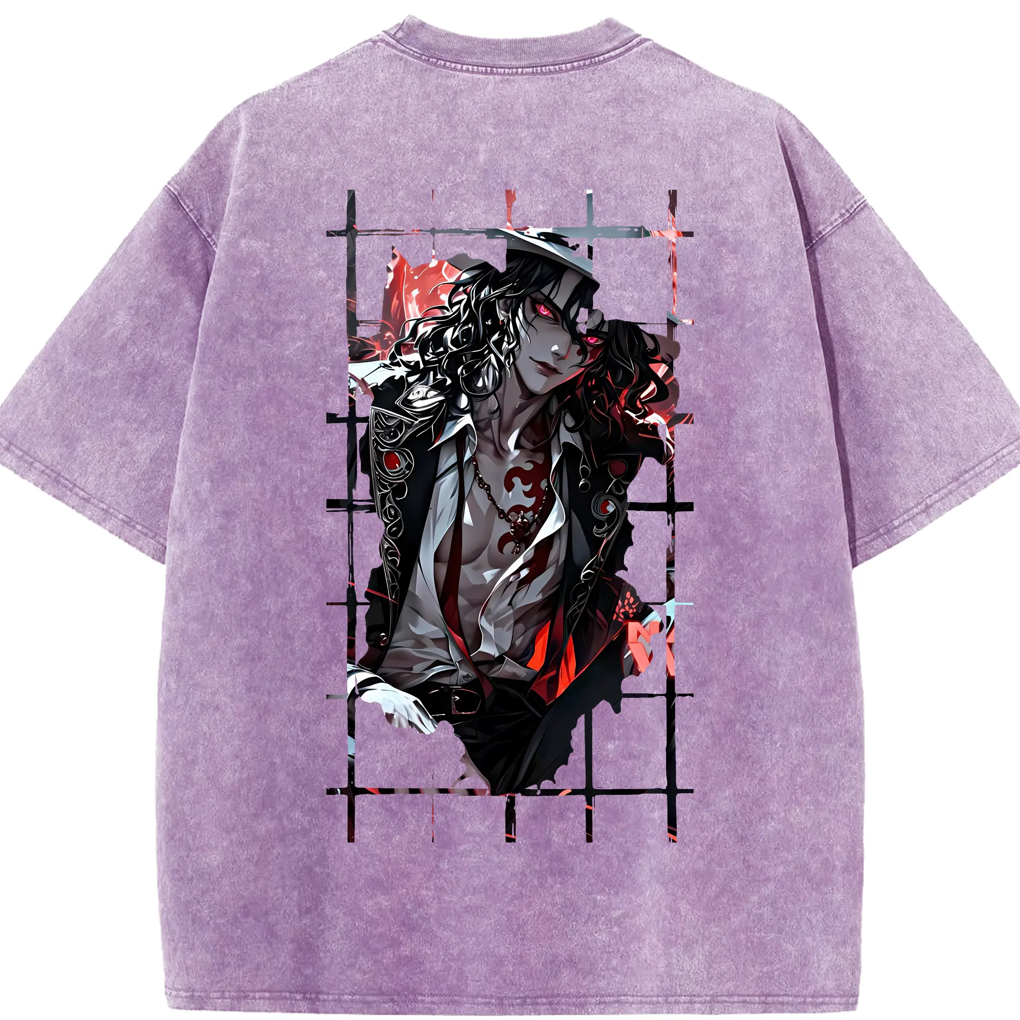 鬼滅の刃 グッズ,伊黒 小芭内 - 綿100% ヴィンテージ風 半袖Tシャツ ・ 背面プリント ・ 柔らか肌触り ・ 通気性 快適 ・ スポーツ カジュアル 外出用