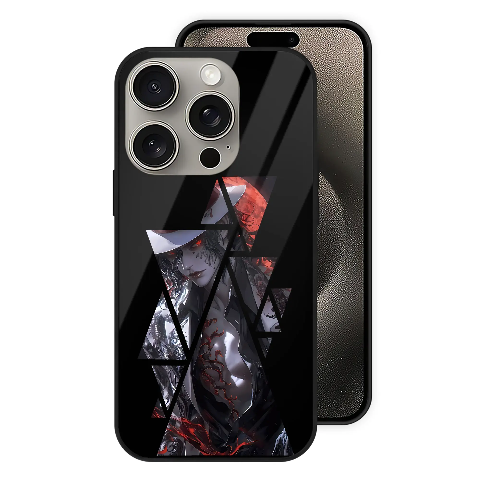 鬼滅の刃 グッズ,鬼舞辻 無惨 - IPhone15Pro対応 ・ スマホケース ・ 背面ガラス ・ TPU+強化ガラス ・ 耐衝撃 ・ 黄変防止 ・ ワイヤレス充電対応 ・ 3D立体ボタン