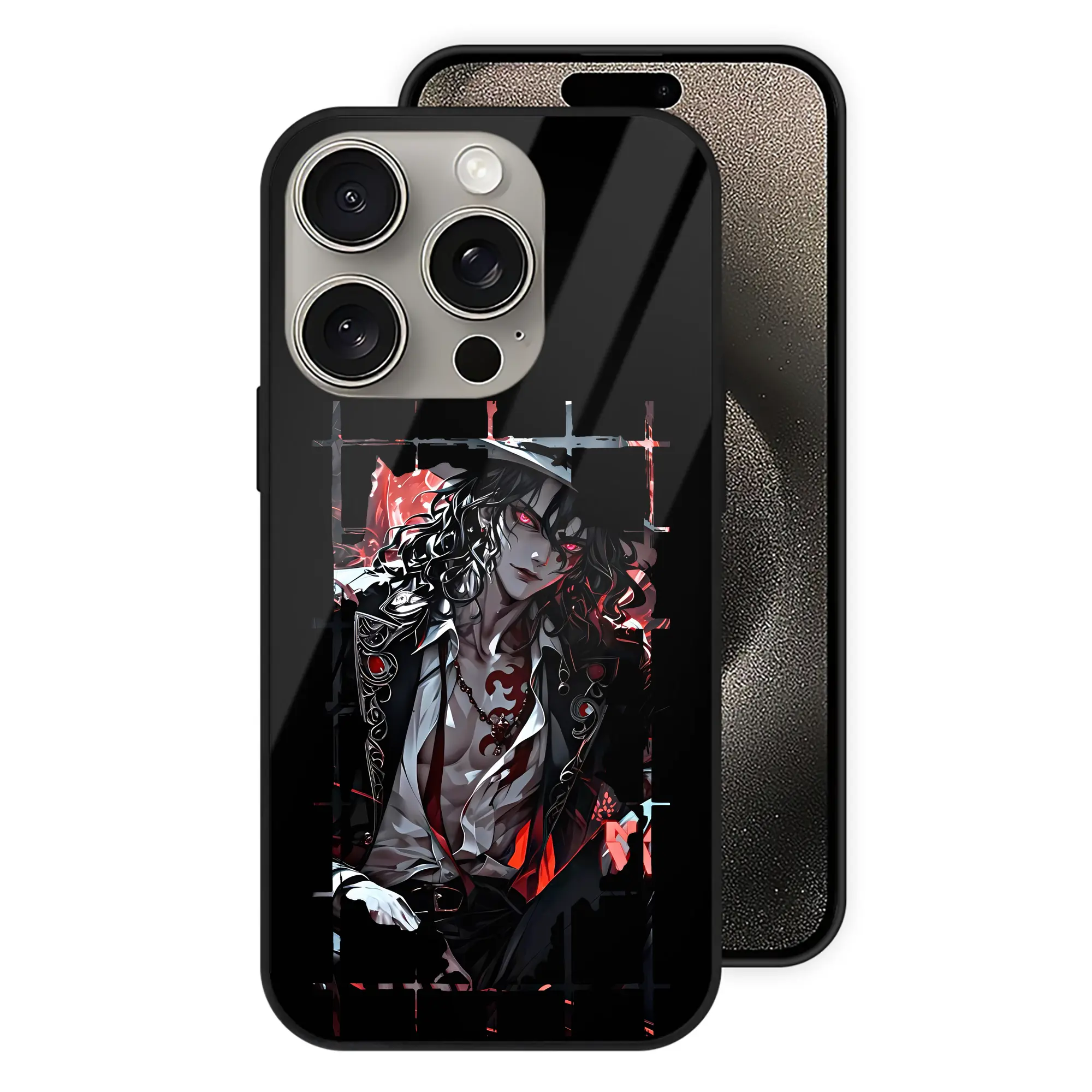 鬼滅の刃 グッズ,鬼舞辻 無惨 - IPhone15Pro対応 ・ スマホケース ・ 背面ガラス ・ TPU+強化ガラス ・ 耐衝撃 ・ 黄変防止 ・ ワイヤレス充電対応 ・ 3D立体ボタン