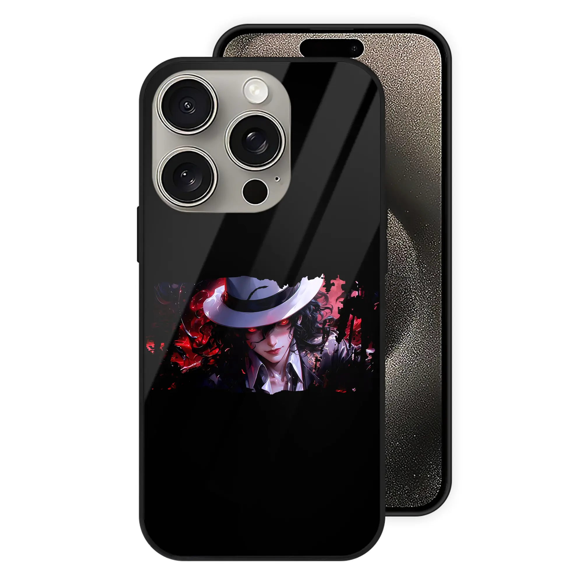 鬼滅の刃 グッズ,鬼舞辻 無惨 - IPhone15Pro対応 ・ スマホケース ・ 背面ガラス ・ TPU+強化ガラス ・ 耐衝撃 ・ 黄変防止 ・ ワイヤレス充電対応 ・ 3D立体ボタン