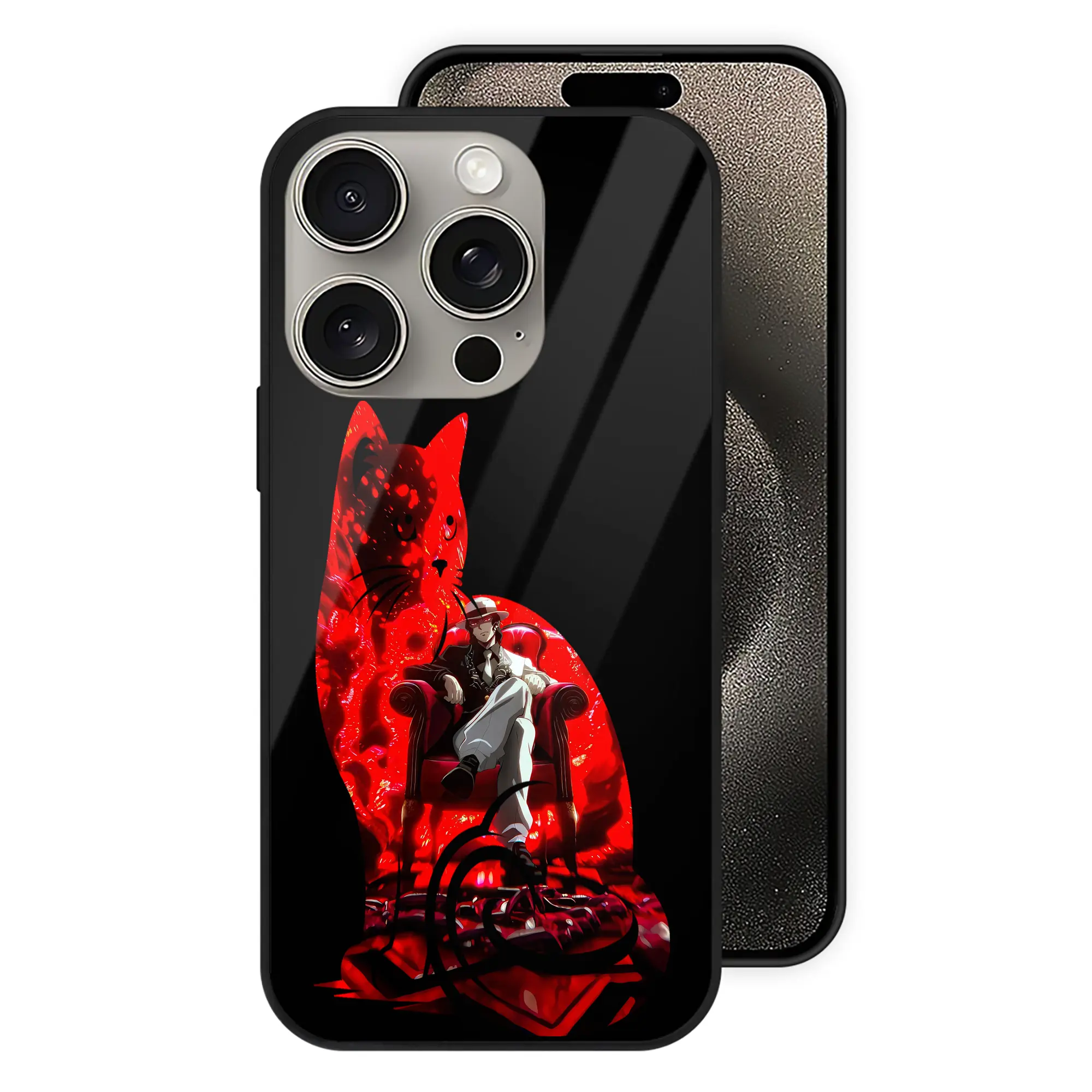 鬼滅の刃 グッズ,鬼舞辻 無惨 - IPhone15Pro対応 ・ スマホケース ・ 背面ガラス ・ TPU+強化ガラス ・ 耐衝撃 ・ 黄変防止 ・ ワイヤレス充電対応 ・ 3D立体ボタン