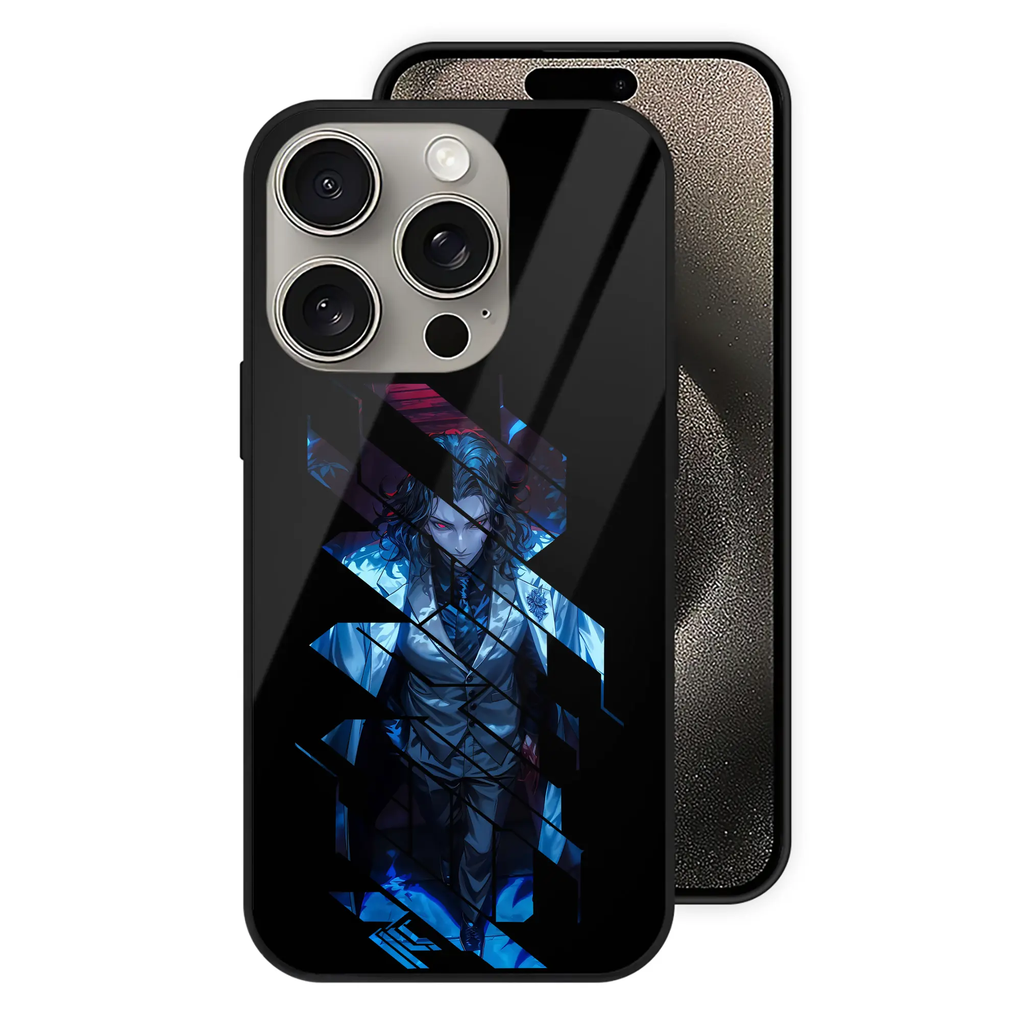 鬼滅の刃 グッズ,鬼舞辻 無惨 - IPhone15Pro対応 ・ スマホケース ・ 背面ガラス ・ TPU+強化ガラス ・ 耐衝撃 ・ 黄変防止 ・ ワイヤレス充電対応 ・ 3D立体ボタン