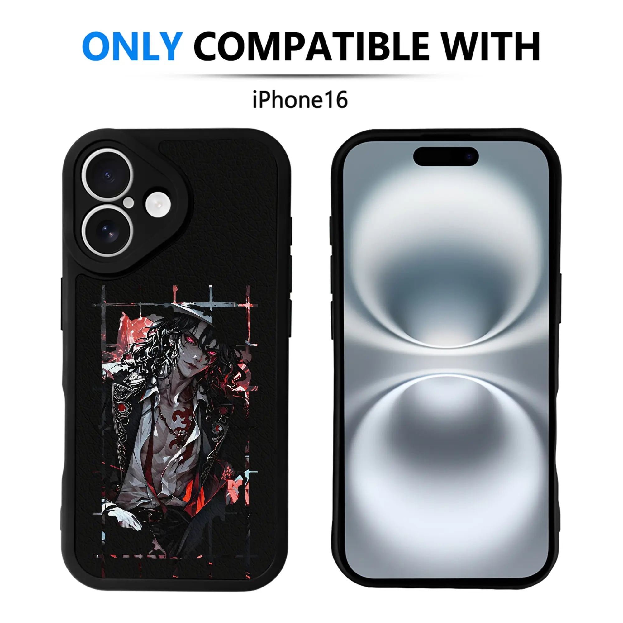 鬼滅の刃 グッズ,鬼舞辻 無惨 - IPhone 16シリーズ対応 ・ シリコンスマホケース ・ レザー調 ・ 高精度フィット ・ 耐衝撃 ・ ワイヤレス充電対応 ・ 精密カット