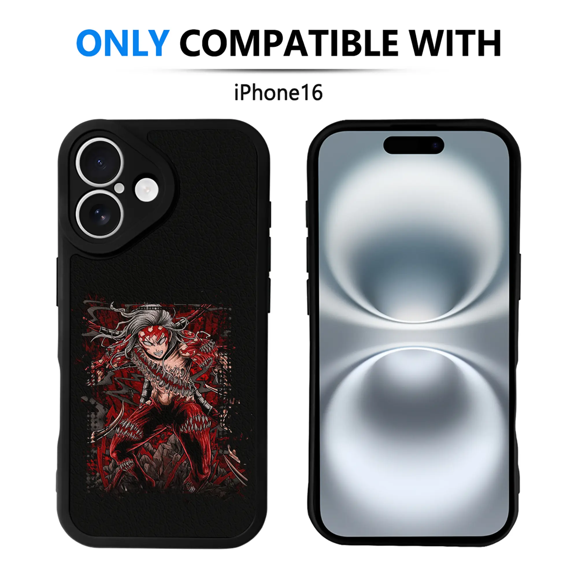 鬼滅の刃 グッズ,鬼舞辻 無惨 - IPhone 16シリーズ対応 ・ シリコンスマホケース ・ レザー調 ・ 高精度フィット ・ 耐衝撃 ・ ワイヤレス充電対応 ・ 精密カット