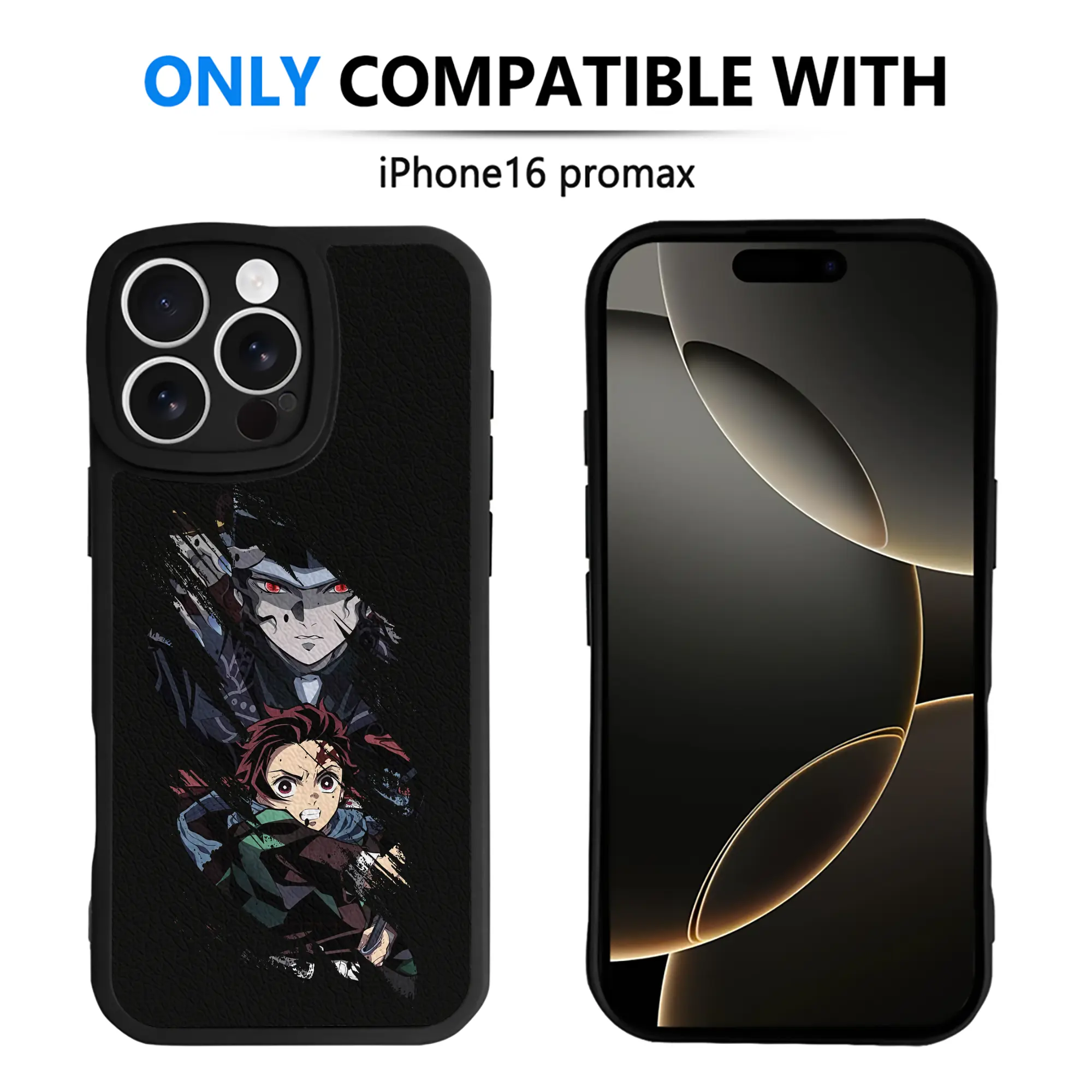 鬼滅の刃 グッズ,鬼舞辻 無惨 - IPhone 16シリーズ対応 ・ シリコンスマホケース ・ レザー調 ・ 高精度フィット ・ 耐衝撃 ・ ワイヤレス充電対応 ・ 精密カット