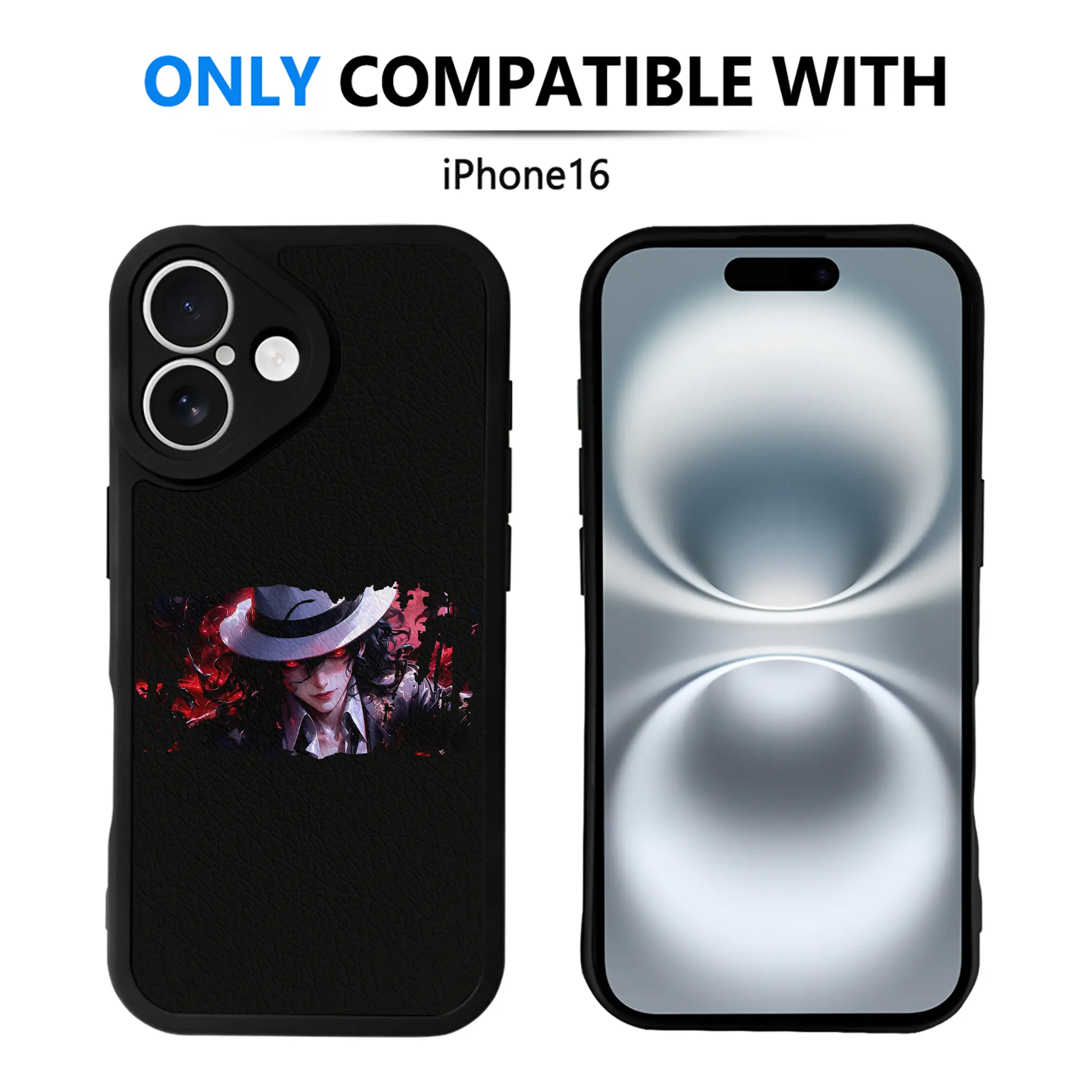 鬼滅の刃 グッズ,鬼舞辻 無惨 - IPhone 16シリーズ対応 ・ シリコンスマホケース ・ レザー調 ・ 高精度フィット ・ 耐衝撃 ・ ワイヤレス充電対応 ・ 精密カット