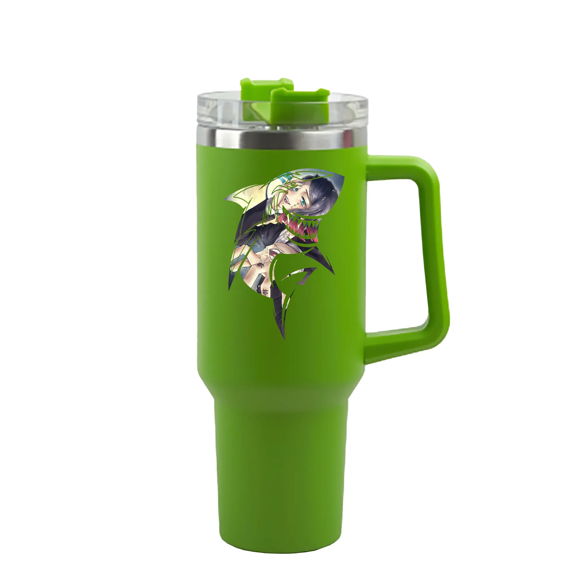 鬼滅の刃 グッズ,魘夢 - 1200mL 車用タンブラー ・ クリスタルステッカー ・ 304ステンレス 内側 ・ 201ステンレス 外側 ・ 保温 保冷 ・ ハンドル&ストロー付き ・ 通勤 ドライブ アウトドア用