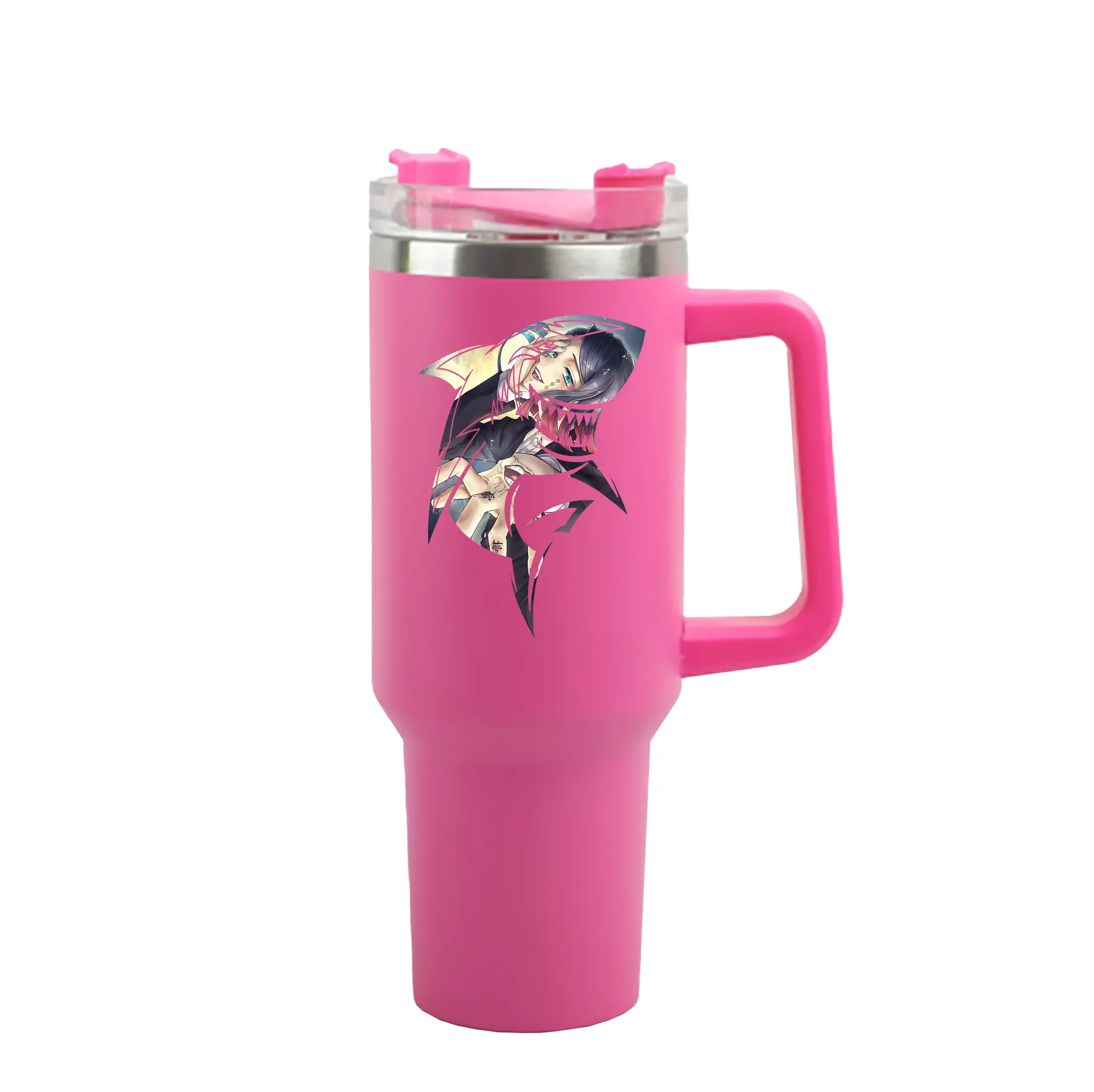 1200mL(40オンス)の大容量ハンドル付きカータンブラー。キラキラと輝くクリスタルステッカーデザインが、毎日の使用に華やかさをプラスします。食品グレード304ステンレスの内側と頑丈な201ステンレスの外側を採用し、耐久性・耐腐食性・安全性を兼ね備えています。