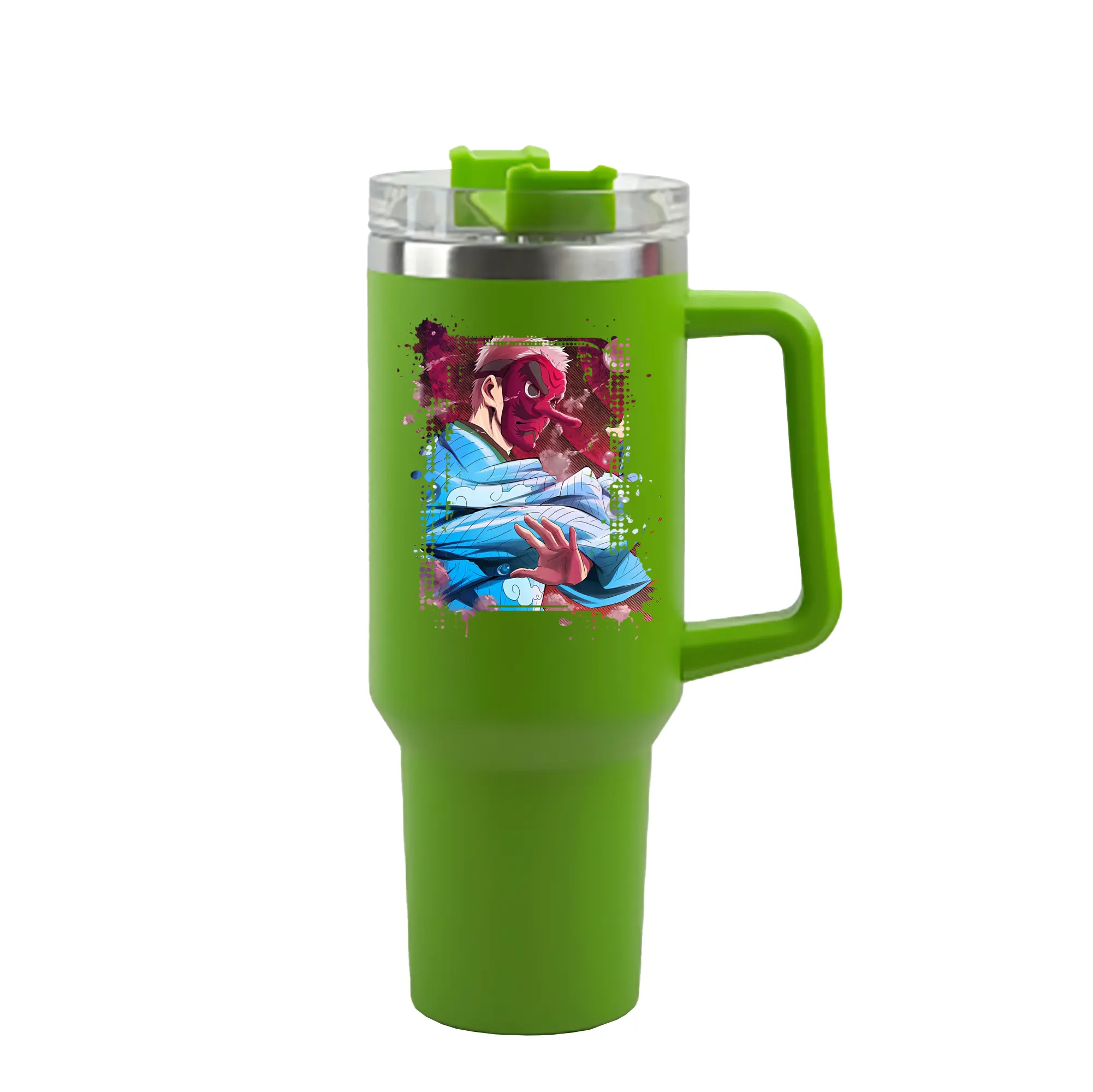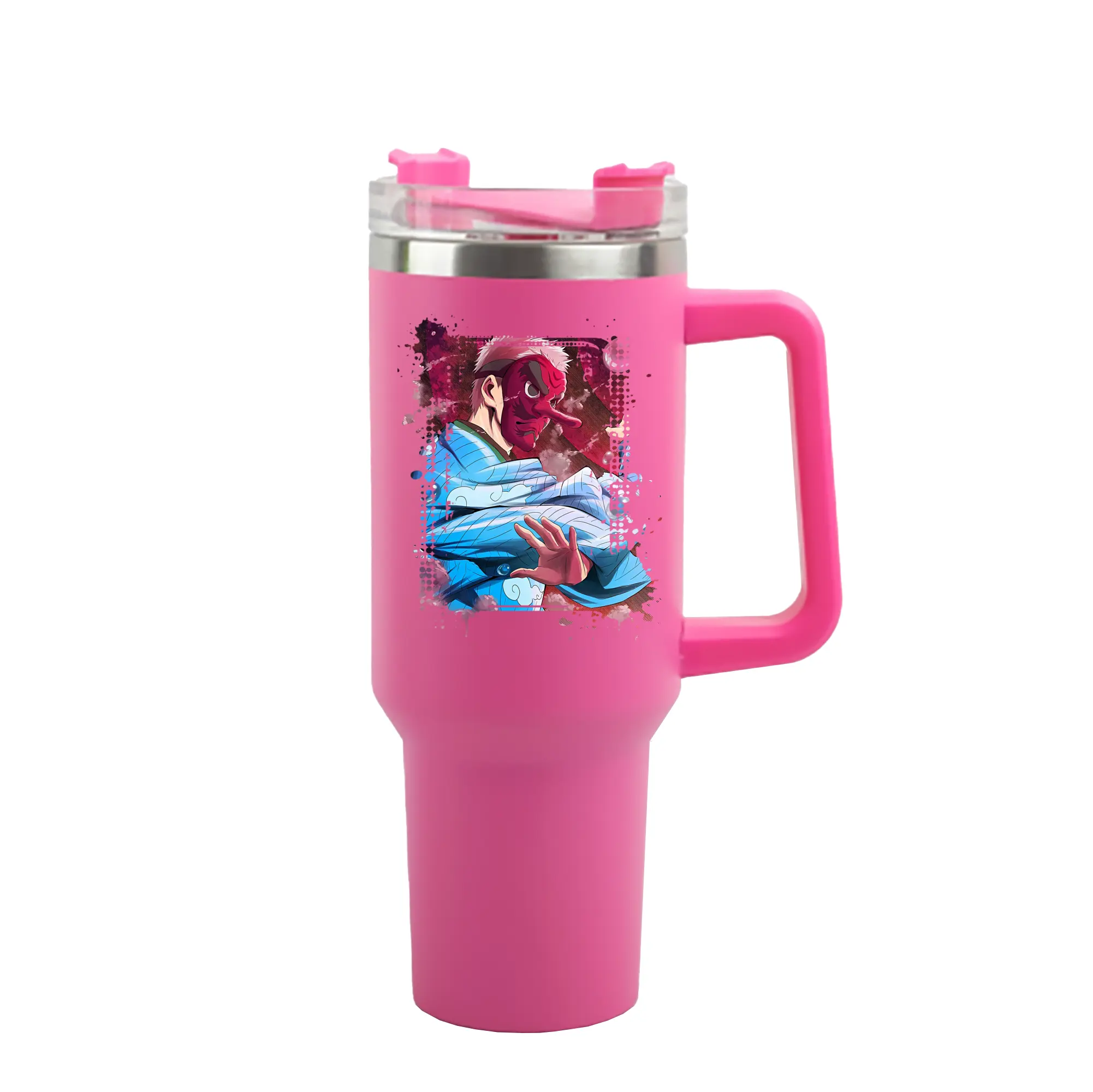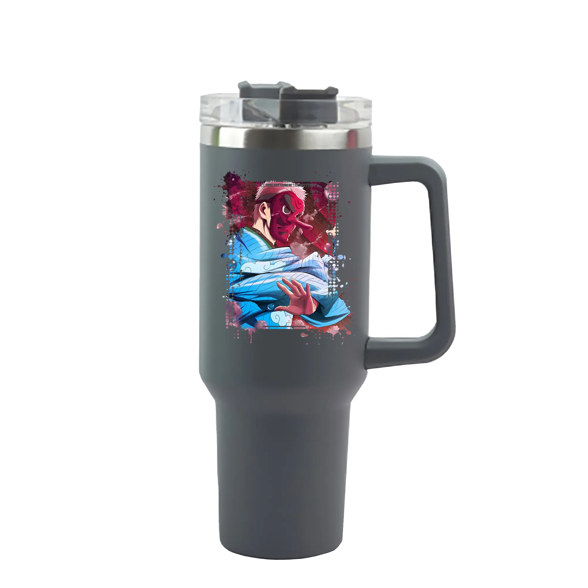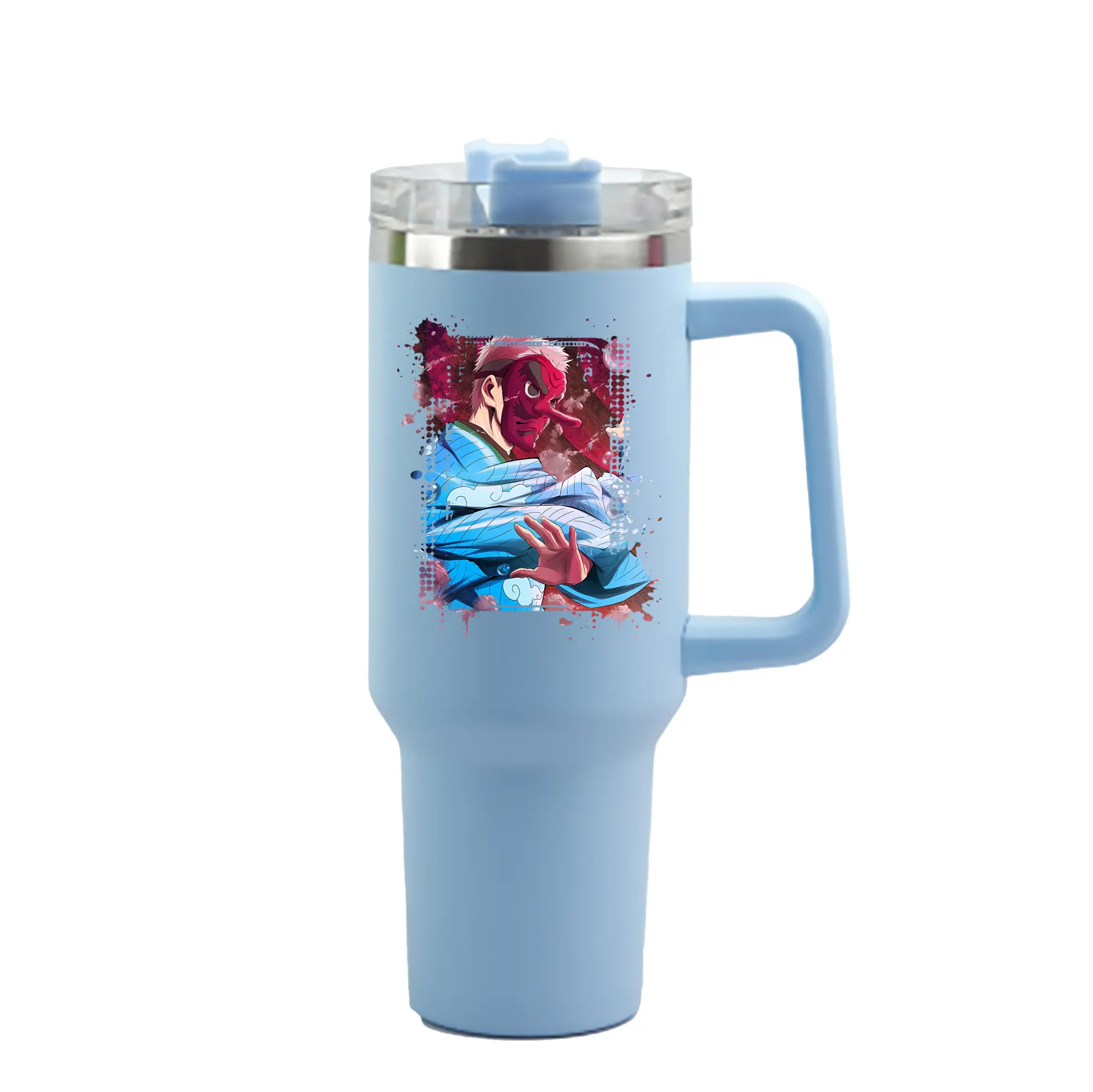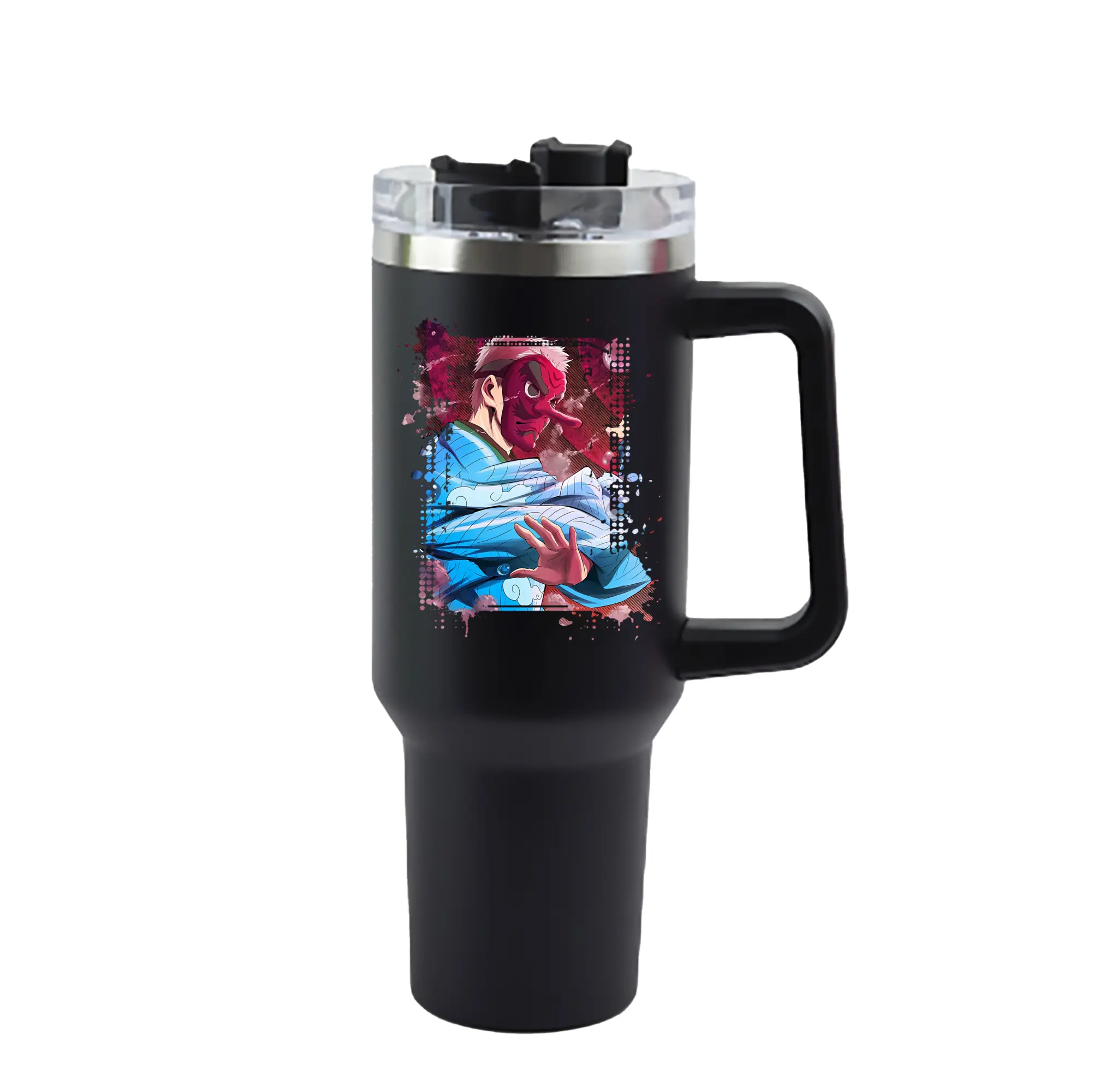 鬼滅の刃 グッズ,鱗滝 左近次 - 1200mL 車用タンブラー ・ クリスタルステッカー ・ 304ステンレス 内側 ・ 201ステンレス 外側 ・ 保温 保冷 ・ ハンドル&ストロー付き ・ 通勤 ドライブ アウトドア用