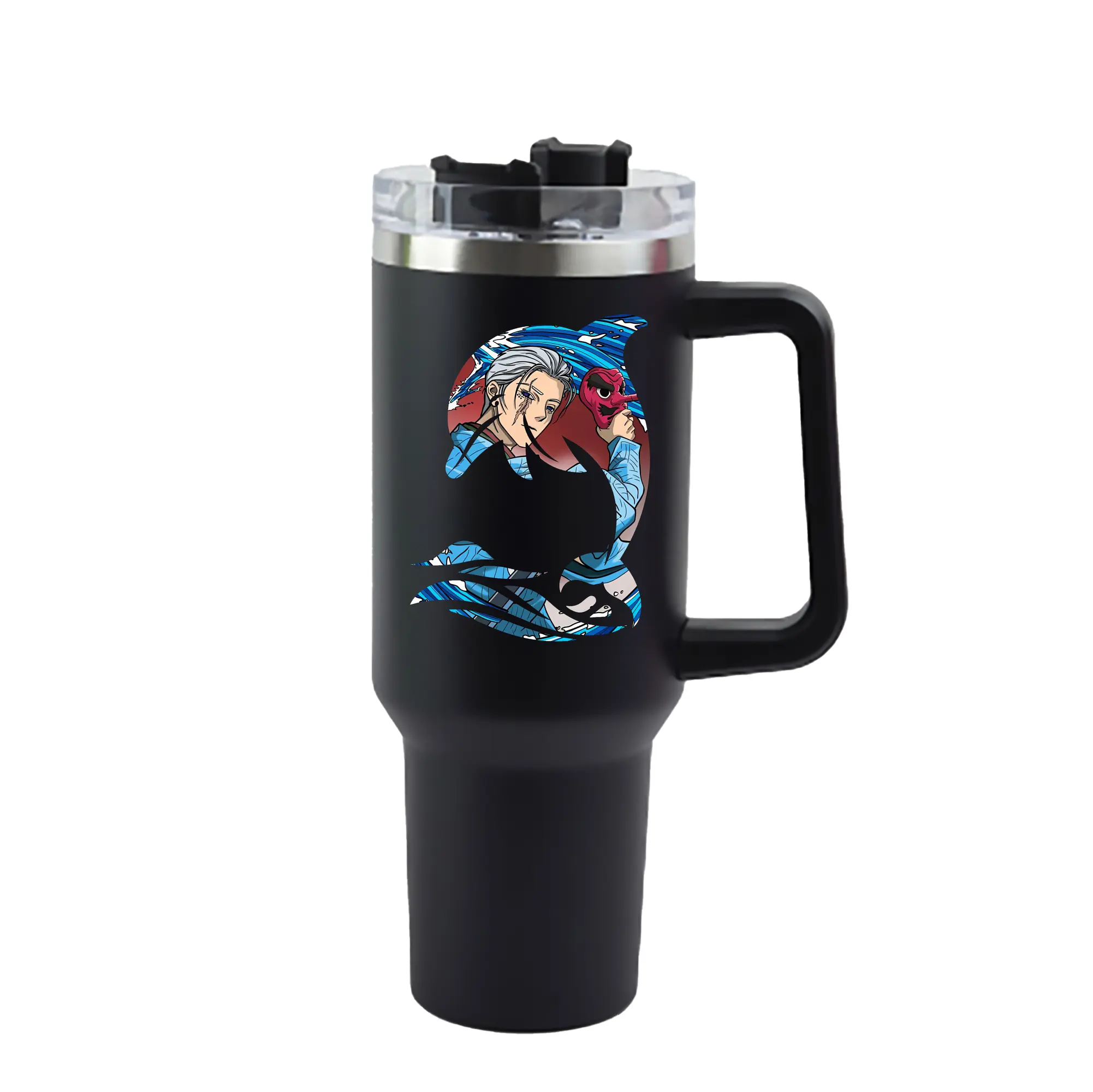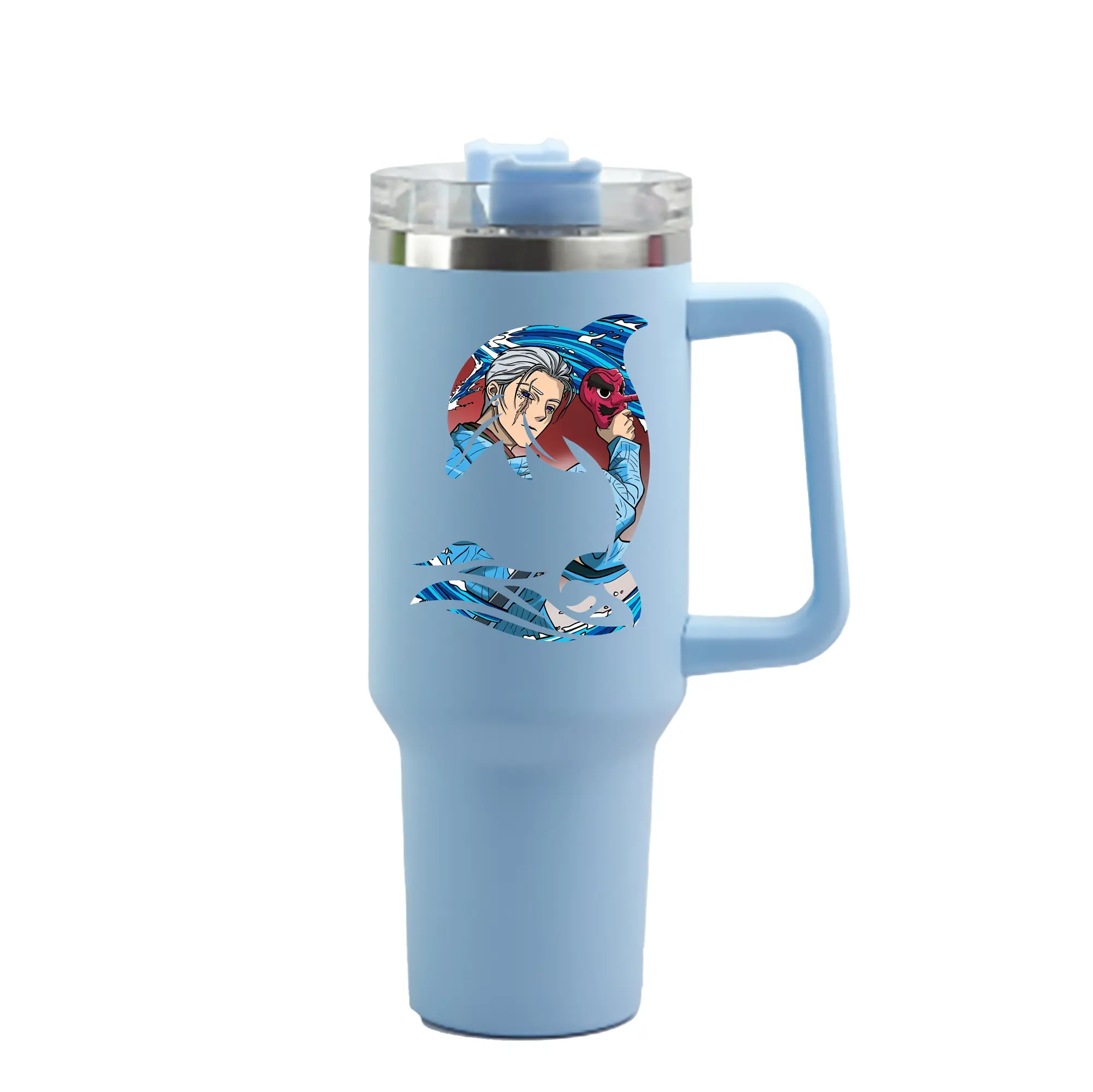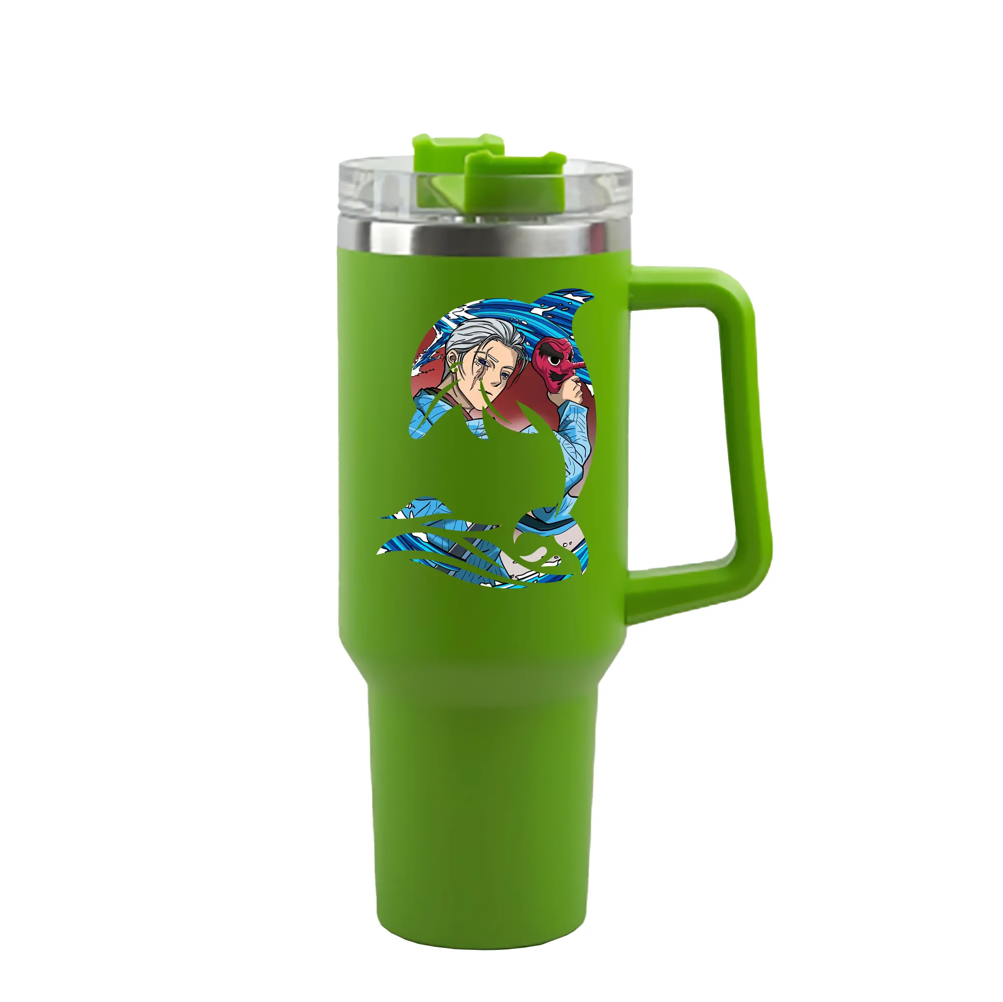 鬼滅の刃 グッズ,鱗滝 左近次 - 1200mL 車用タンブラー ・ クリスタルステッカー ・ 304ステンレス 内側 ・ 201ステンレス 外側 ・ 保温 保冷 ・ ハンドル&ストロー付き ・ 通勤 ドライブ アウトドア用