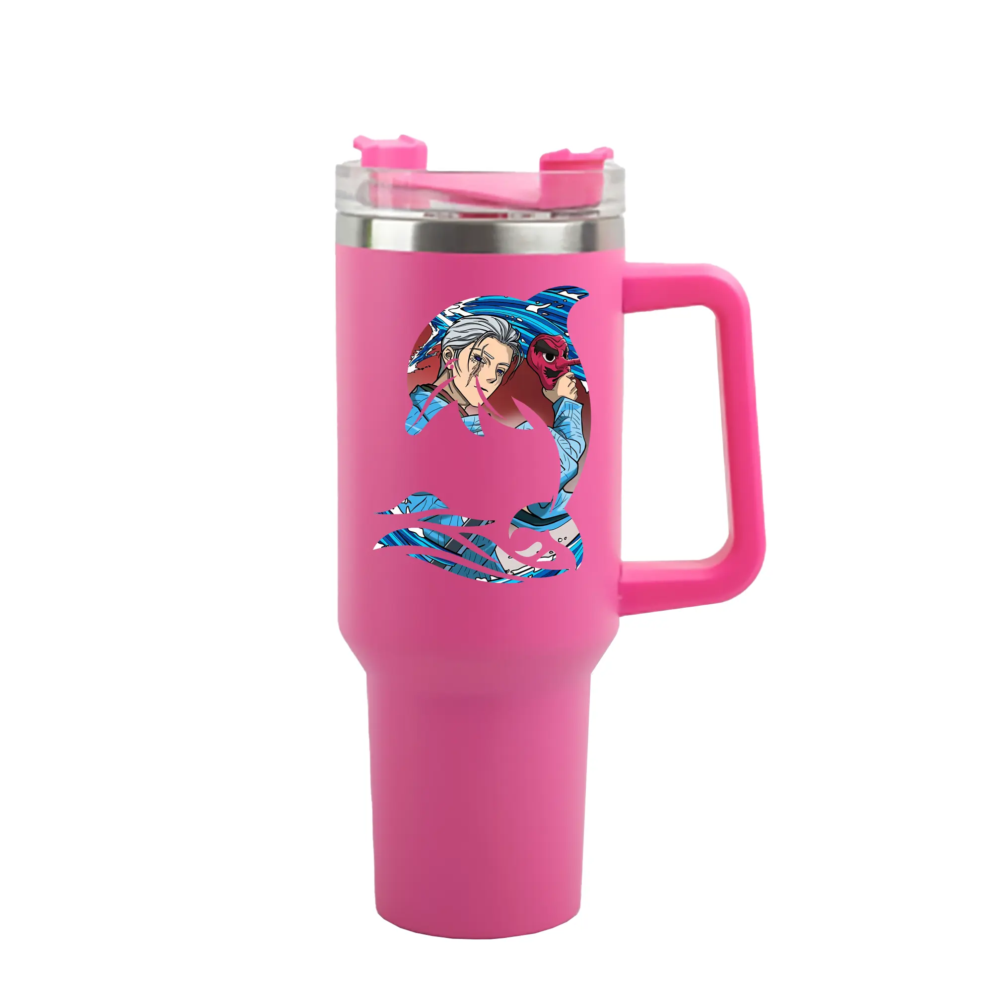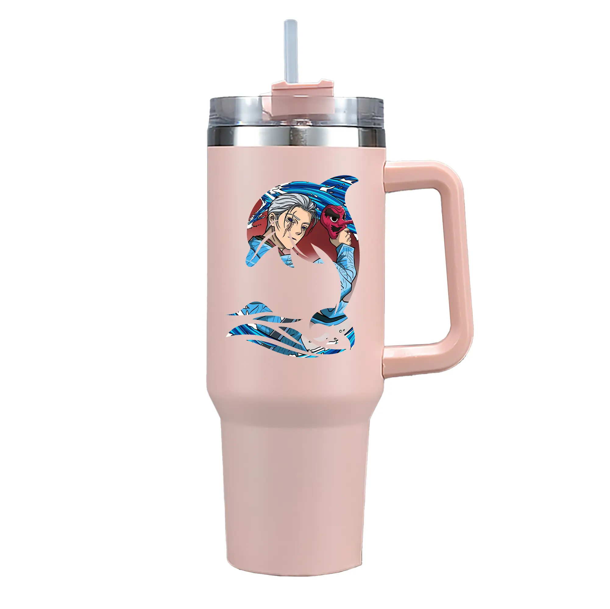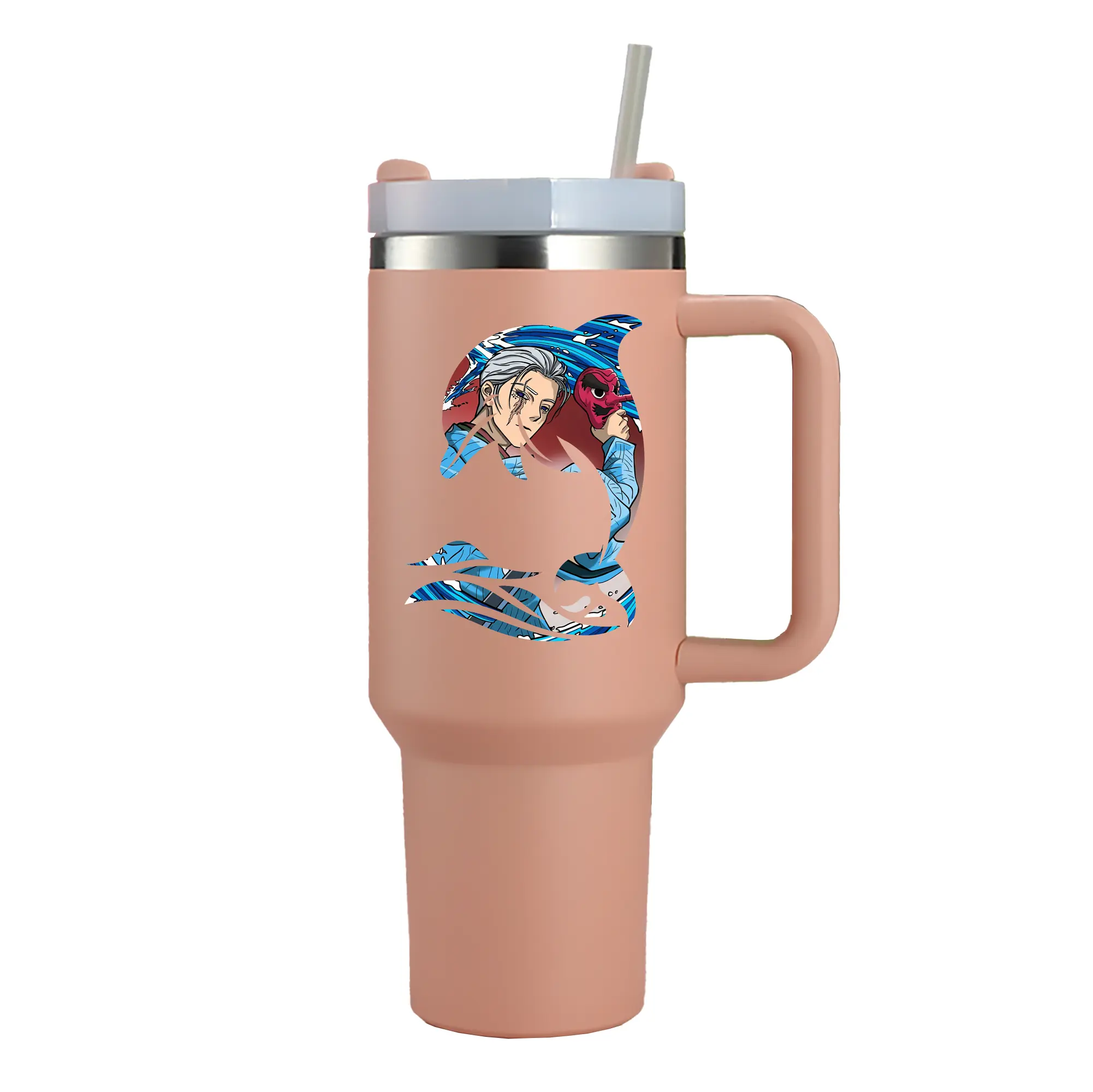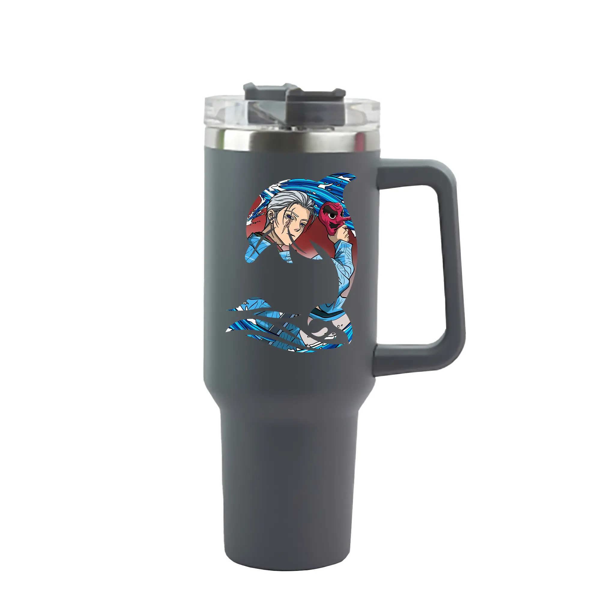 鬼滅の刃 グッズ,鱗滝 左近次 - 1200mL 車用タンブラー ・ クリスタルステッカー ・ 304ステンレス 内側 ・ 201ステンレス 外側 ・ 保温 保冷 ・ ハンドル&ストロー付き ・ 通勤 ドライブ アウトドア用
