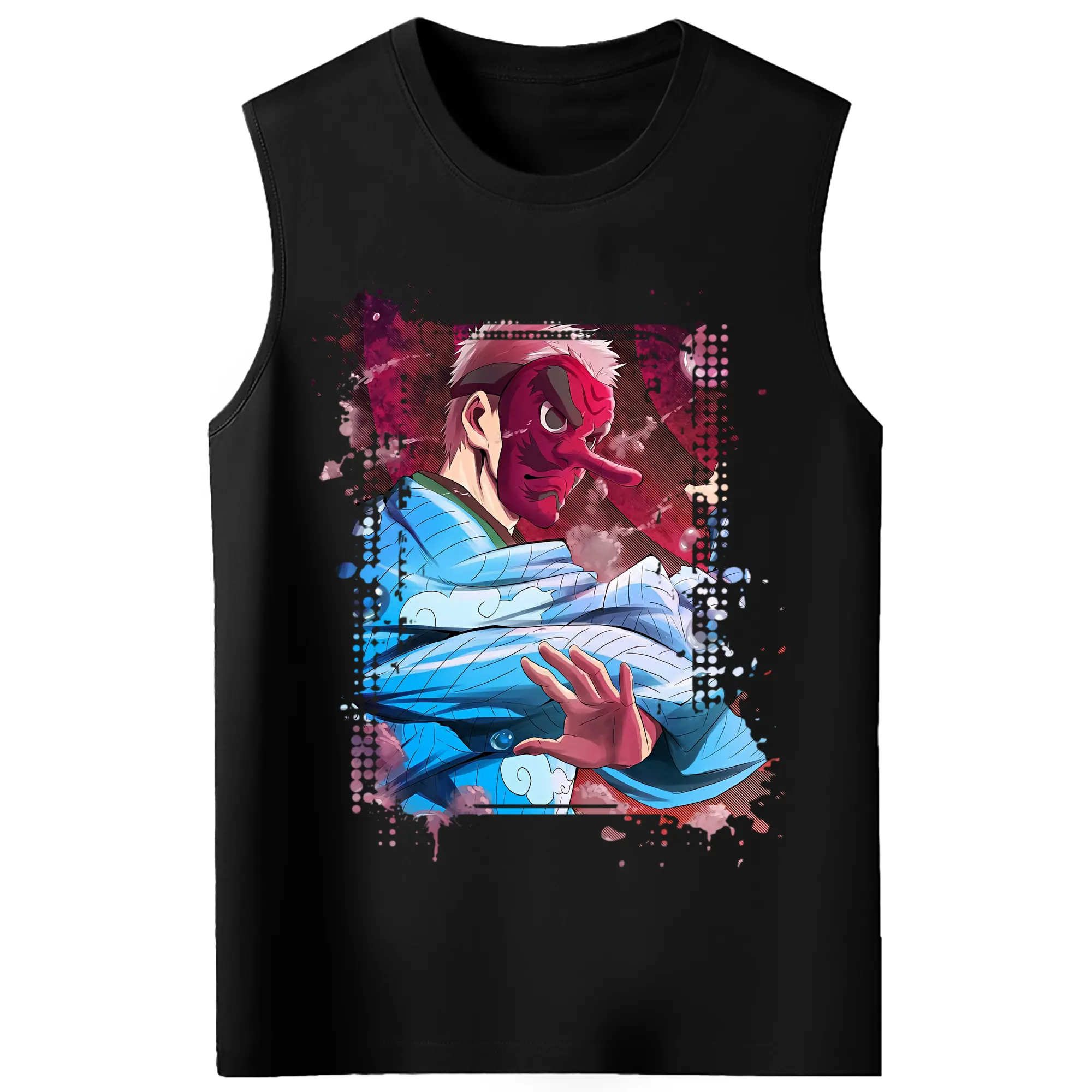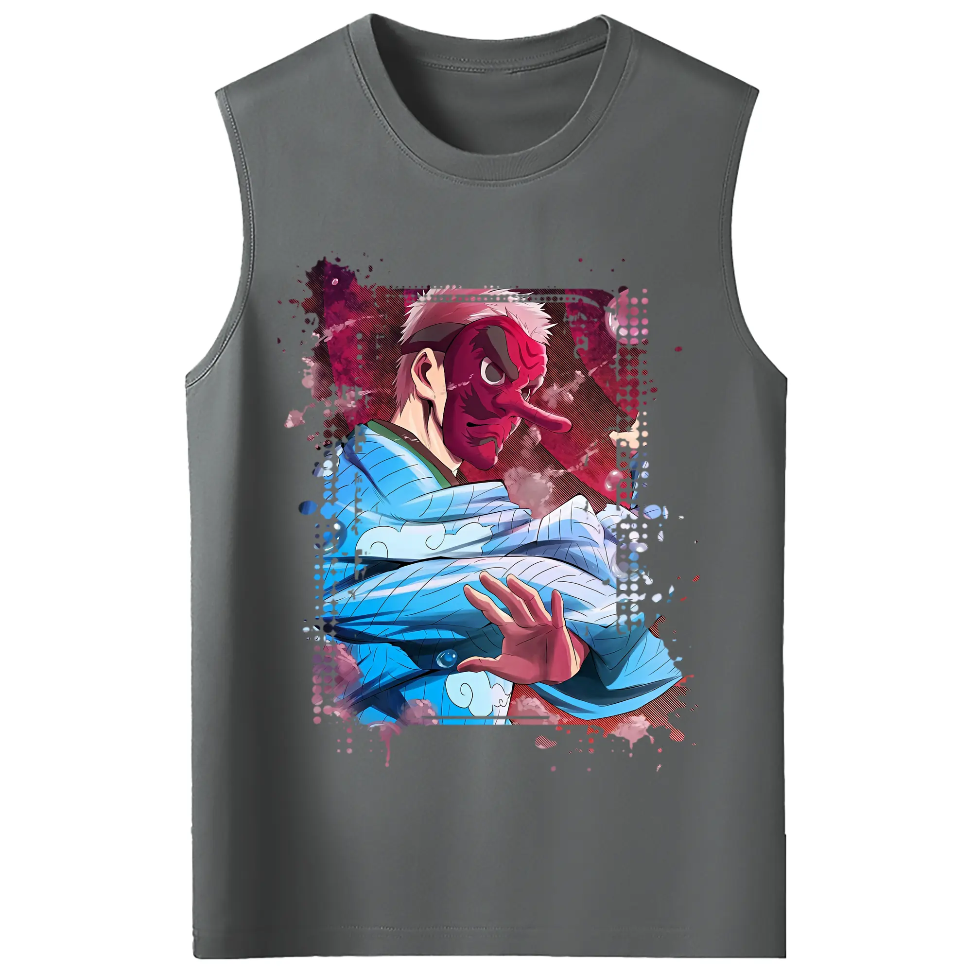 鬼滅の刃 グッズ,鱗滝 左近次 - コットン100% タンクトップ ・ フロントプリント ・ タイトフィット ・ 快適 通気性 ・ スポーツ カジュアル 散歩用