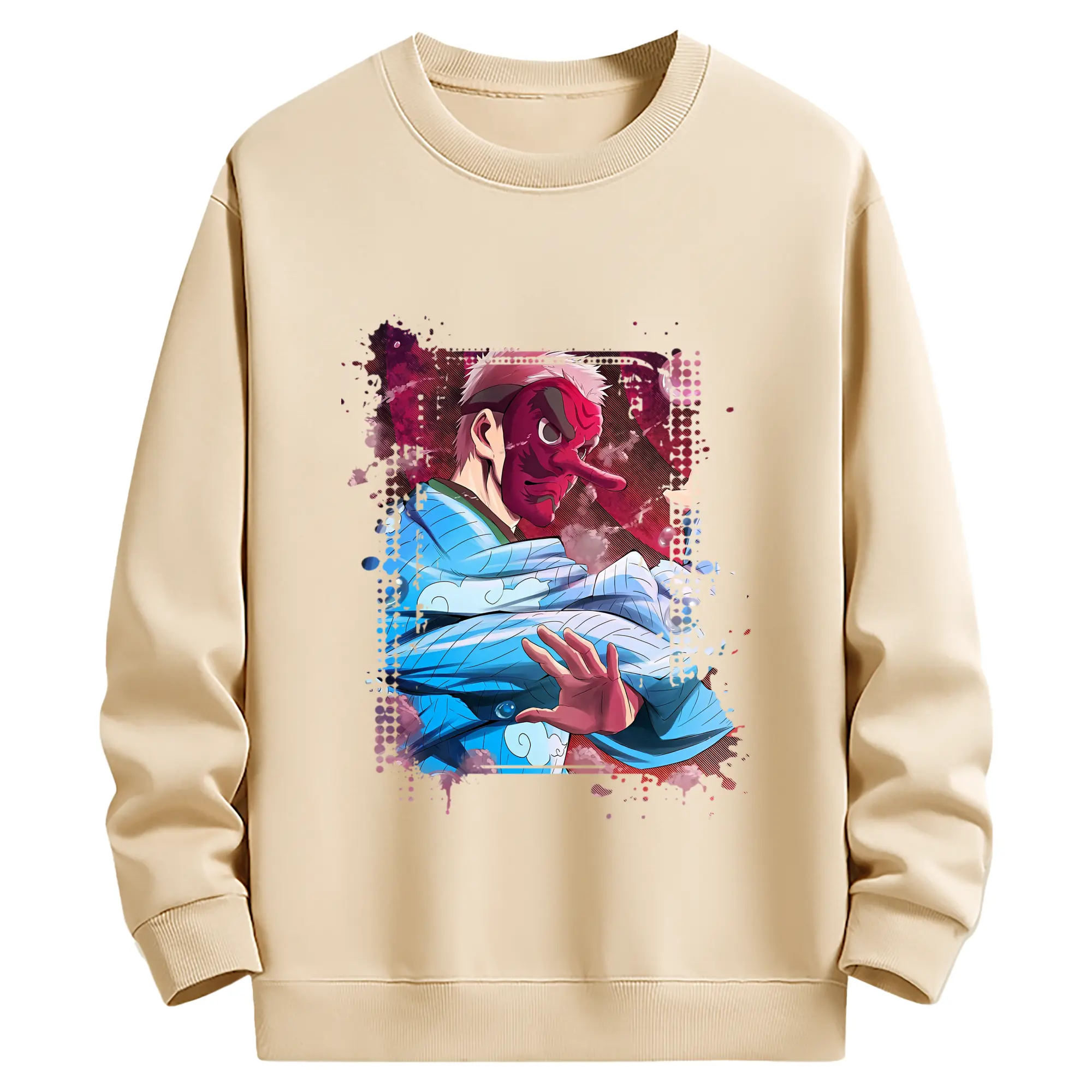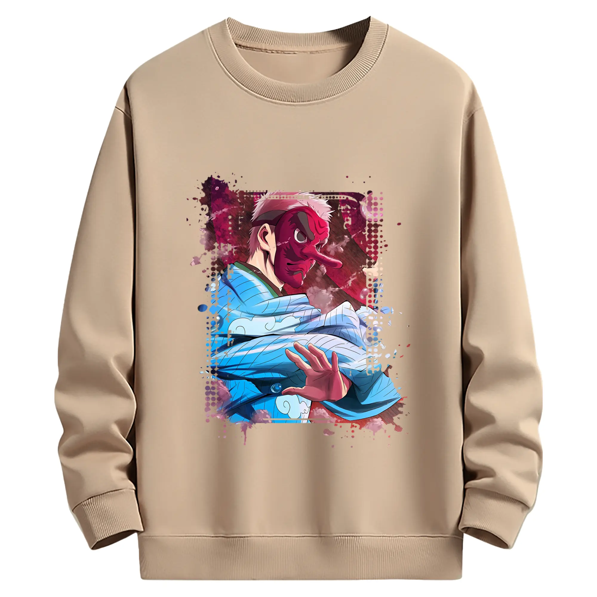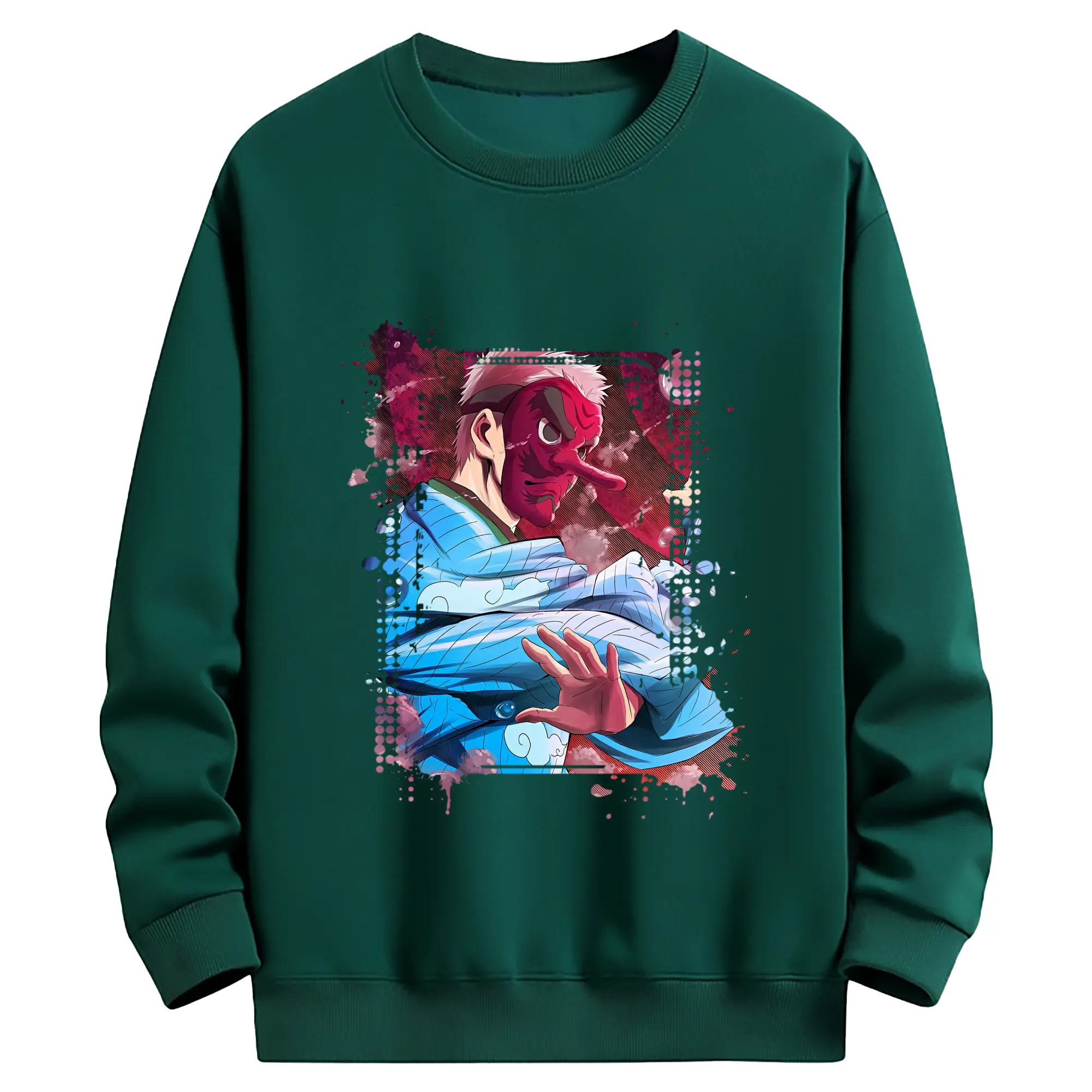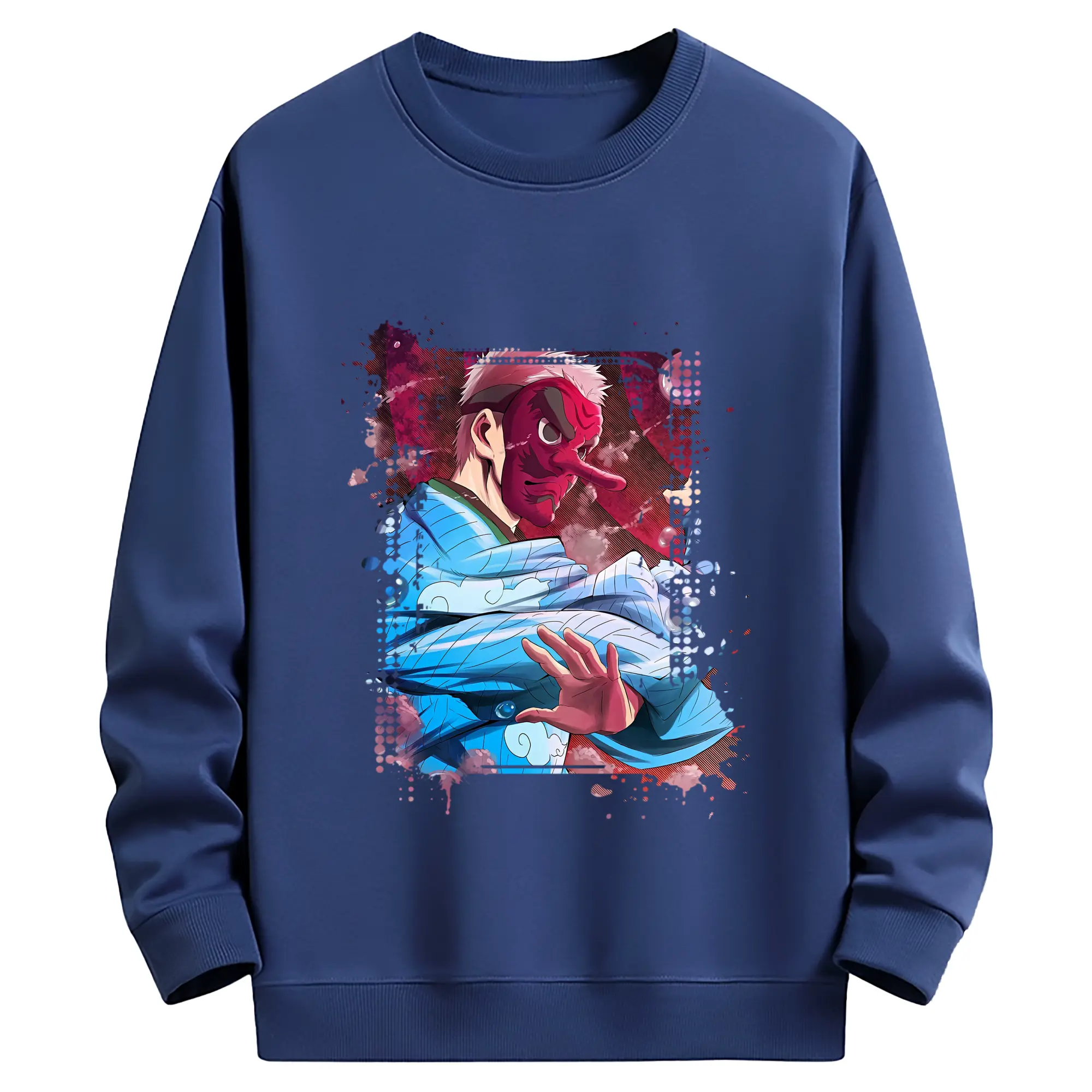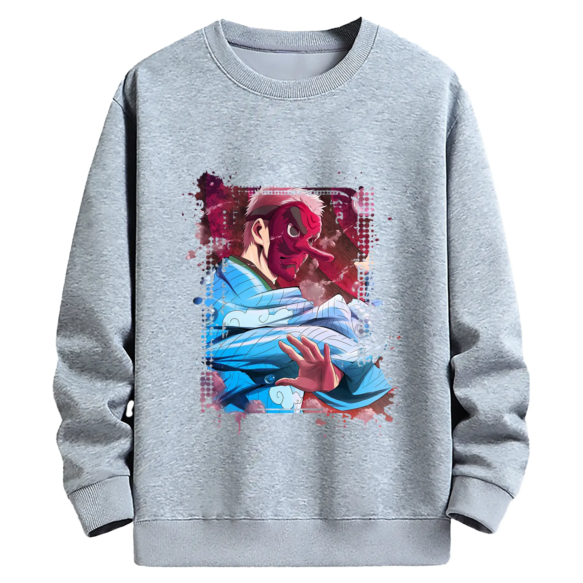 鬼滅の刃 グッズ,鱗滝 左近次 - 薄手 クルーネック スウェット 裏毛260g · ポリエステル 春秋向け カジュアル 男女兼用 · トレーナー デイリー スポーツ 散歩に最適