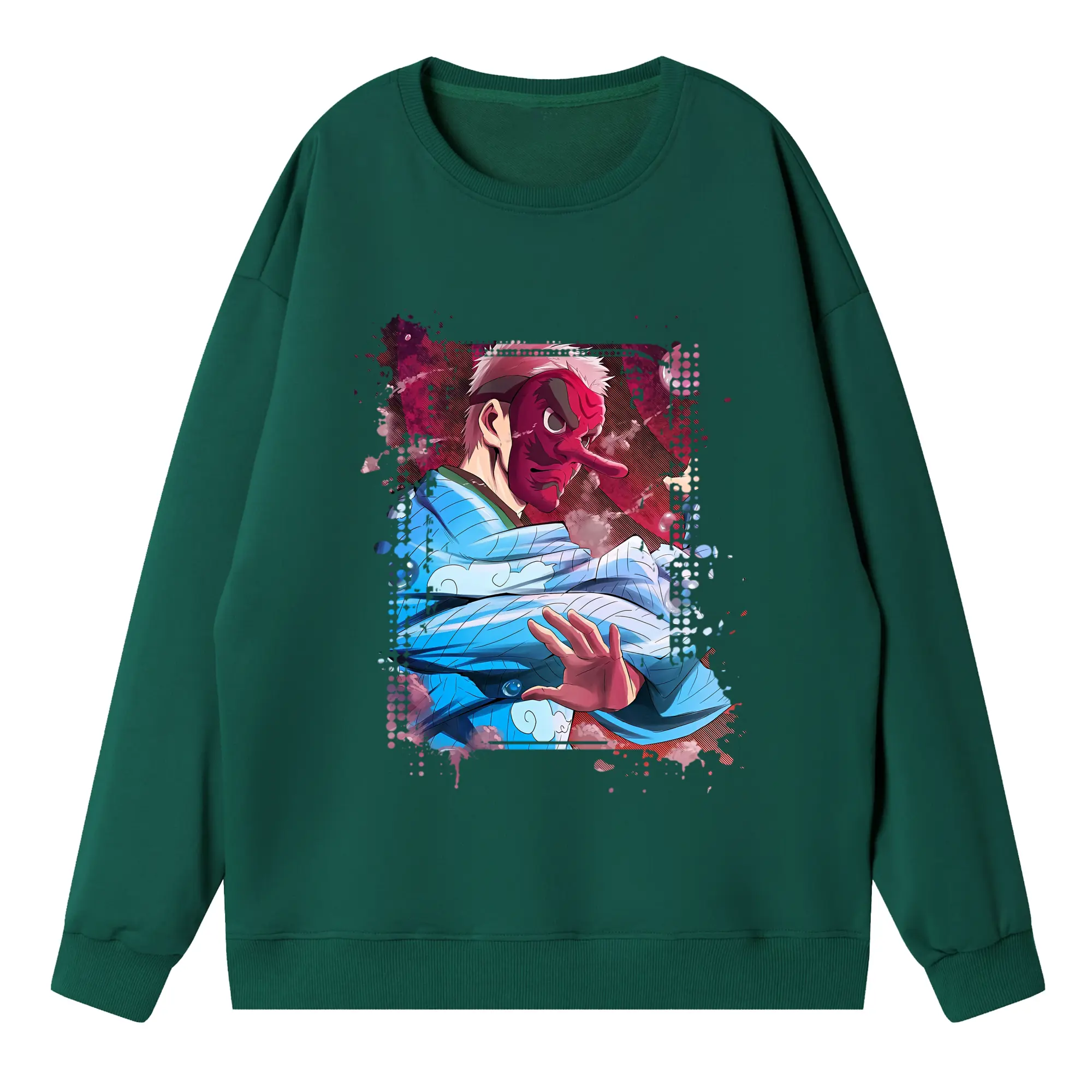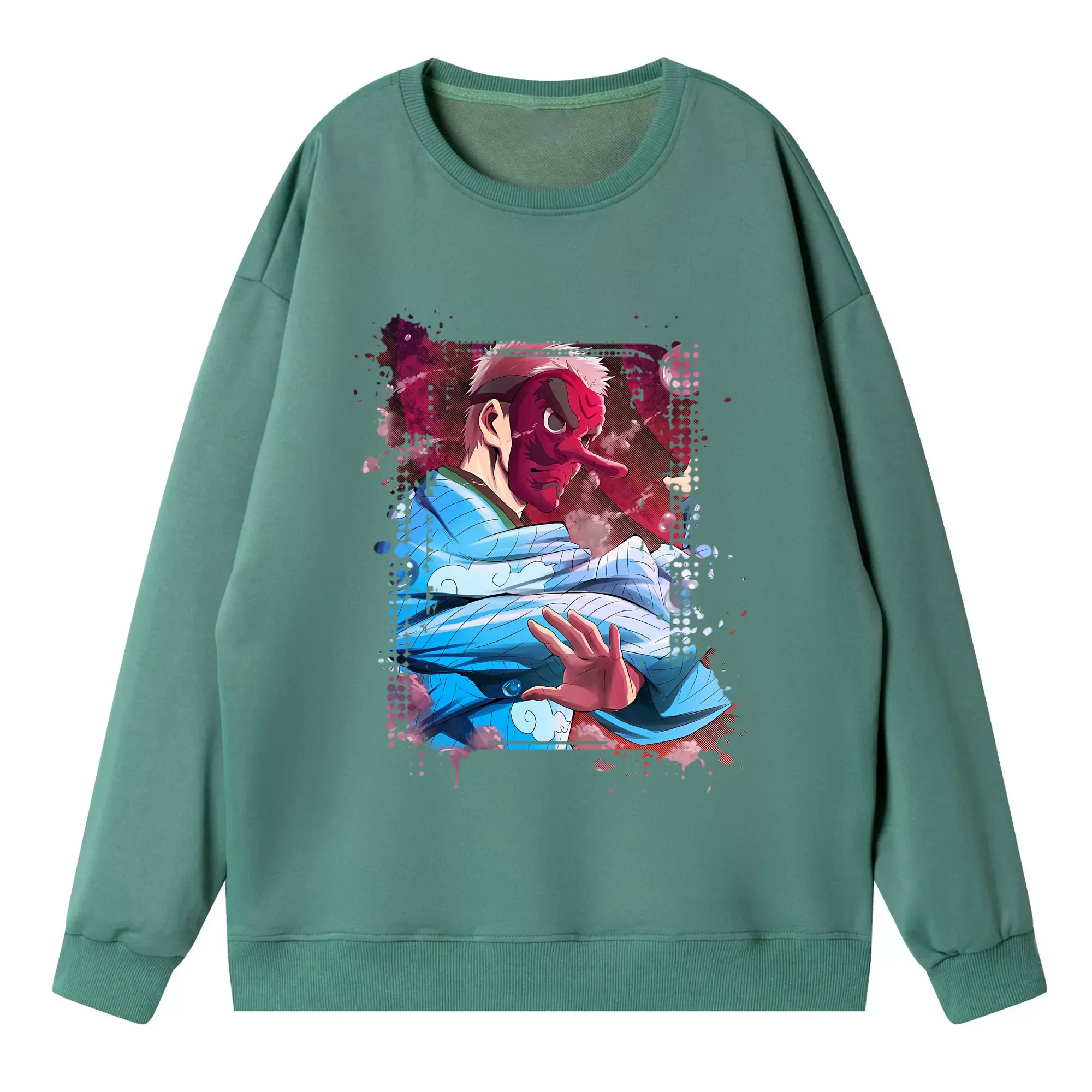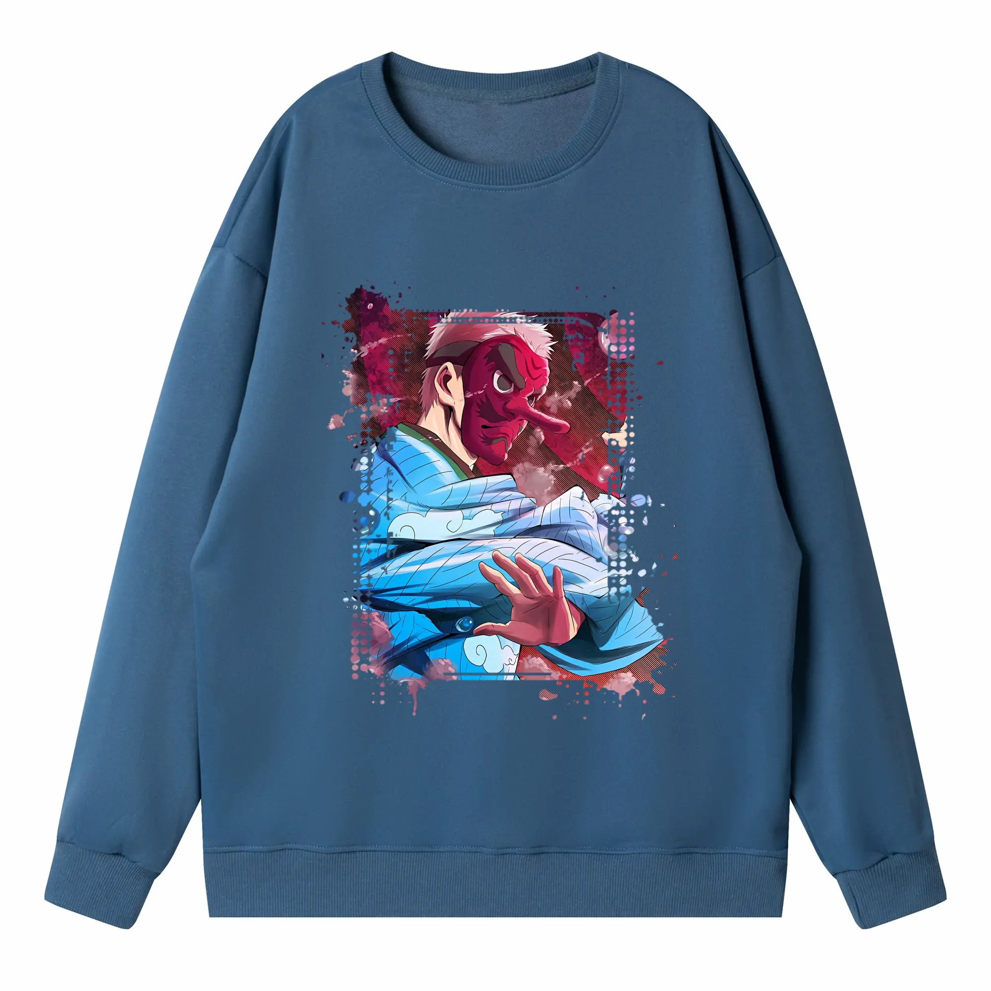 鬼滅の刃 グッズ,鱗滝 左近次 - 高品質 クルーネック スウェット ・ コットン59% ポリエステル41% ・ ユニセックス 長袖 トレーナー ・ カジュアル デイリー スポーツ 散歩用