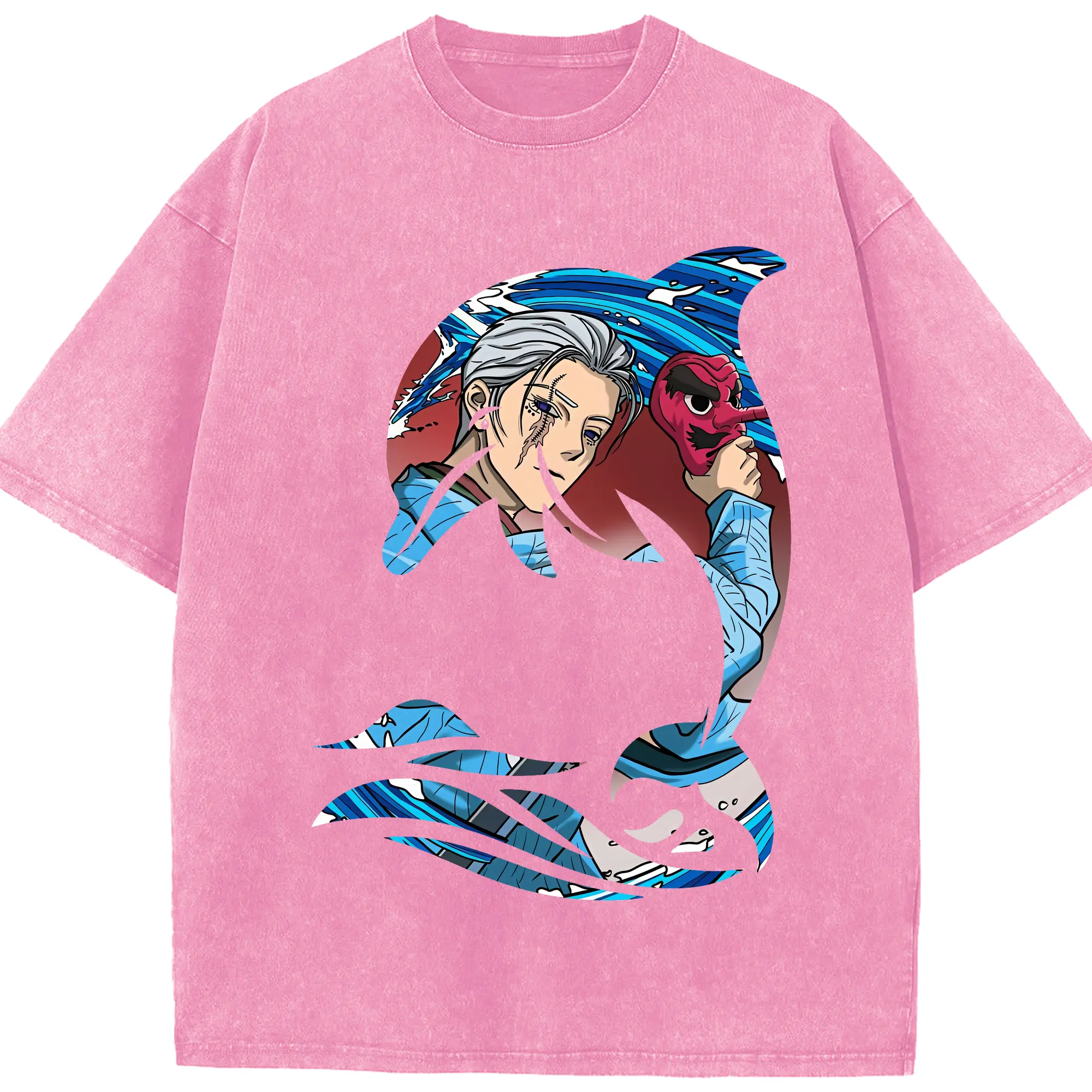 鬼滅の刃 グッズ,鱗滝 左近次 - 綿100% 半袖Tシャツ ・ フロントプリント ・ 快適 通気性 ・ 日常使い 散歩 スポーツ用