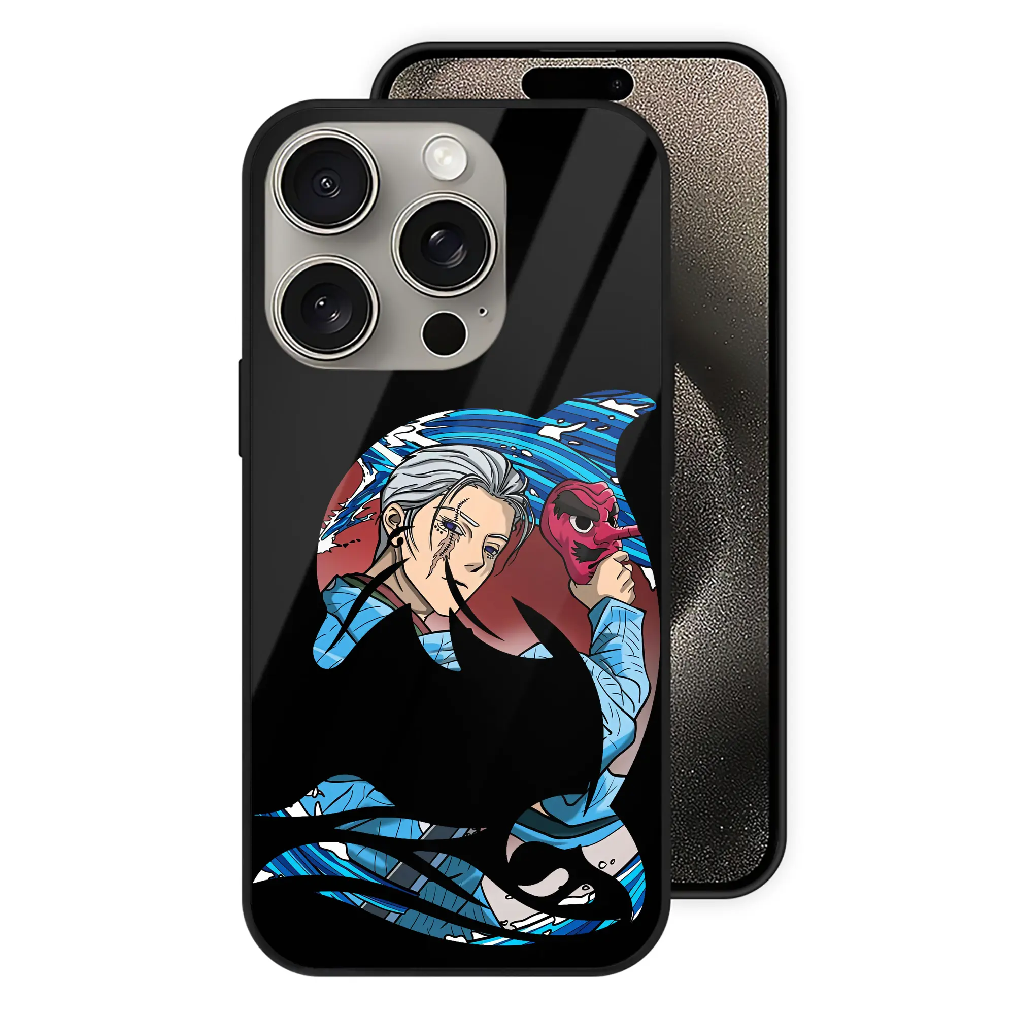 鬼滅の刃 グッズ,鱗滝 左近次 - IPhone15Pro対応 ・ スマホケース ・ 背面ガラス ・ TPU+強化ガラス ・ 耐衝撃 ・ 黄変防止 ・ ワイヤレス充電対応 ・ 3D立体ボタン