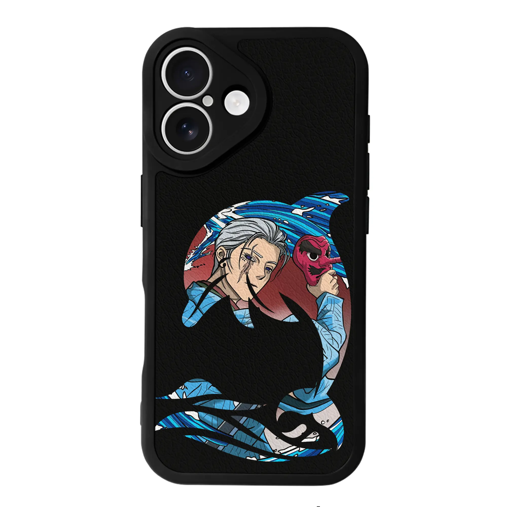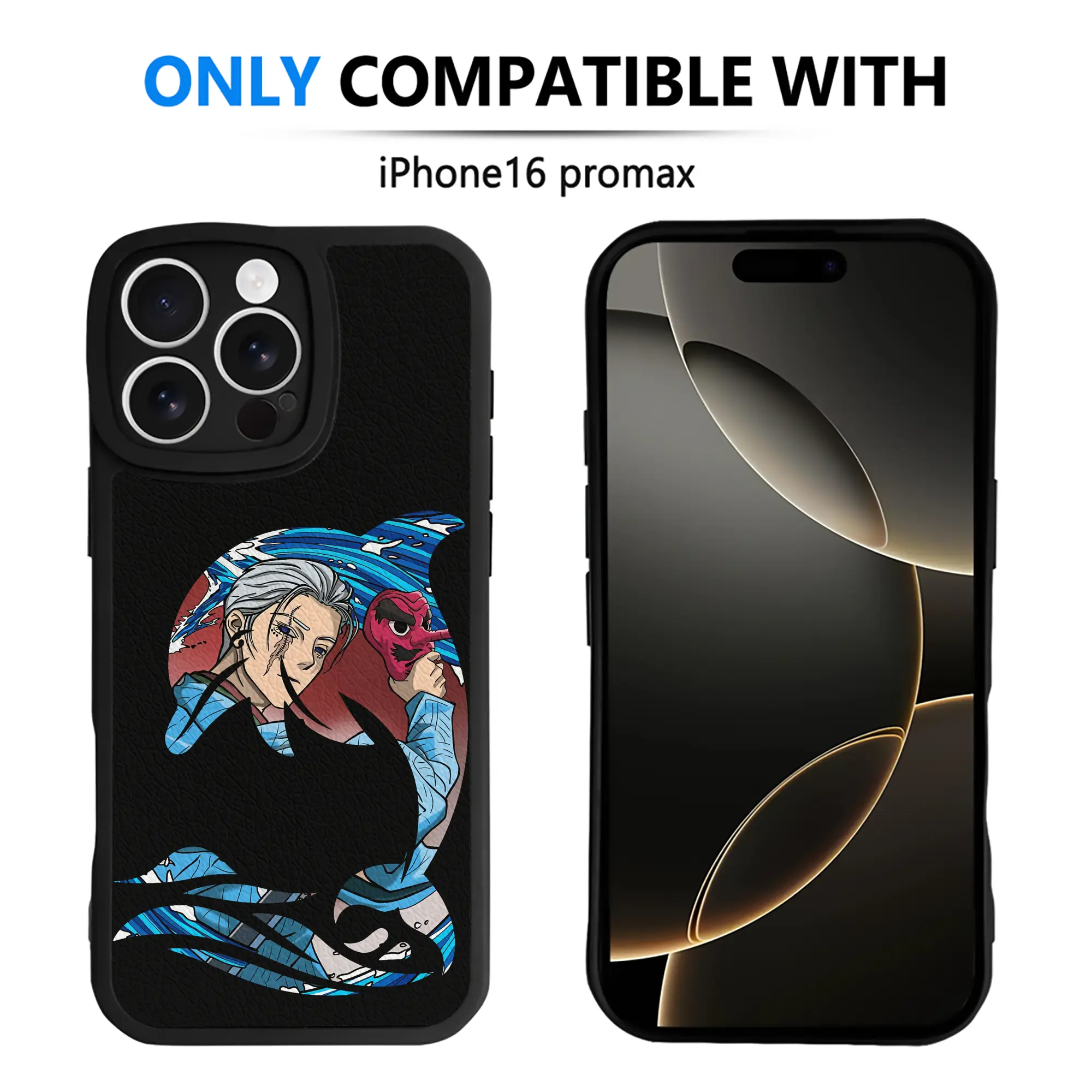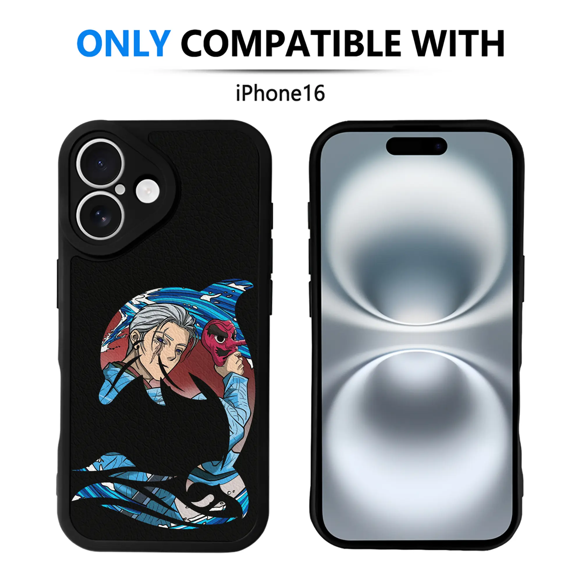 鬼滅の刃 グッズ,鱗滝 左近次 - IPhone 16シリーズ対応 ・ シリコンスマホケース ・ レザー調 ・ 高精度フィット ・ 耐衝撃 ・ ワイヤレス充電対応 ・ 精密カット