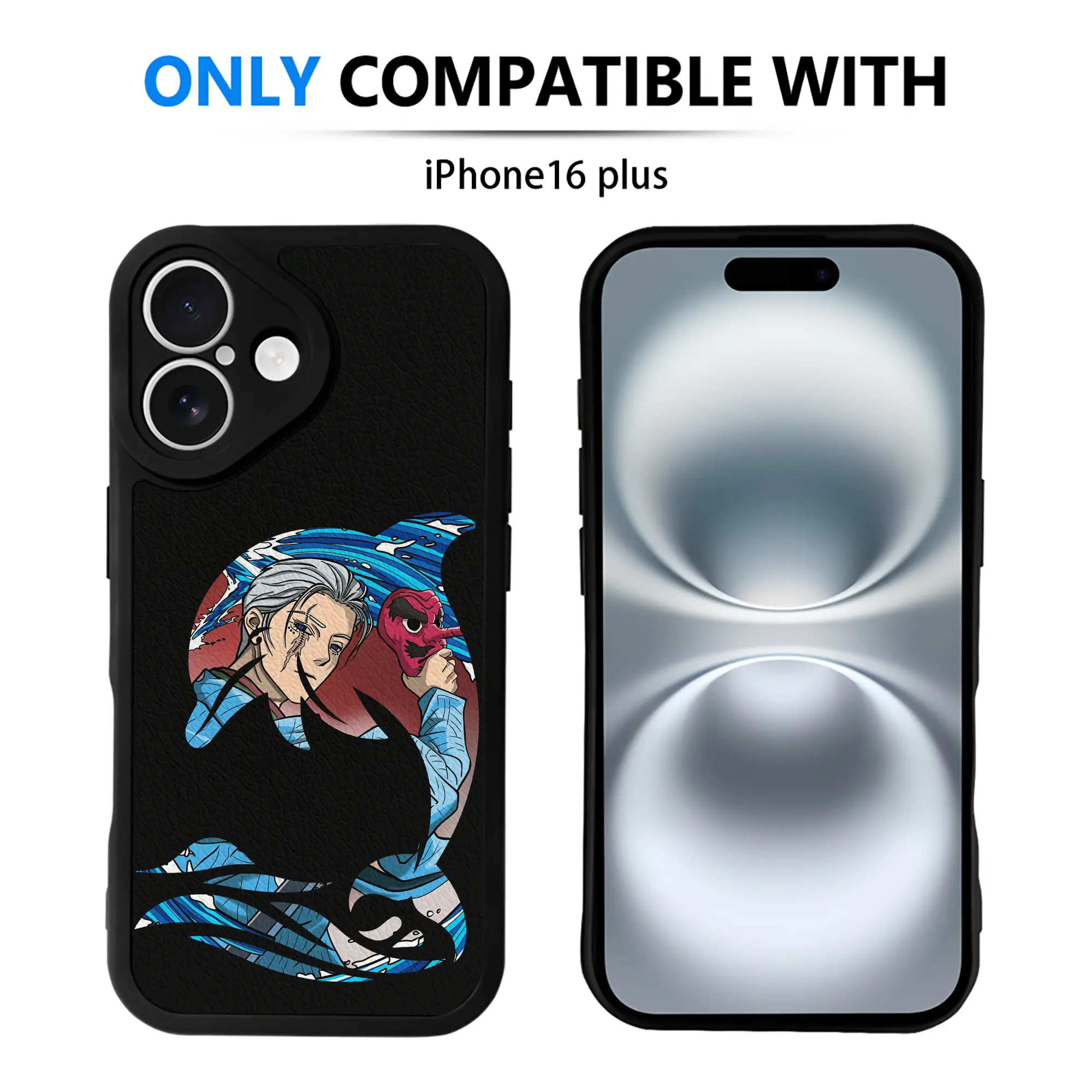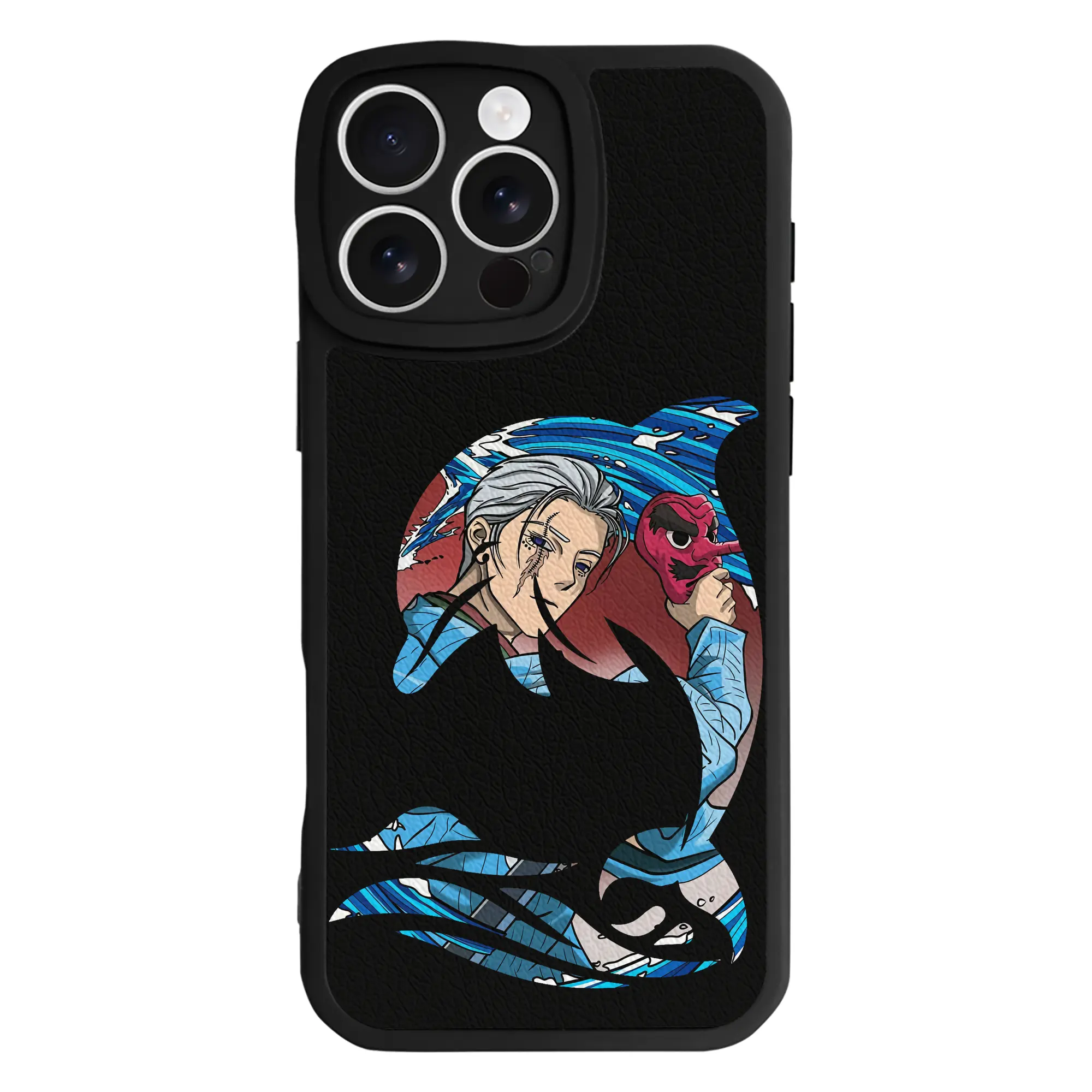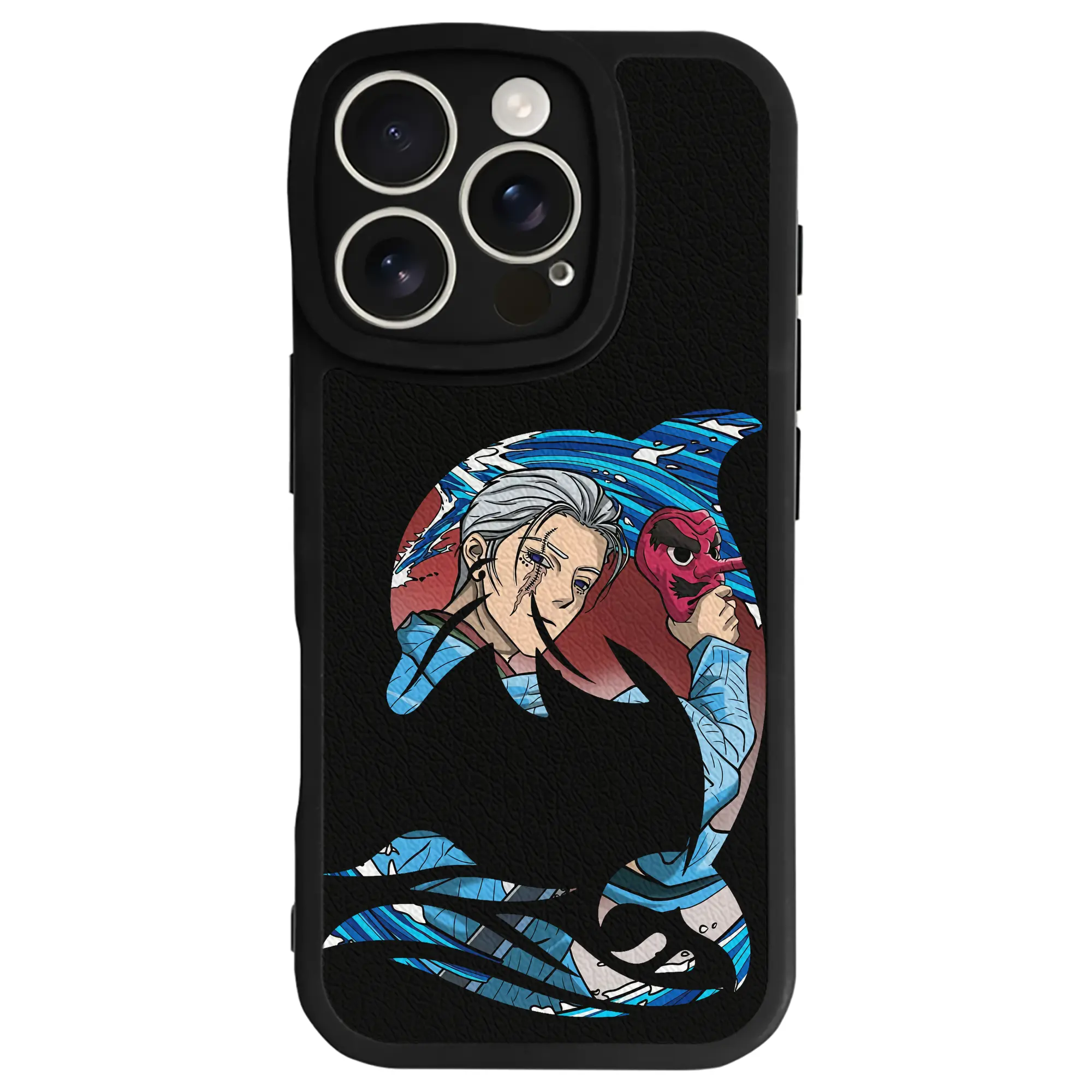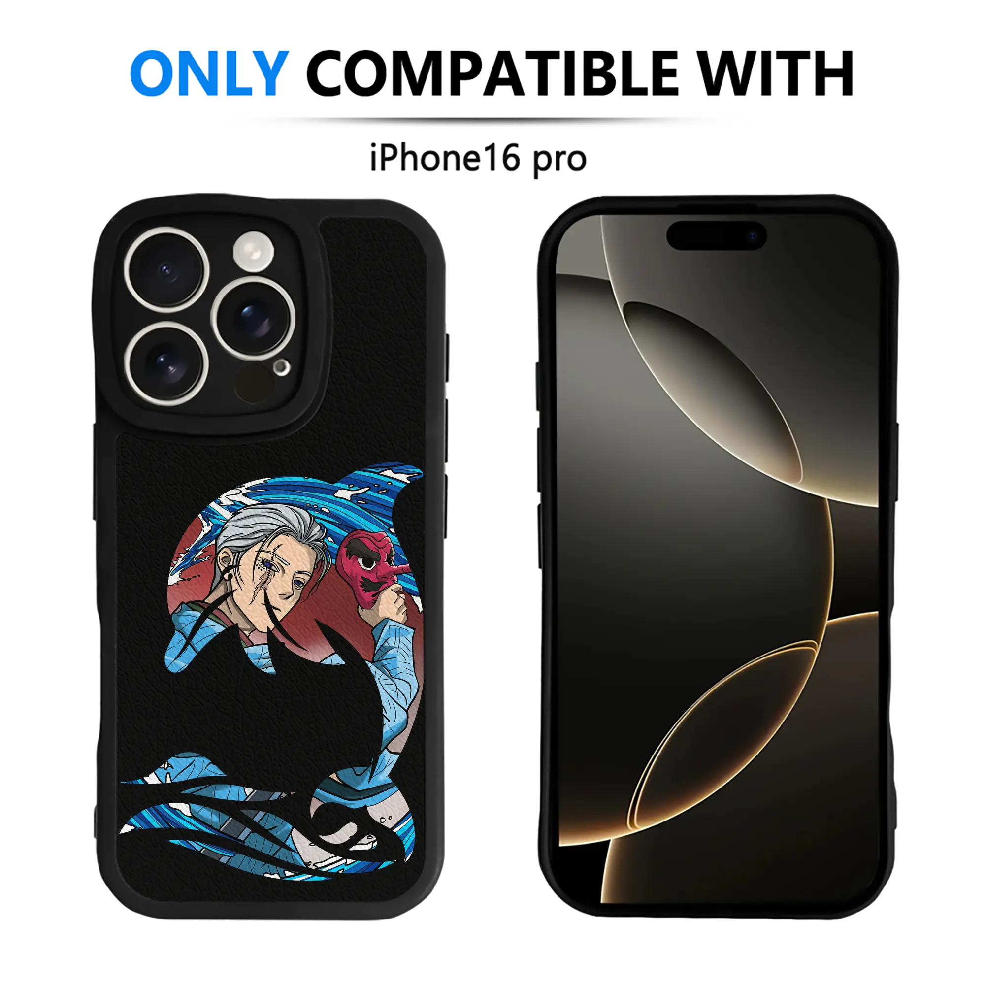 鬼滅の刃 グッズ,鱗滝 左近次 - IPhone 16シリーズ対応 ・ シリコンスマホケース ・ レザー調 ・ 高精度フィット ・ 耐衝撃 ・ ワイヤレス充電対応 ・ 精密カット