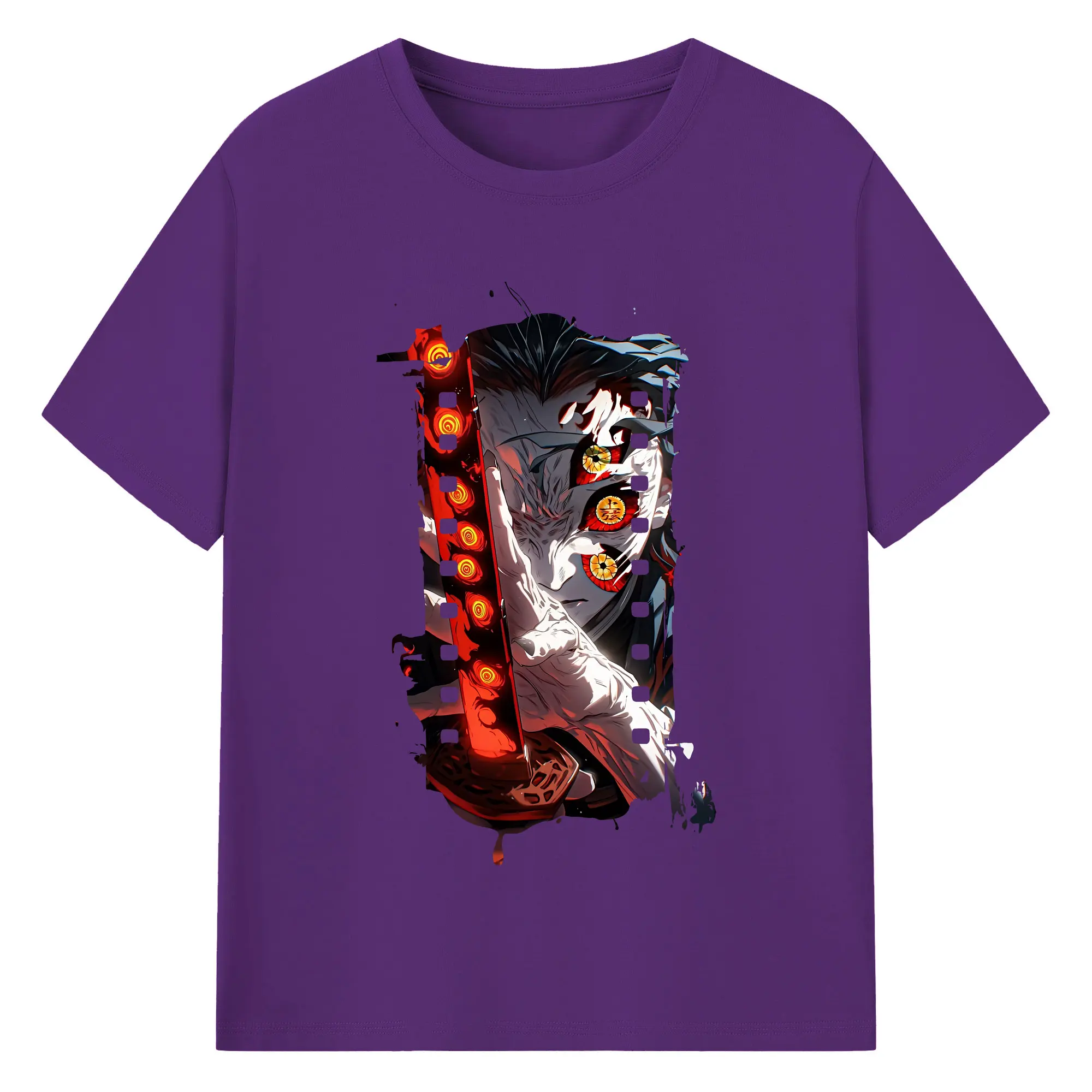 鬼滅の刃 グッズ,黒死牟 - 綿100% 半袖Tシャツ ・ バックプリント ・ 快適 通気性 ・ 日常使い 散歩 スポーツ用