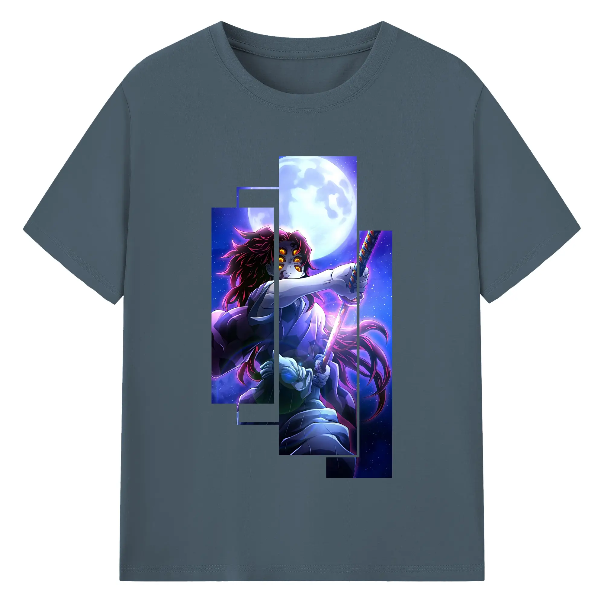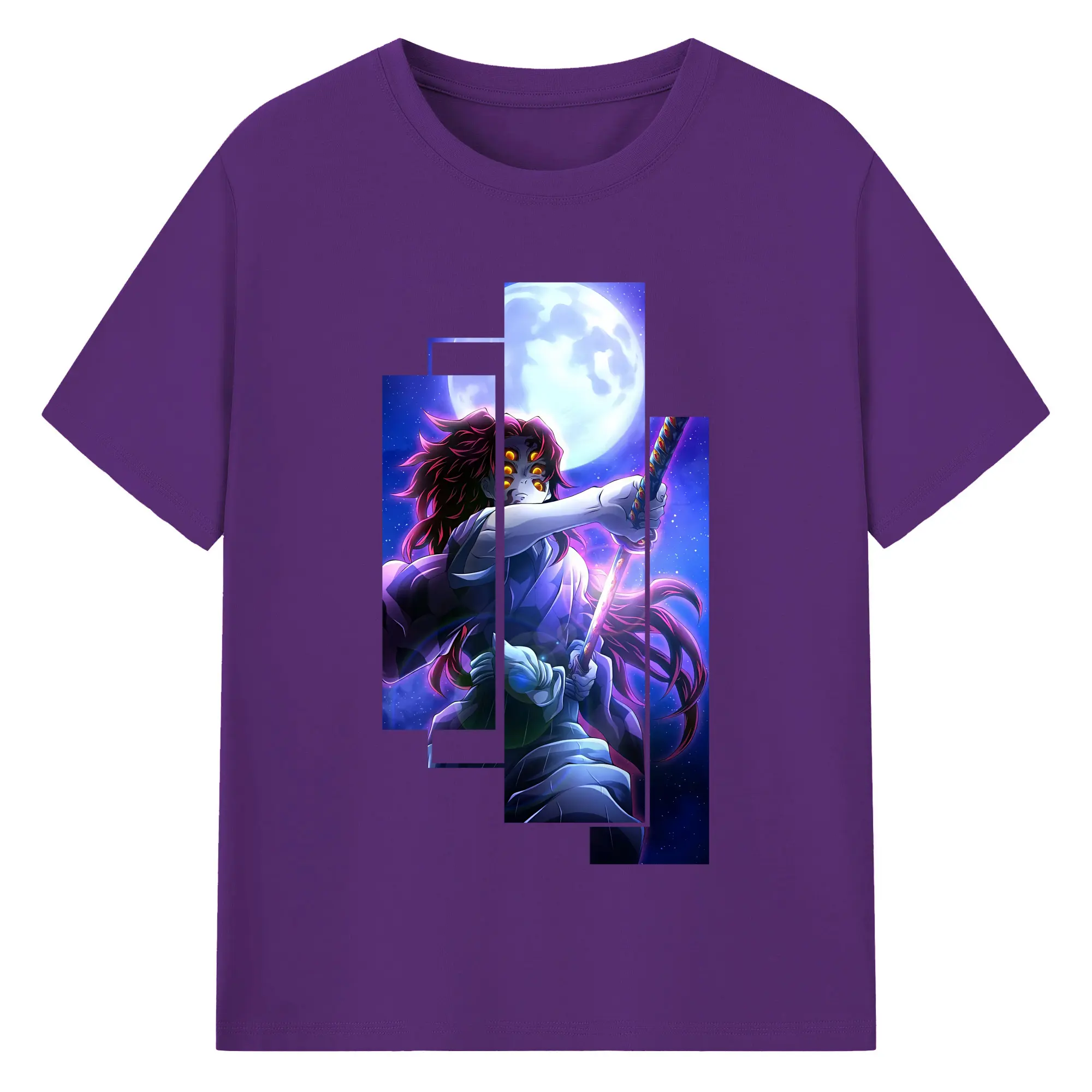 鬼滅の刃 グッズ,黒死牟 - 綿100% 半袖Tシャツ ・ バックプリント ・ 快適 通気性 ・ 日常使い 散歩 スポーツ用