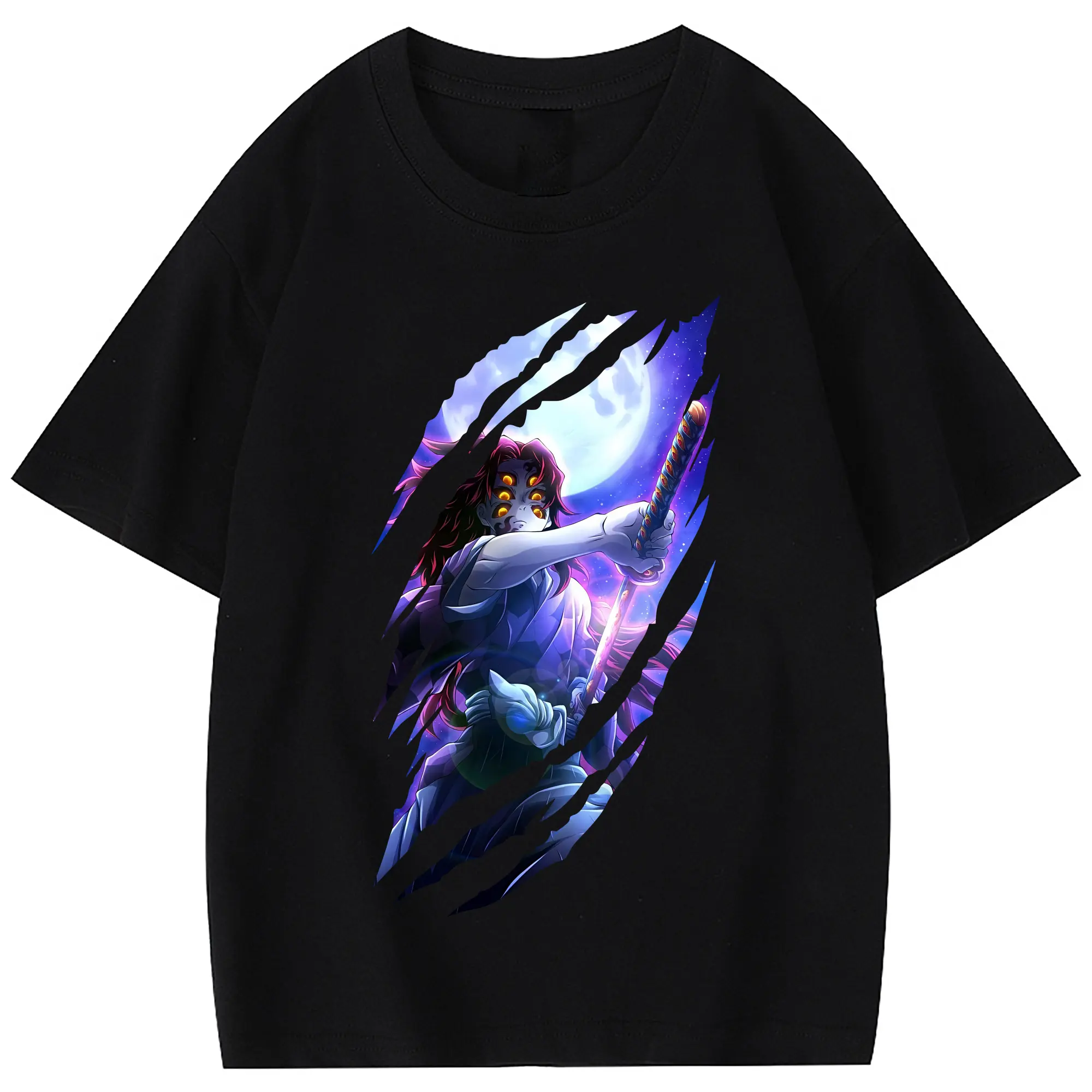 鬼滅の刃 グッズ,黒死牟 - 綿100% 半袖Tシャツ ・ フロントプリント ・ 快適 通気性 ・ 日常使い 散歩 スポーツ用