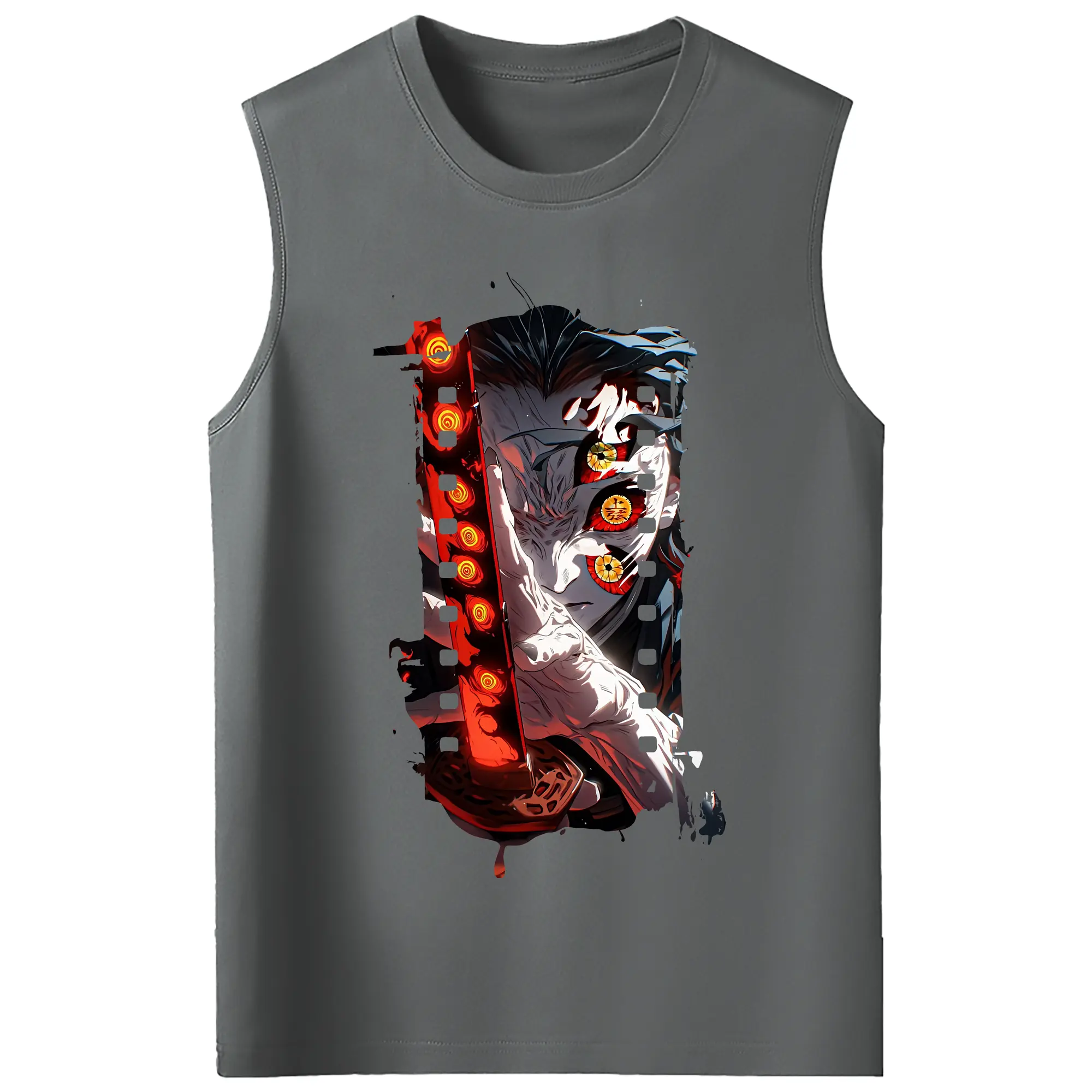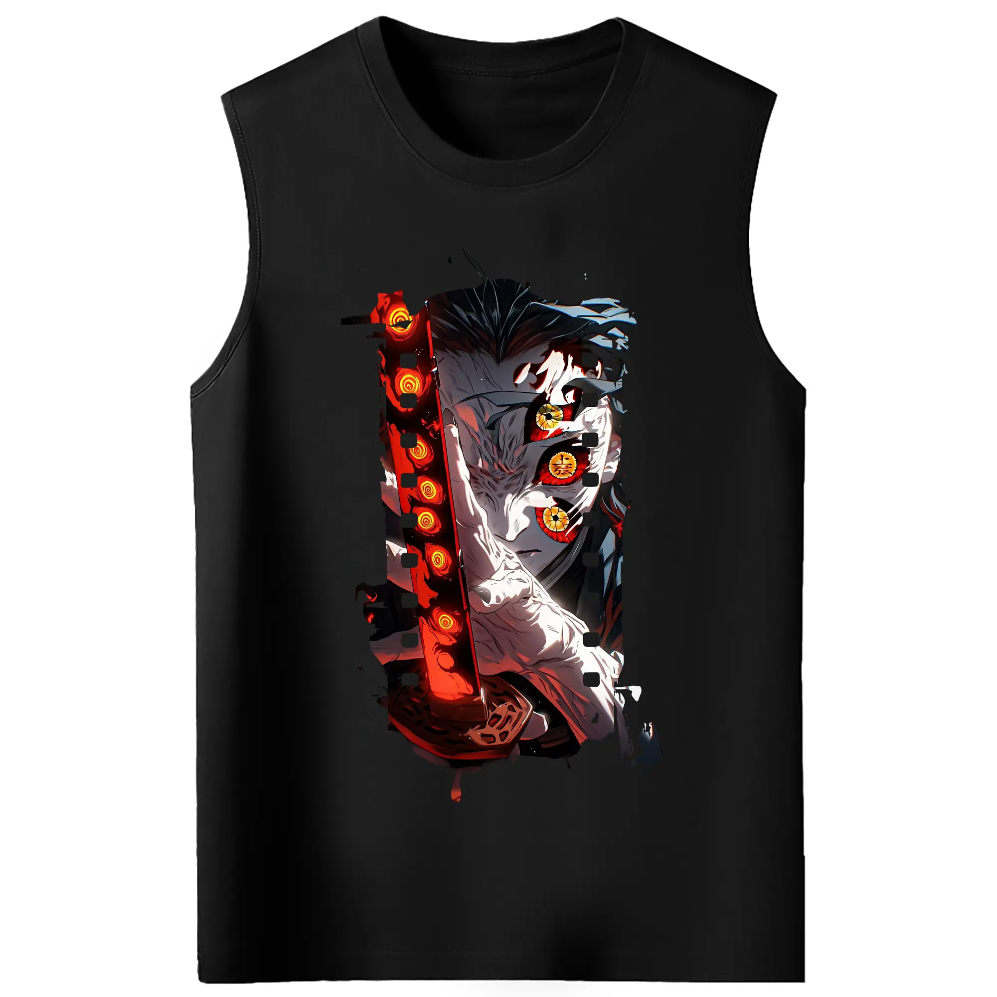 鬼滅の刃 グッズ,黒死牟 - コットン100% タンクトップ ・ フロントプリント ・ タイトフィット ・ 快適 通気性 ・ スポーツ カジュアル 散歩用