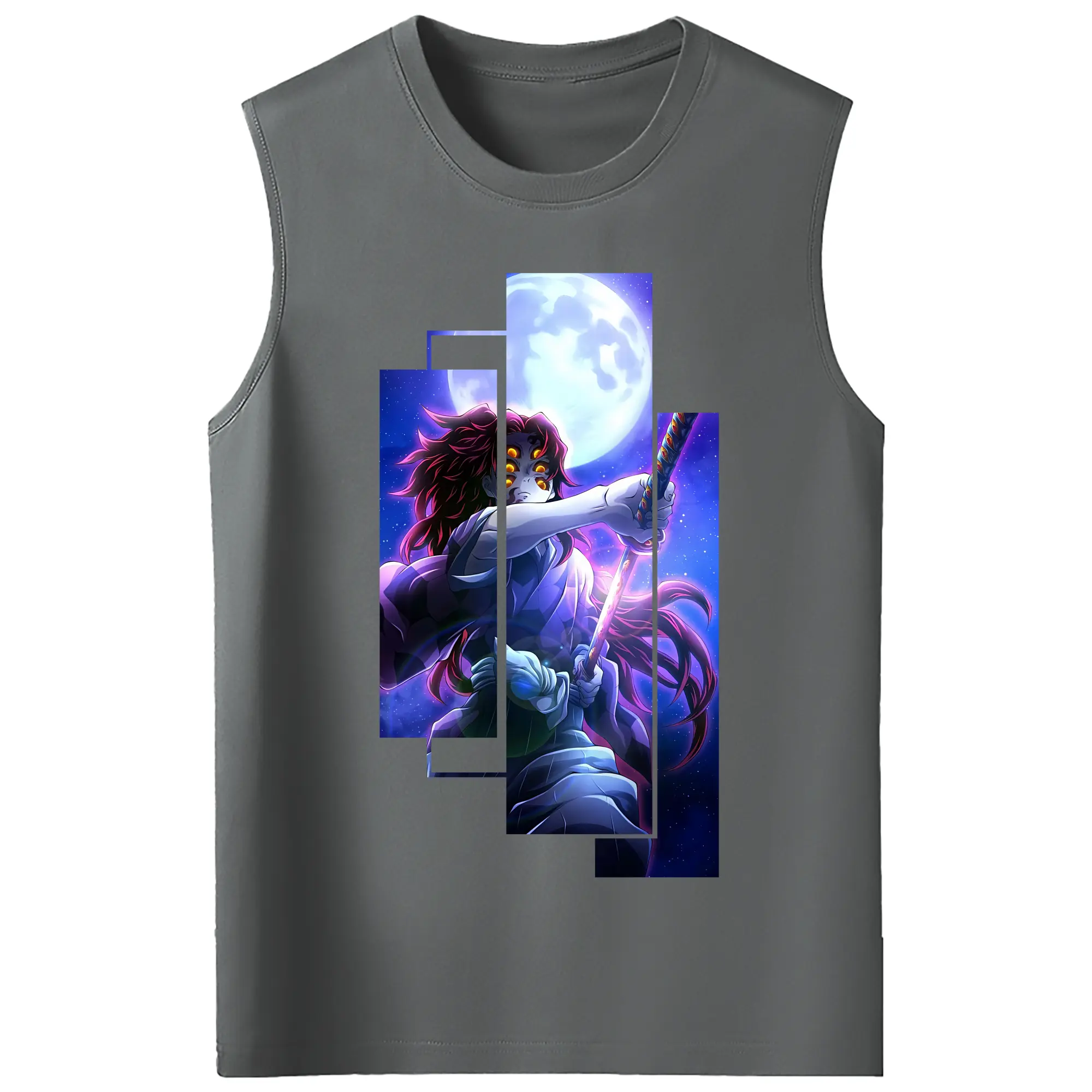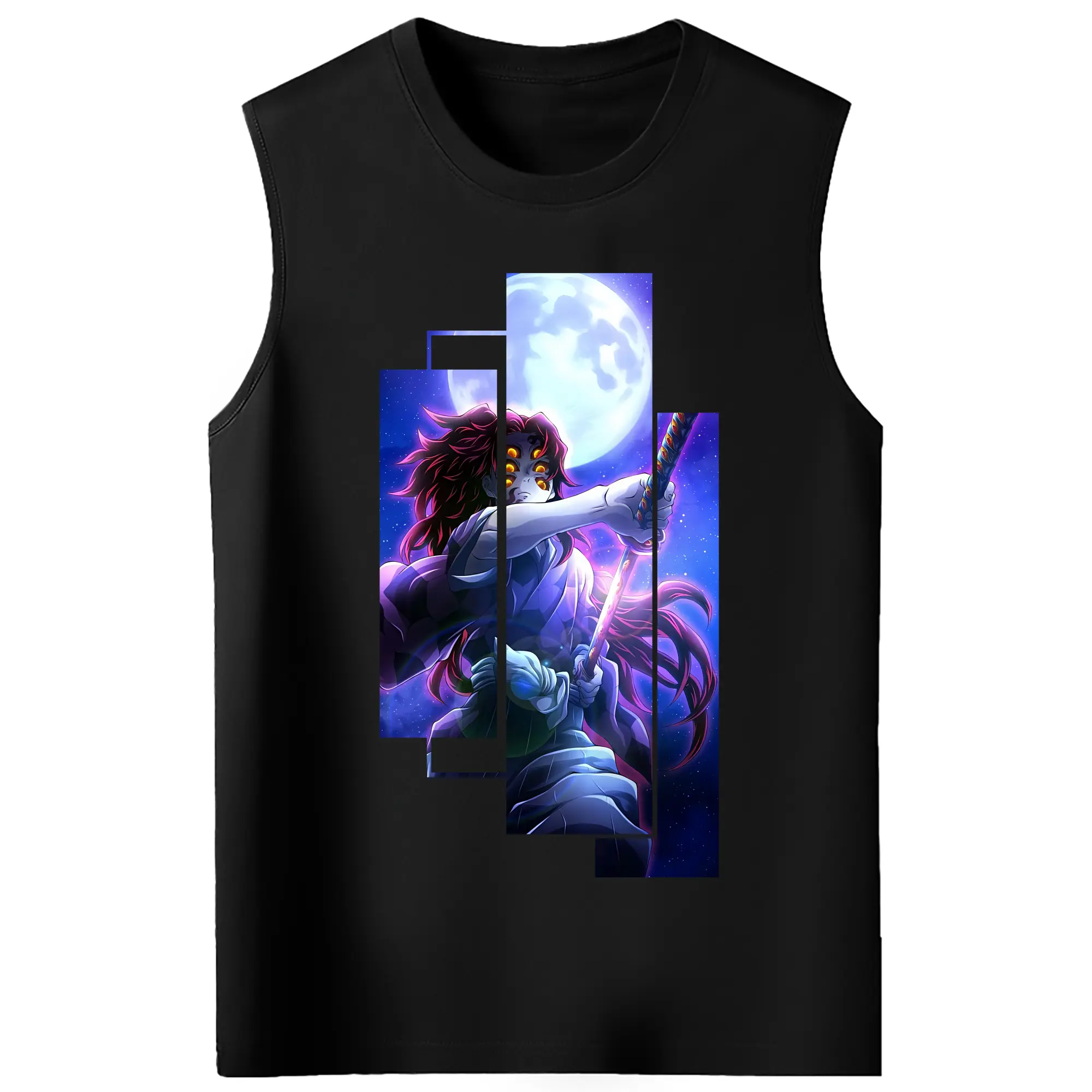 鬼滅の刃 グッズ,黒死牟 - コットン100% タンクトップ ・ フロントプリント ・ タイトフィット ・ 快適 通気性 ・ スポーツ カジュアル 散歩用