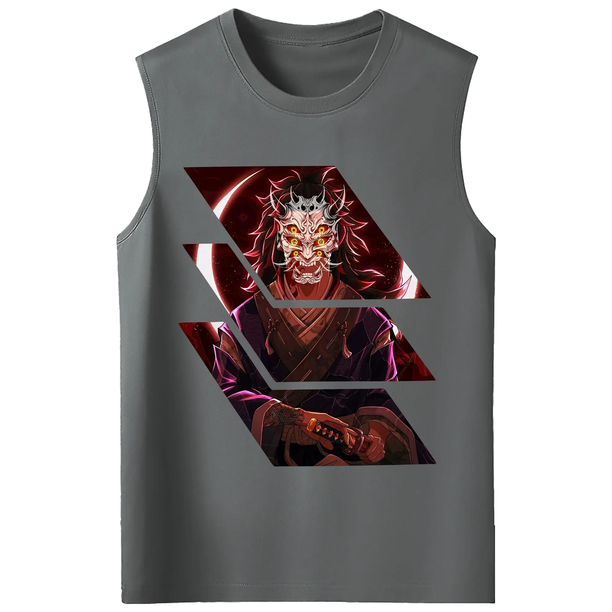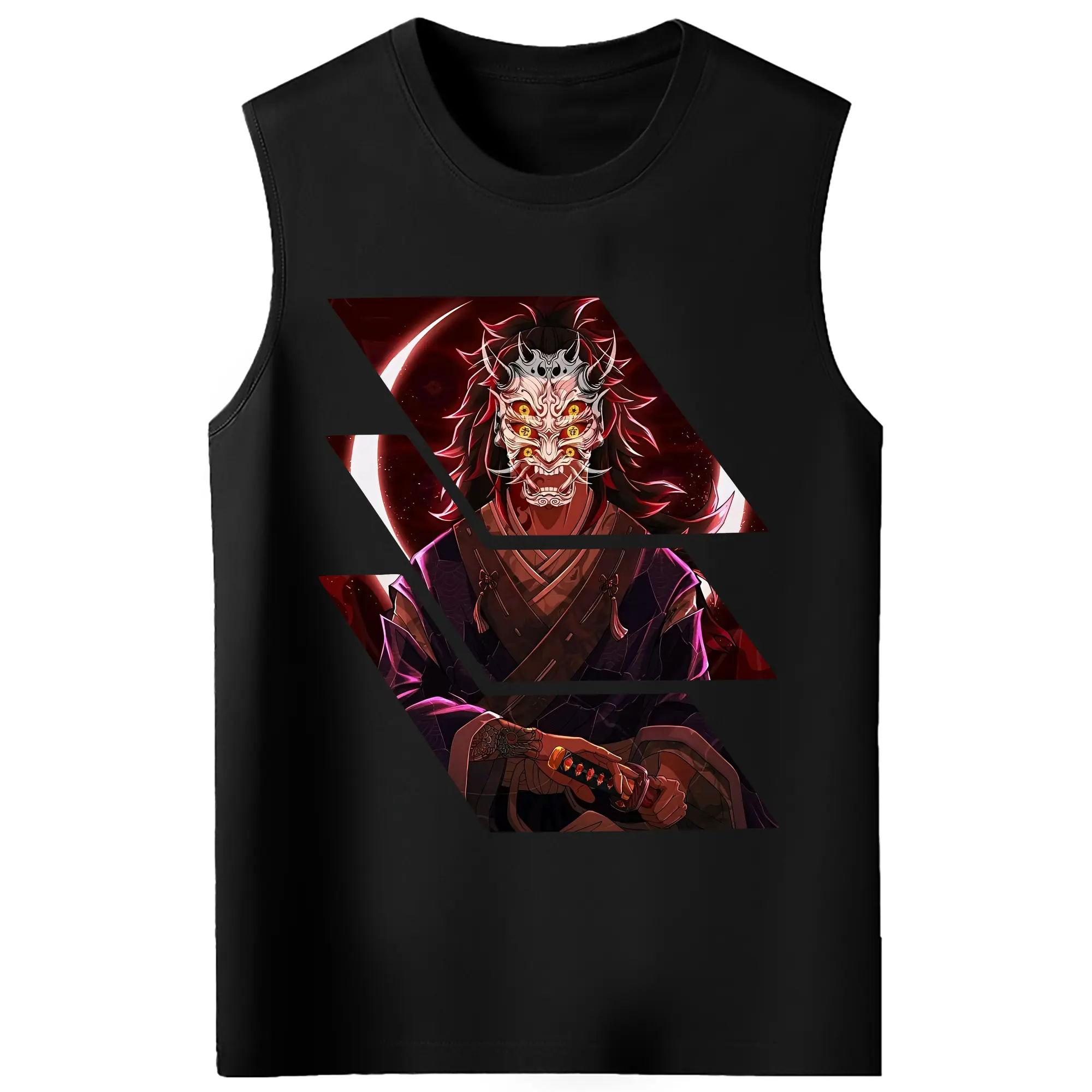 鬼滅の刃 グッズ,黒死牟 - コットン100% タンクトップ ・ フロントプリント ・ タイトフィット ・ 快適 通気性 ・ スポーツ カジュアル 散歩用
