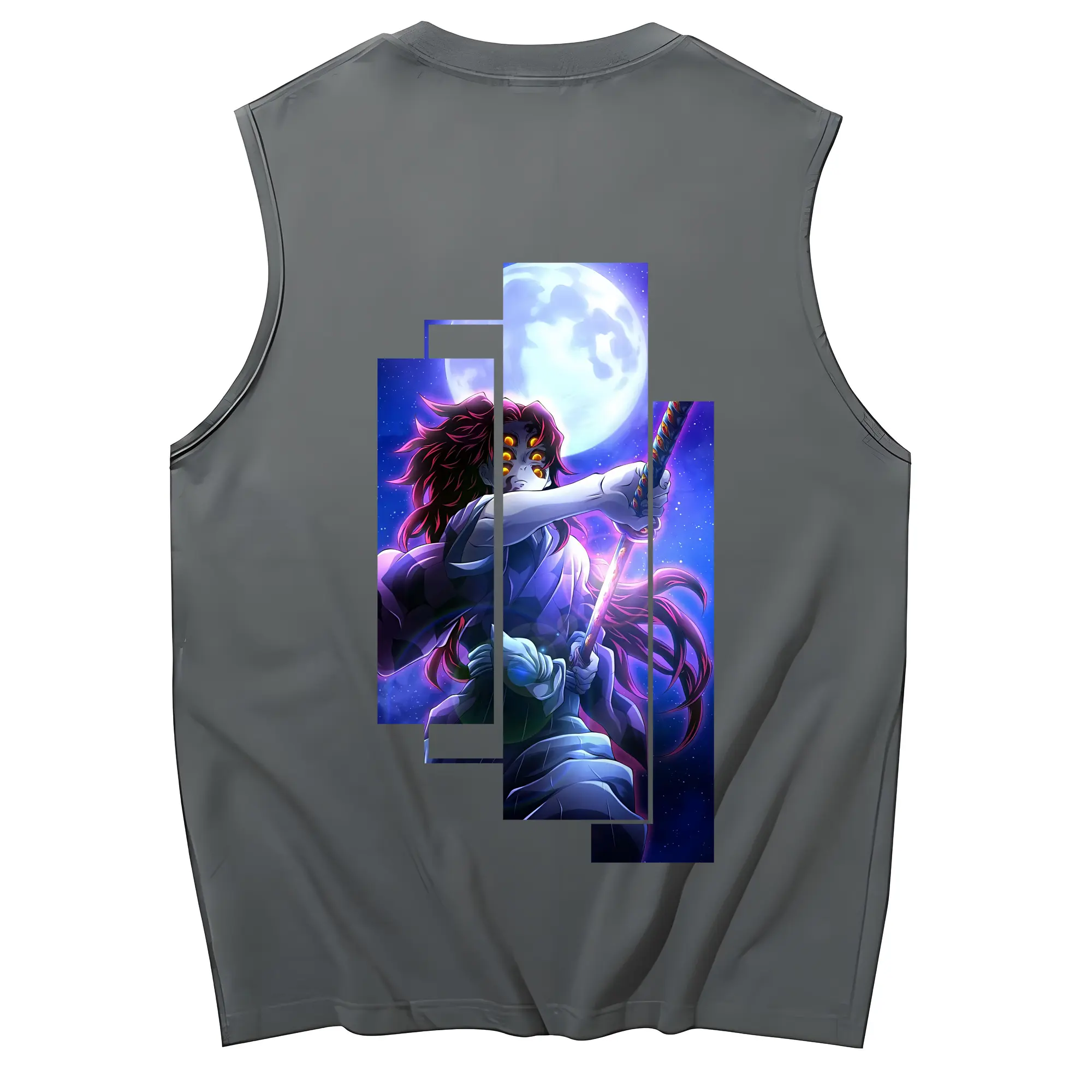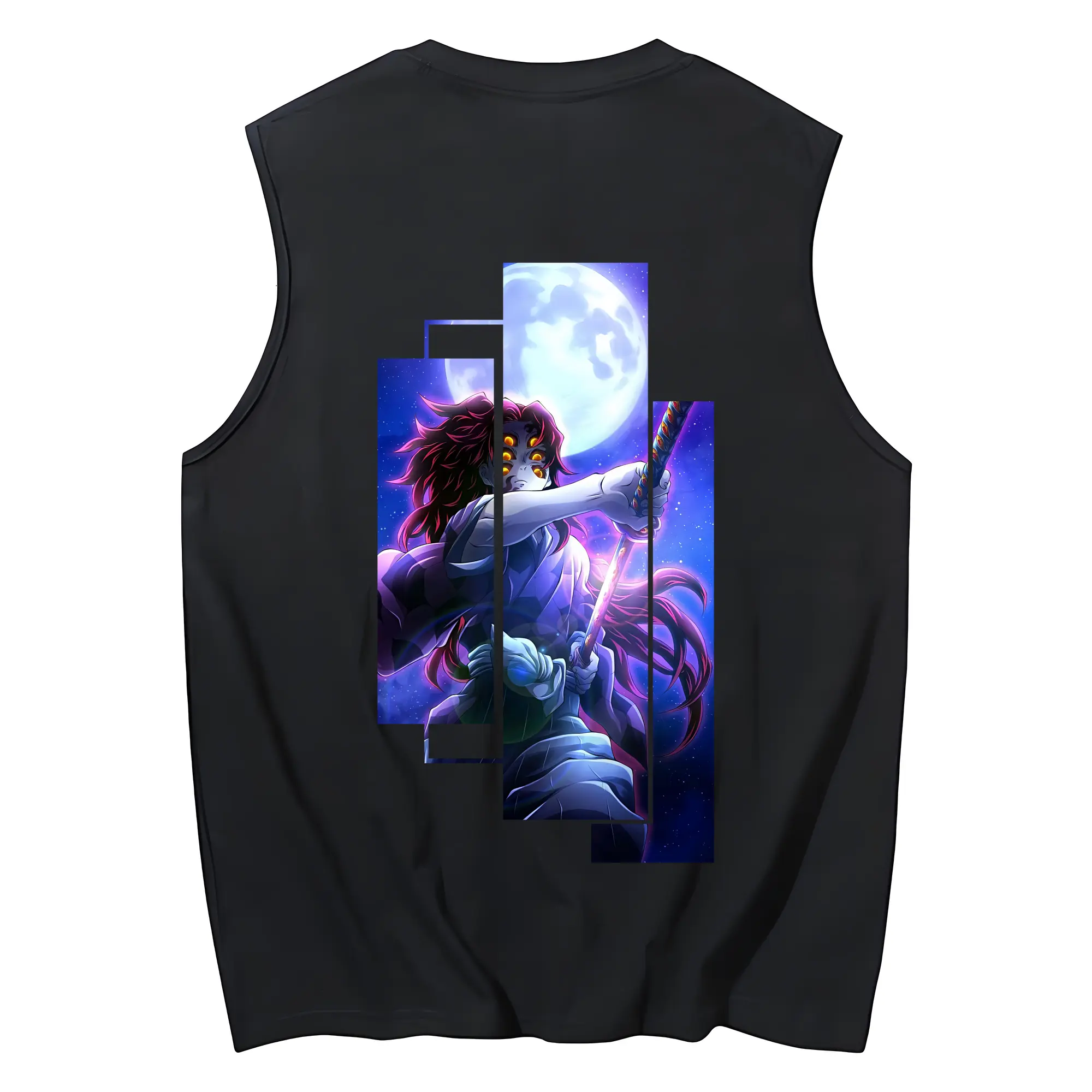 鬼滅の刃 グッズ,黒死牟 - コットン100% タンクトップ ・ 背面プリント ・ タイトシルエット ・ 快適 通気性 ・ スポーツ カジュアル 散歩用