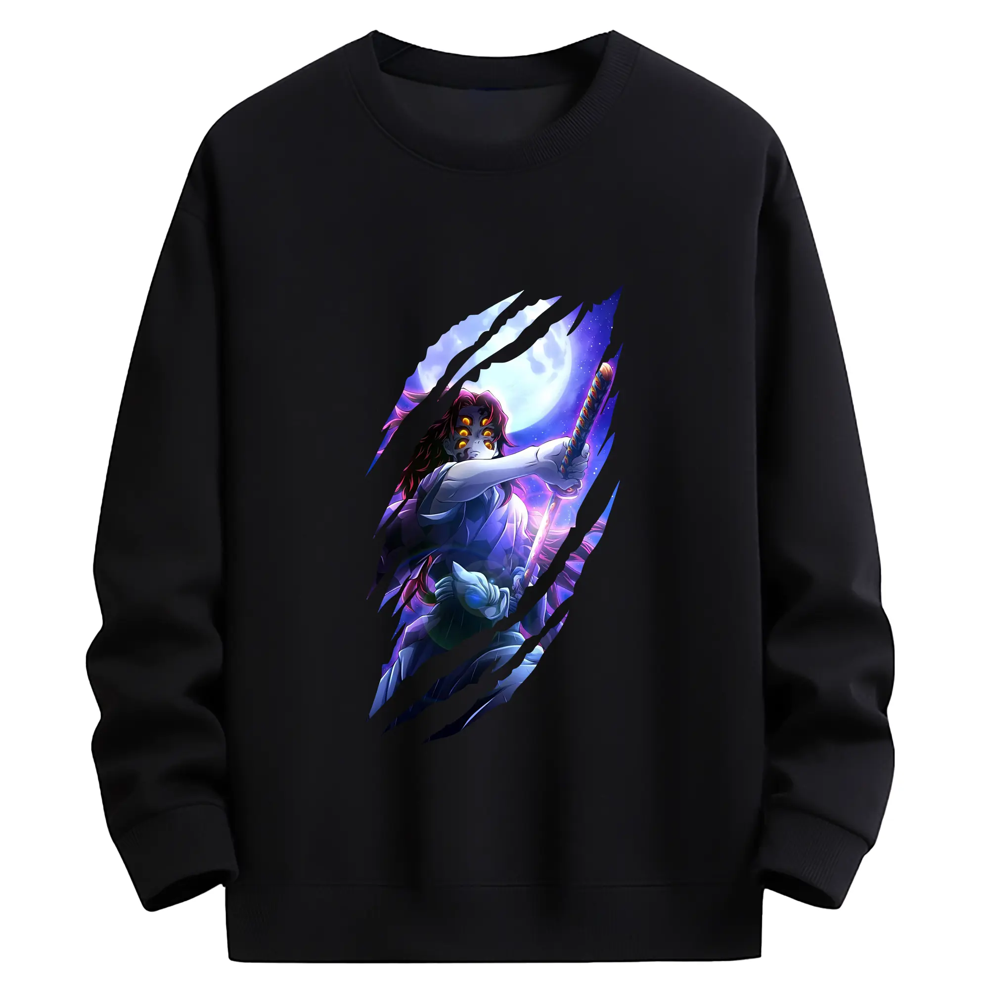 鬼滅の刃 グッズ,黒死牟 - 高品質 クルーネック スウェット ・ コットン59% ポリエステル41% ・ ユニセックス 長袖 トレーナー ・ カジュアル デイリー スポーツ 散歩用
