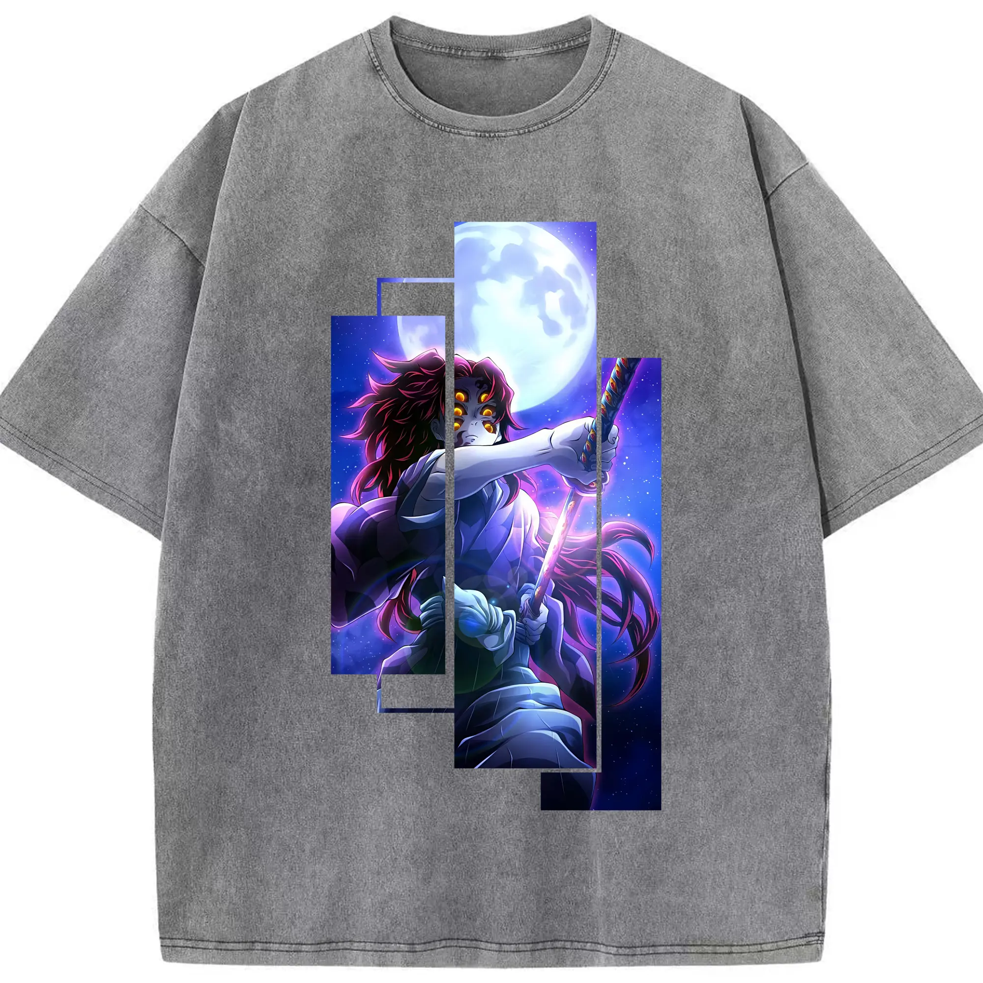 鬼滅の刃 グッズ,黒死牟 - 綿100% 半袖Tシャツ ・ フロントプリント ・ 快適 通気性 ・ 日常使い 散歩 スポーツ用