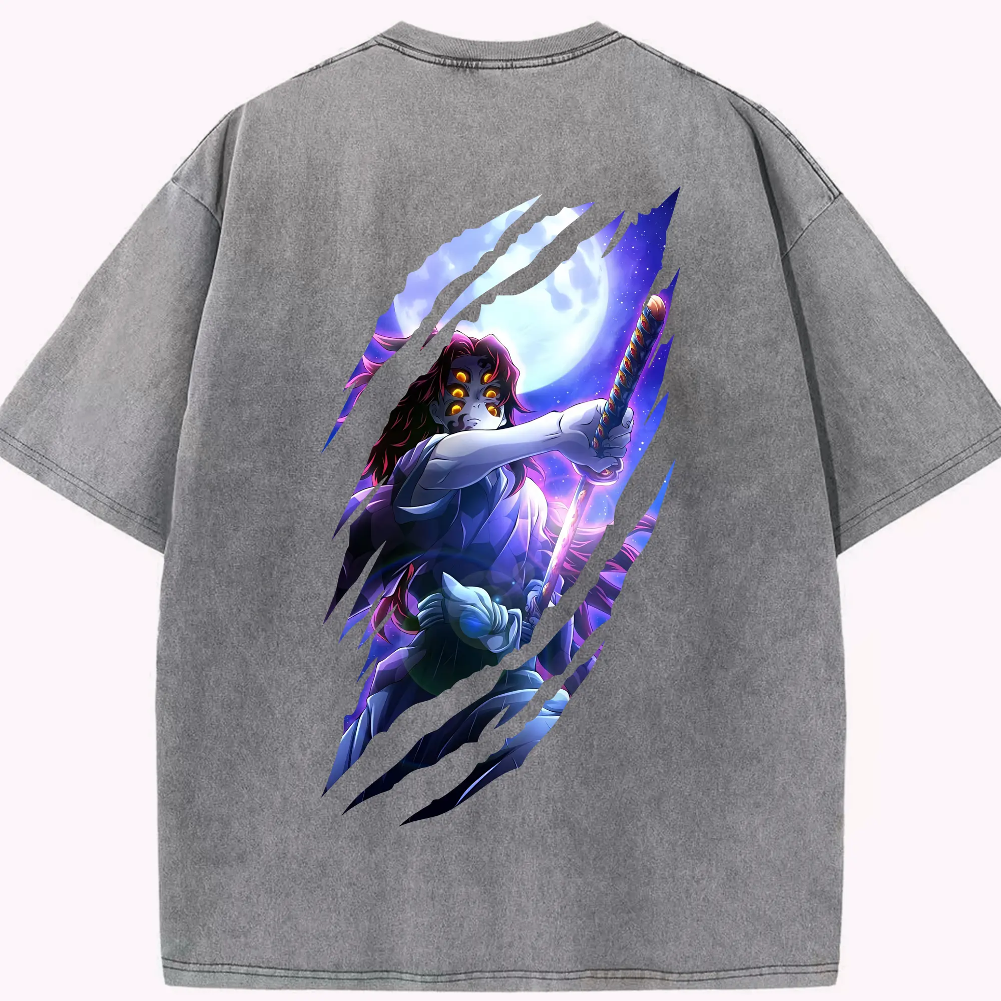 鬼滅の刃 グッズ,黒死牟 - 綿100% 半袖Tシャツ ・ フロントプリント ・ 快適 通気性 ・ 日常使い 散歩 スポーツ用