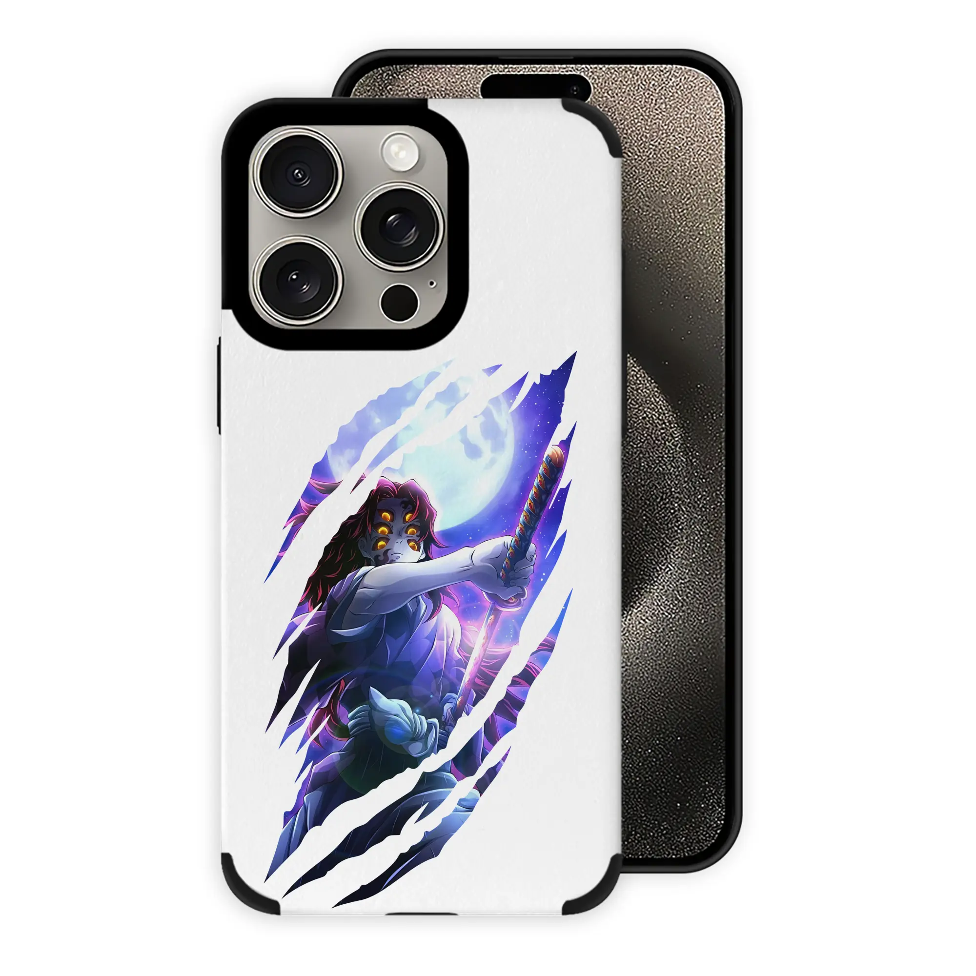 鬼滅の刃 グッズ,黒死牟 - IPhone15ProMax対応 ・ PUレザースマホケース ・ 耐衝撃 ・ 黄変防止 ・ 360度全面保護 ・ 柔らか手触り ・ 3D立体ボタン