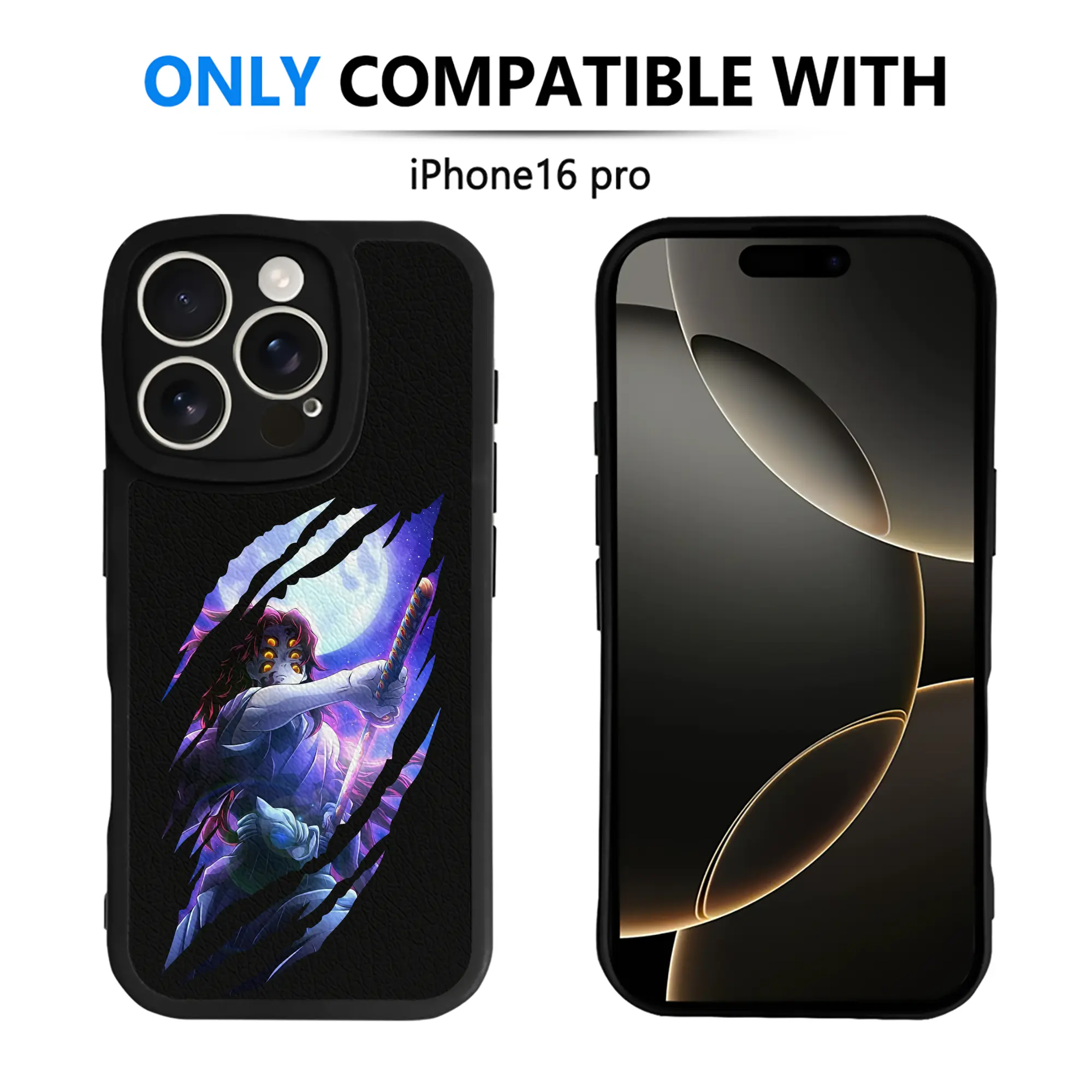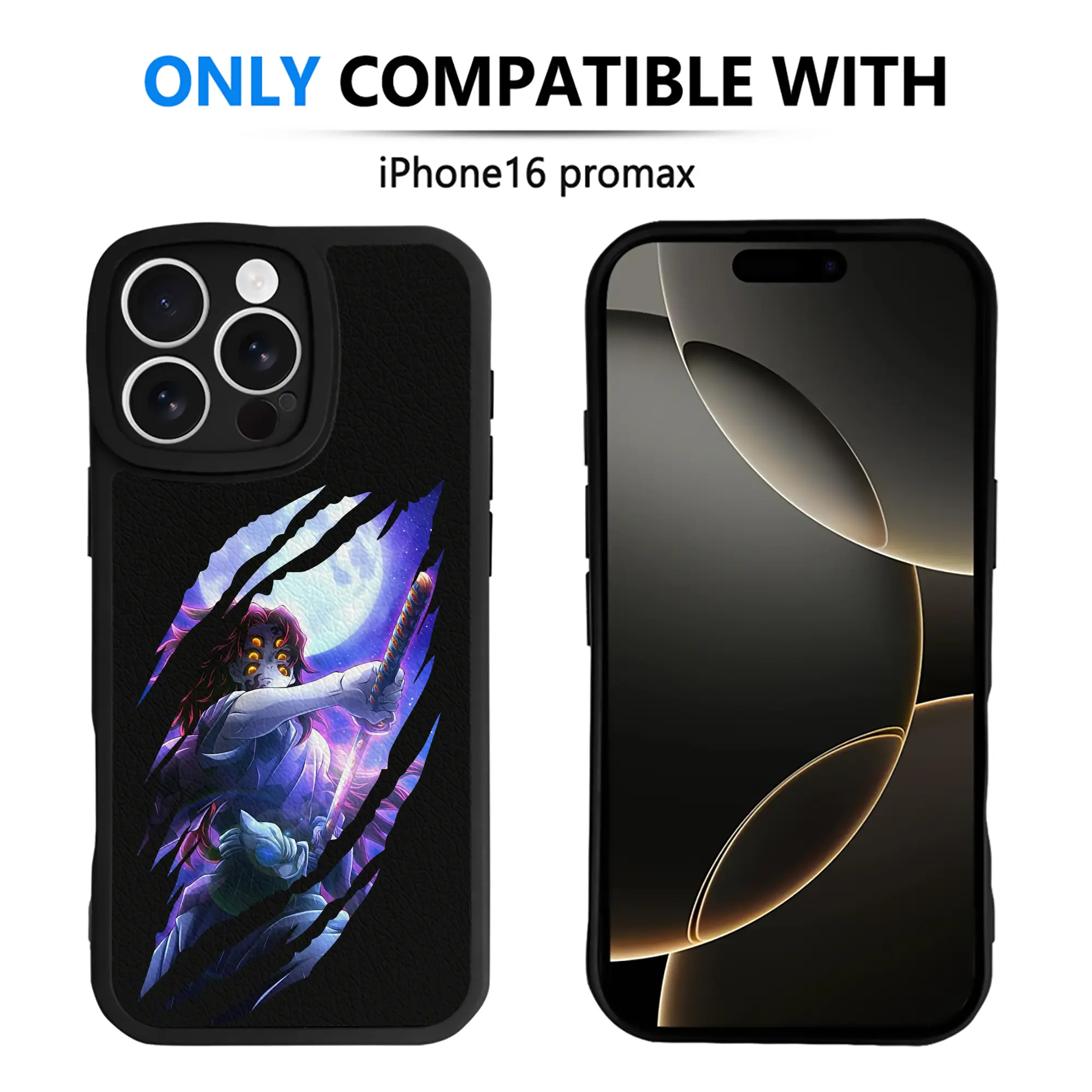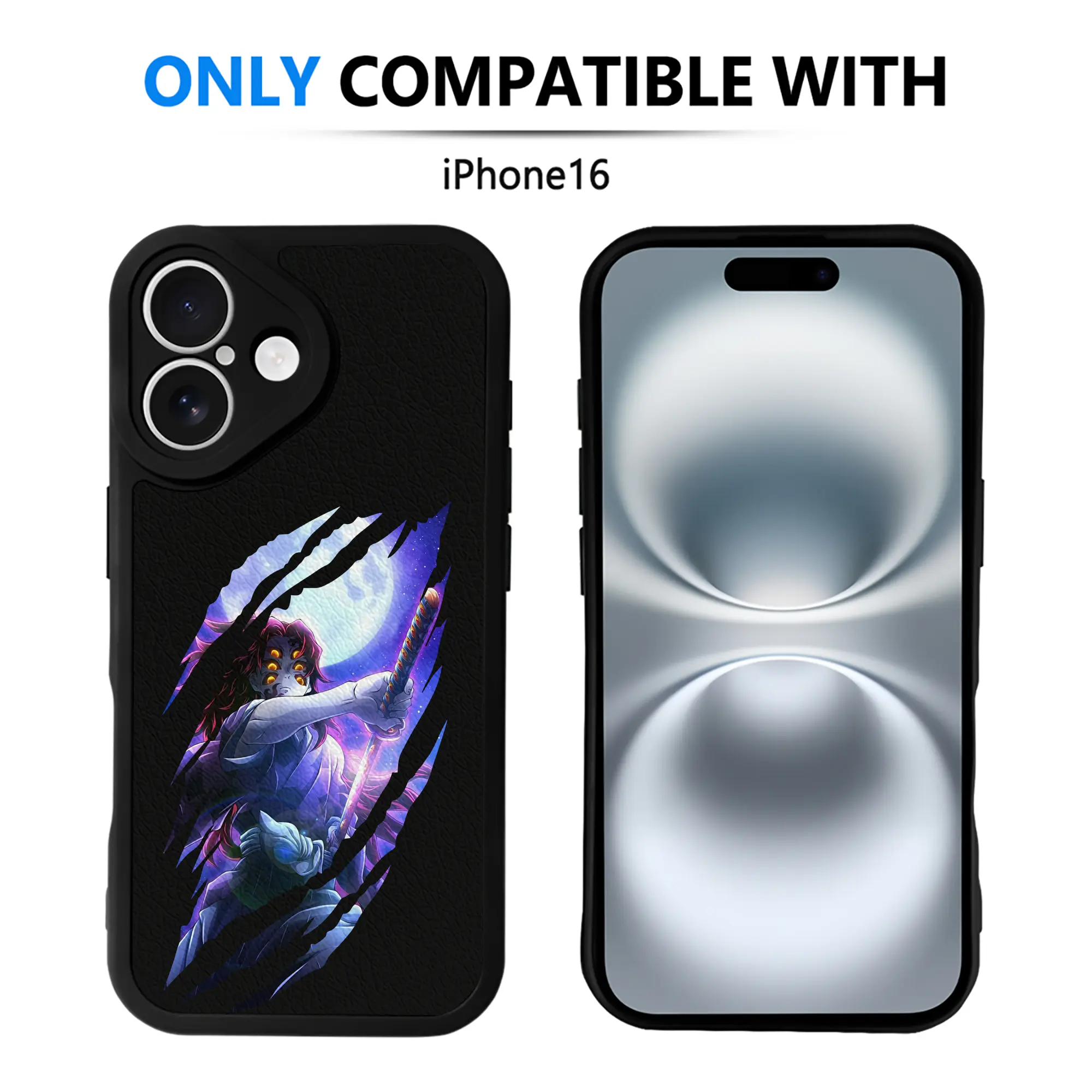 鬼滅の刃 グッズ,黒死牟 - IPhone 16シリーズ対応 ・ シリコンスマホケース ・ レザー調 ・ 高精度フィット ・ 耐衝撃 ・ ワイヤレス充電対応 ・ 精密カット