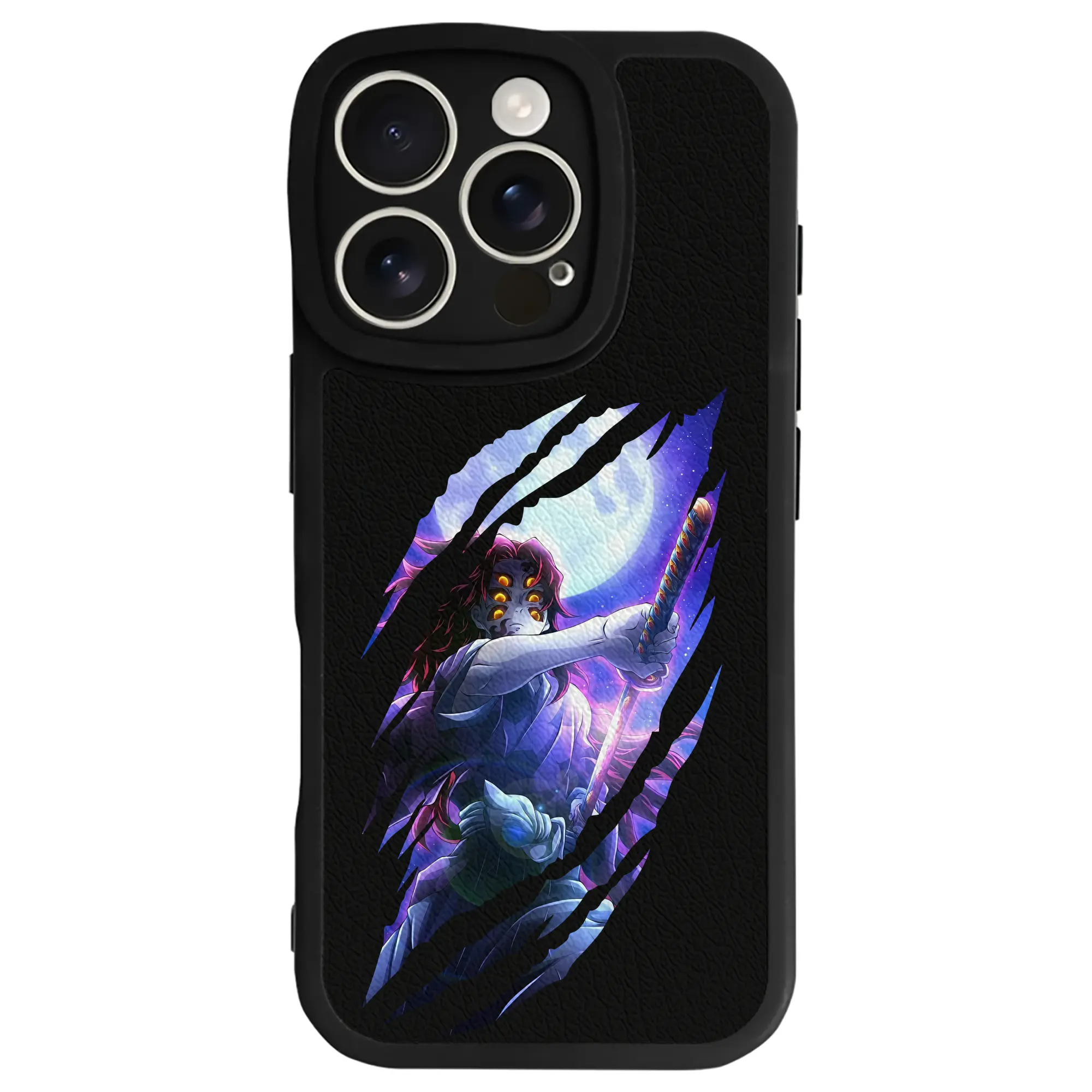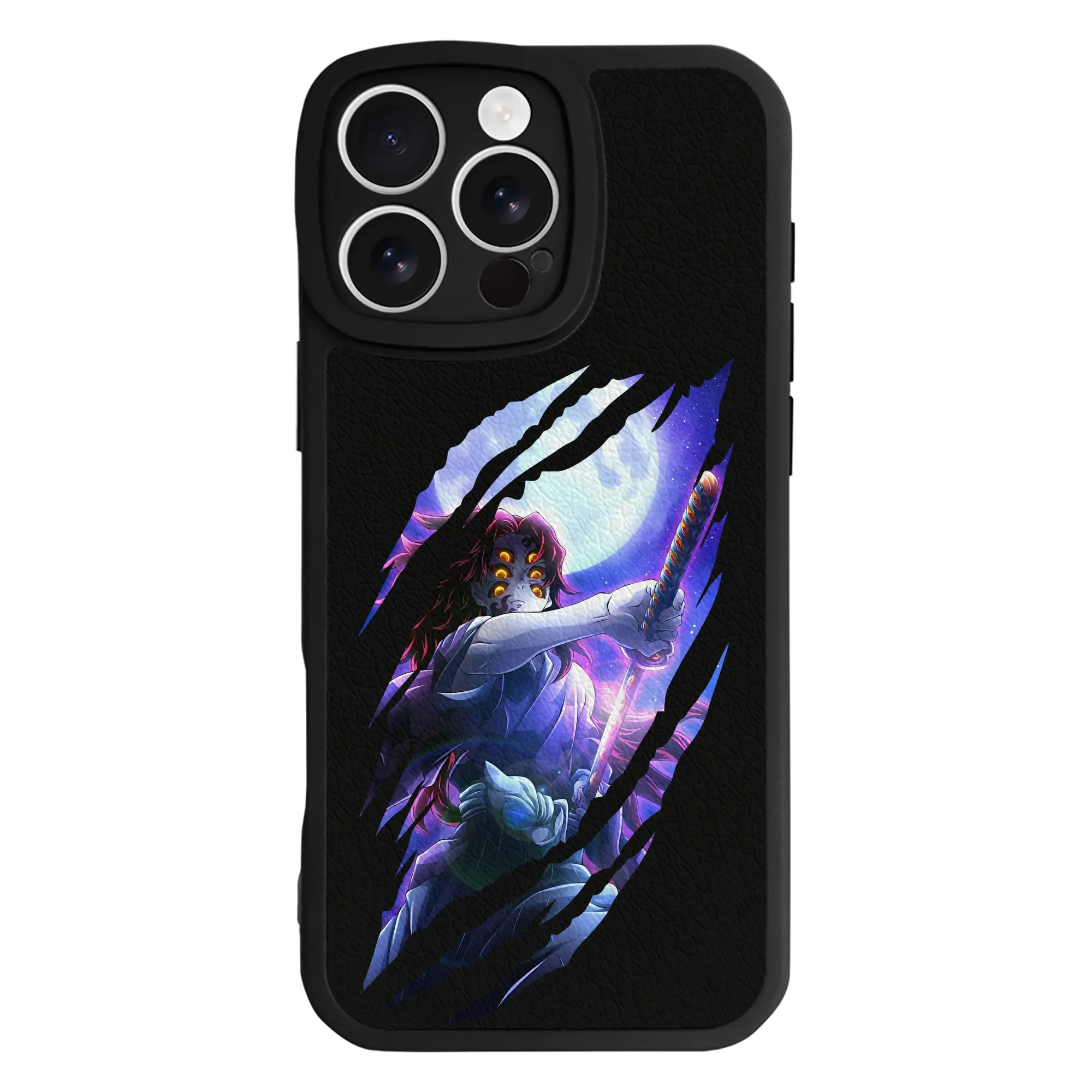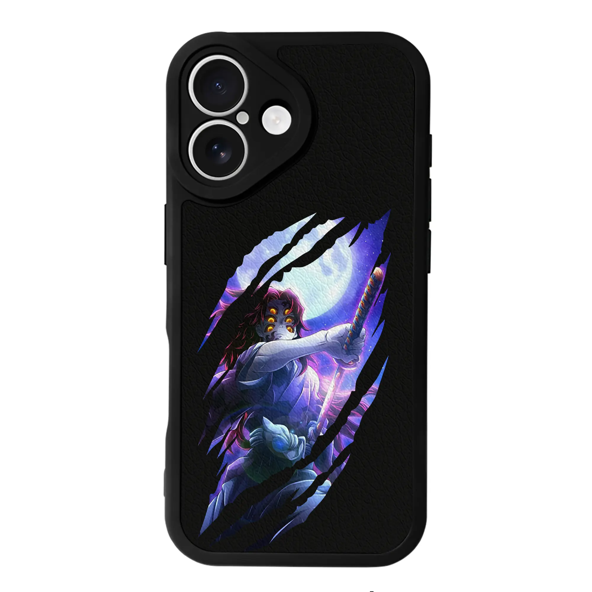 鬼滅の刃 グッズ,黒死牟 - IPhone 16シリーズ対応 ・ シリコンスマホケース ・ レザー調 ・ 高精度フィット ・ 耐衝撃 ・ ワイヤレス充電対応 ・ 精密カット