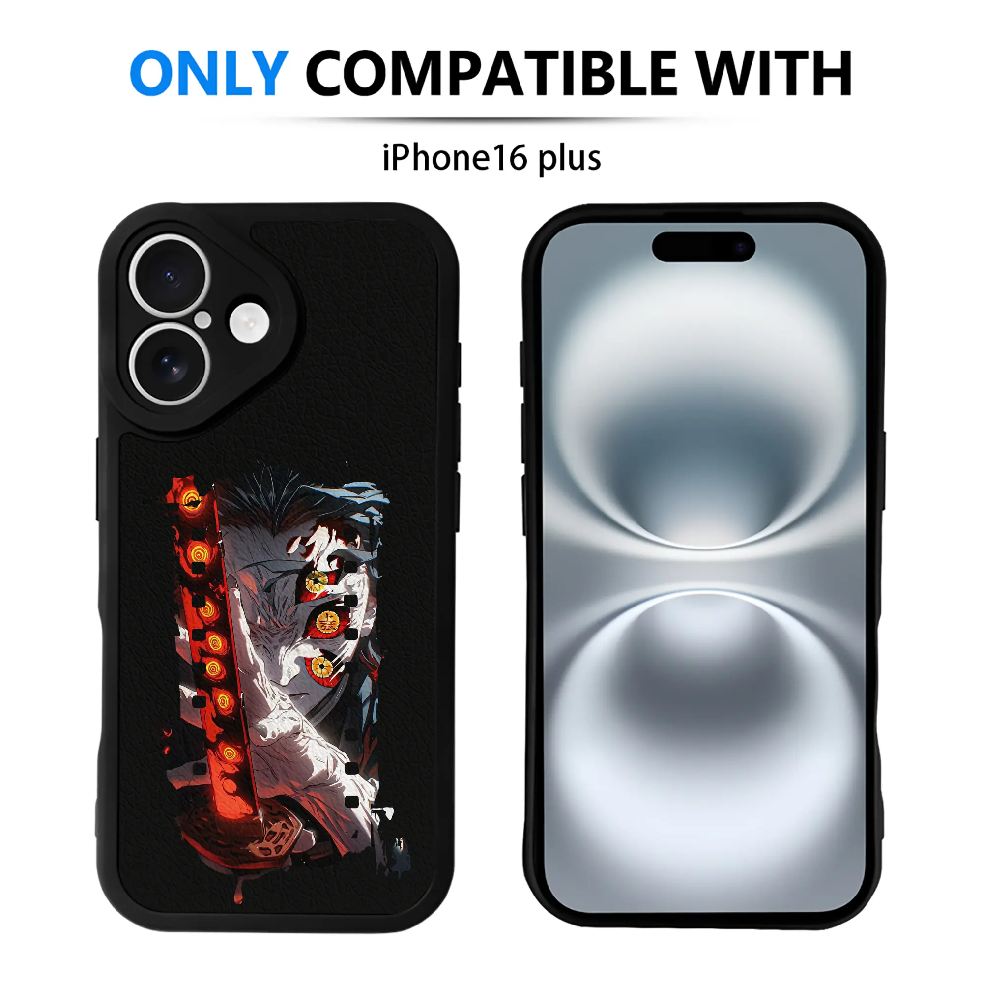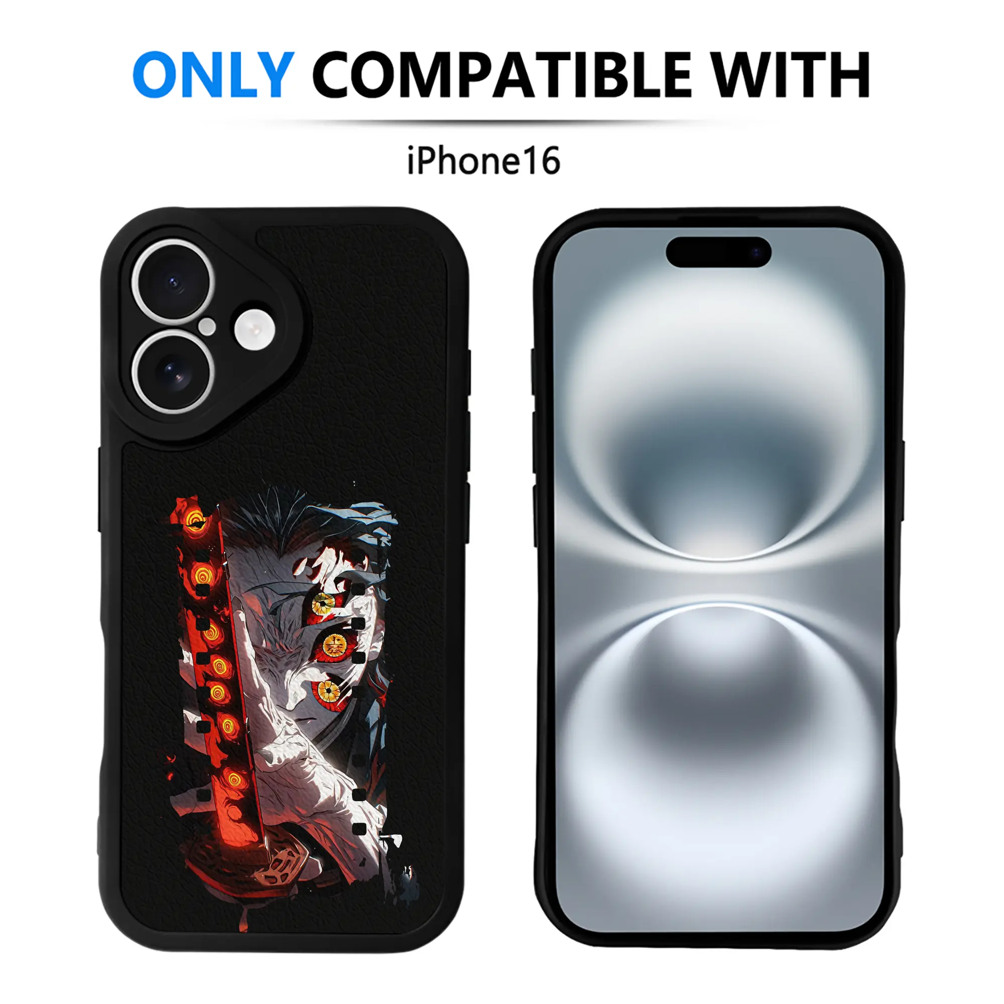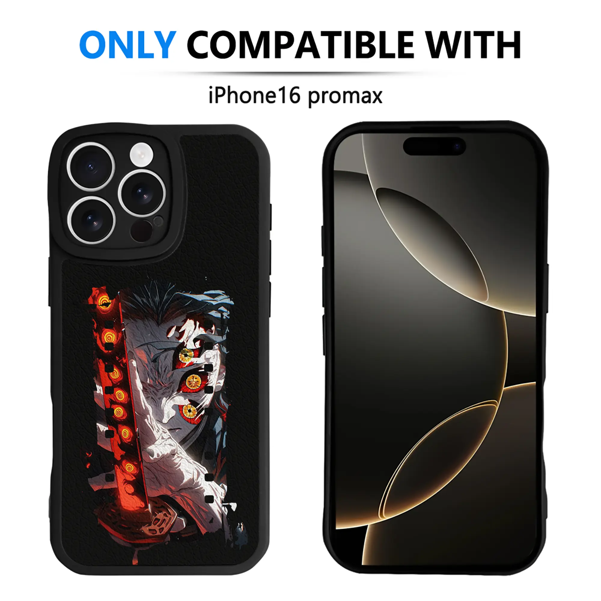 鬼滅の刃 グッズ,黒死牟 - IPhone 16シリーズ対応 ・ シリコンスマホケース ・ レザー調 ・ 高精度フィット ・ 耐衝撃 ・ ワイヤレス充電対応 ・ 精密カット