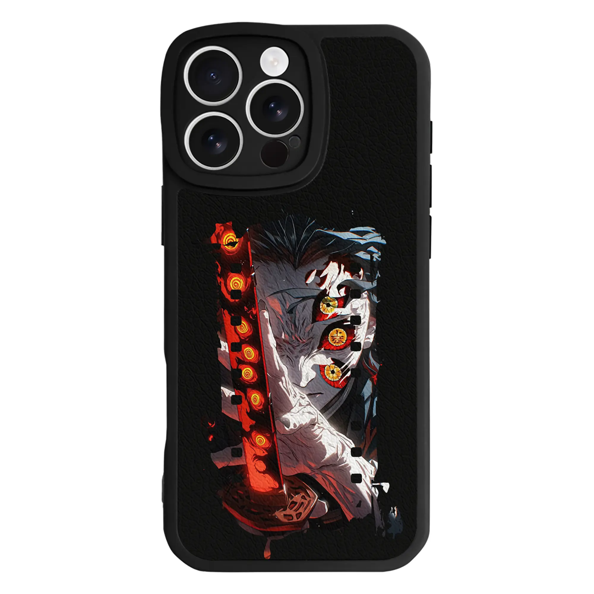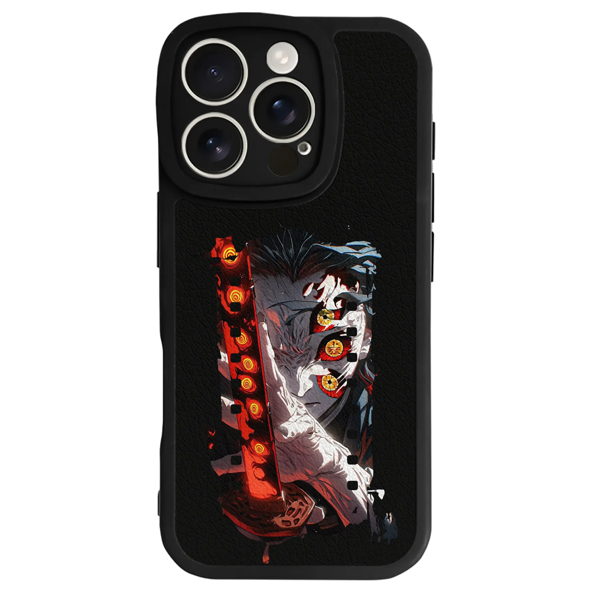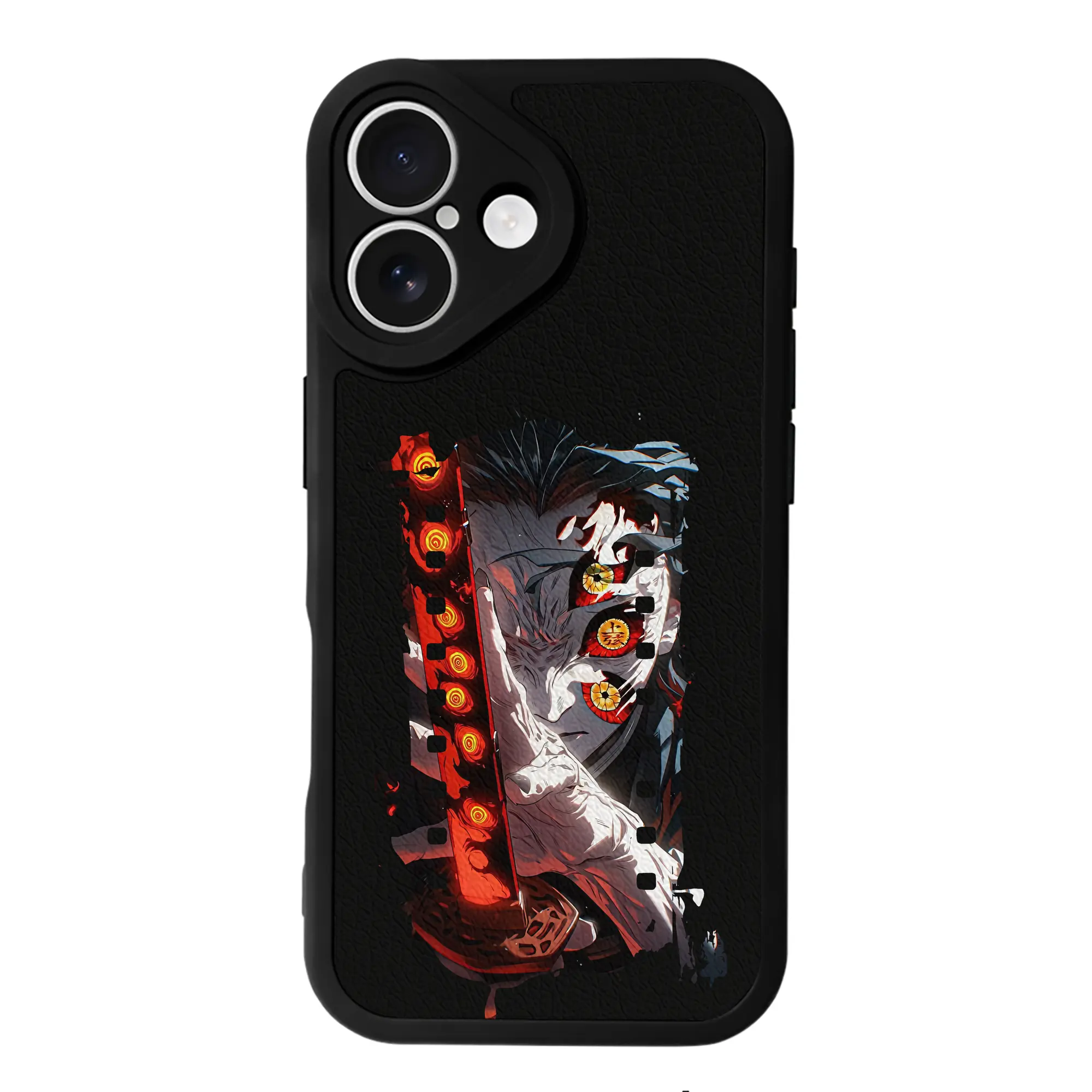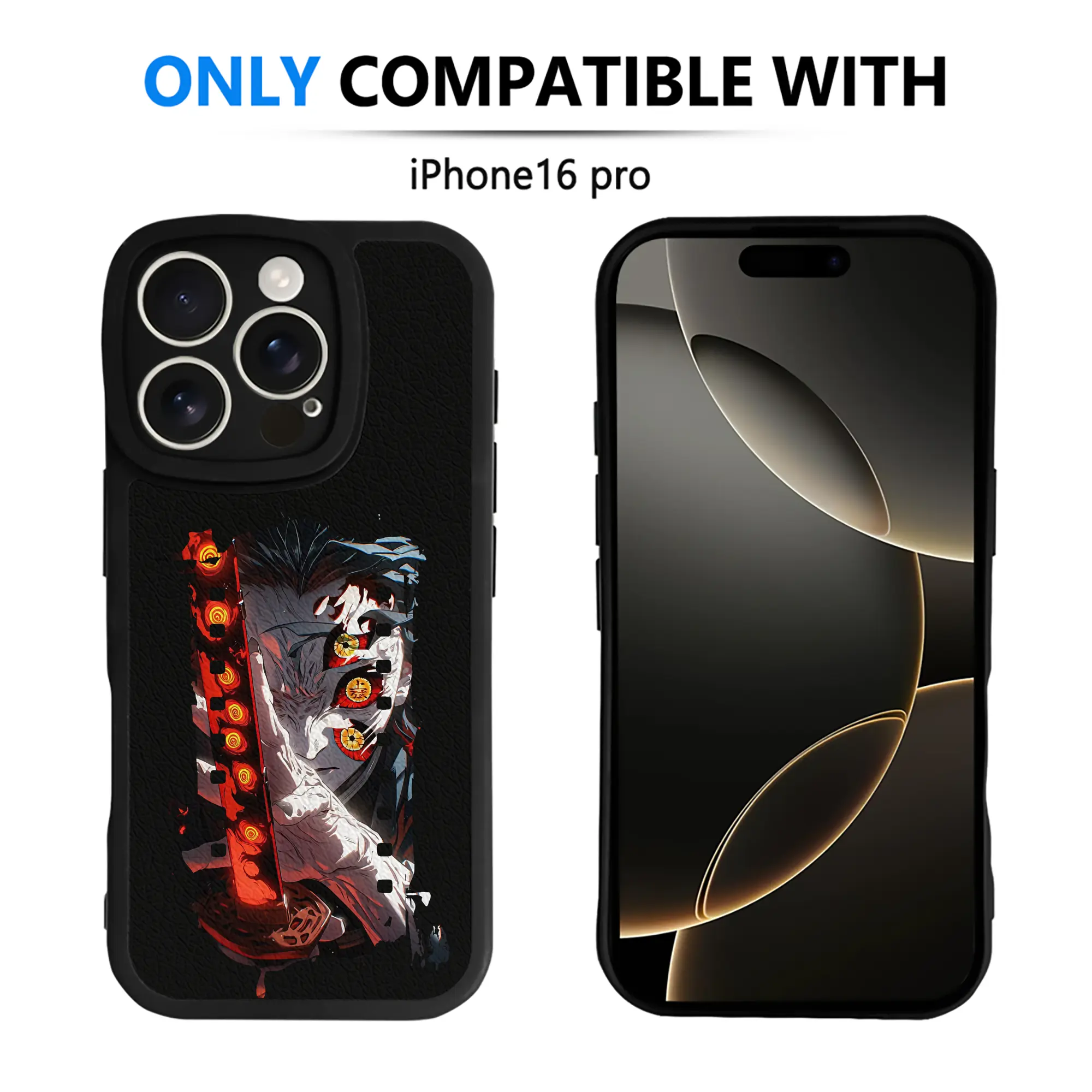 鬼滅の刃 グッズ,黒死牟 - IPhone 16シリーズ対応 ・ シリコンスマホケース ・ レザー調 ・ 高精度フィット ・ 耐衝撃 ・ ワイヤレス充電対応 ・ 精密カット