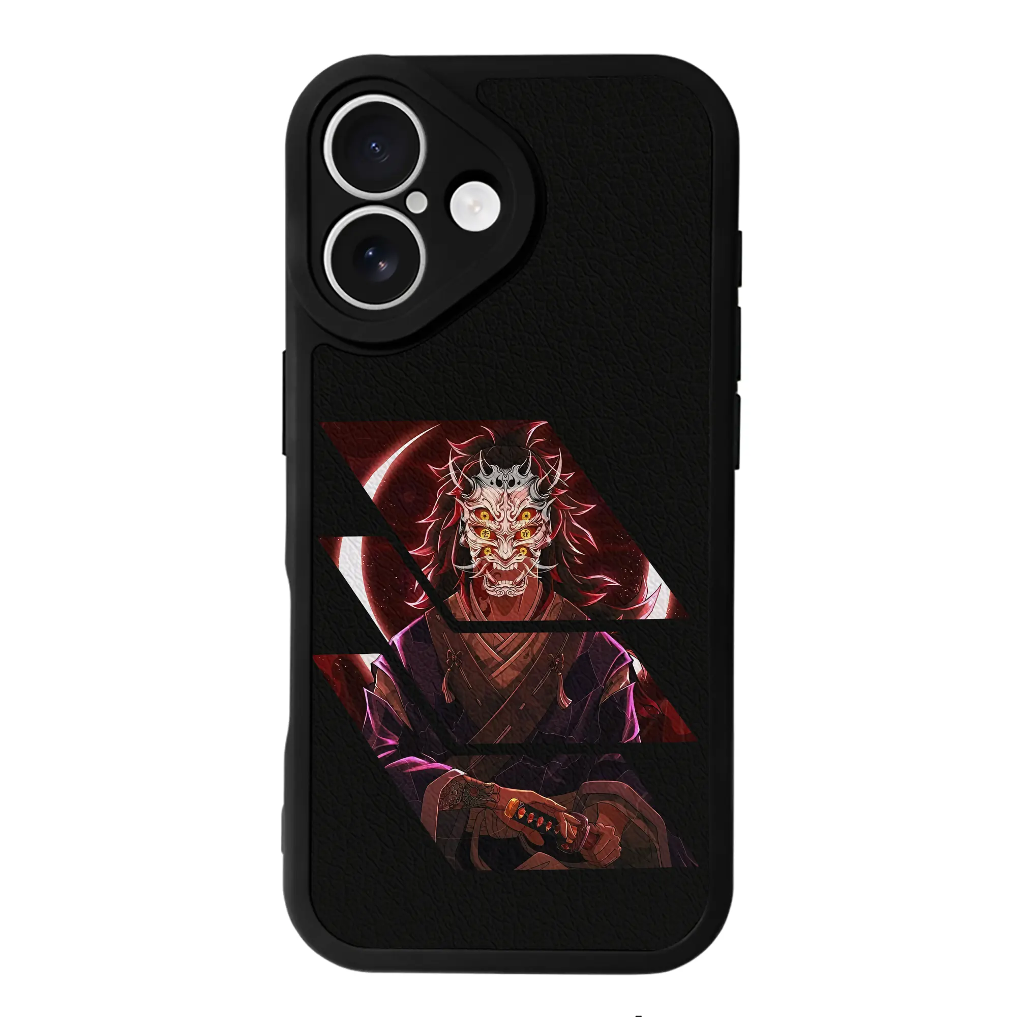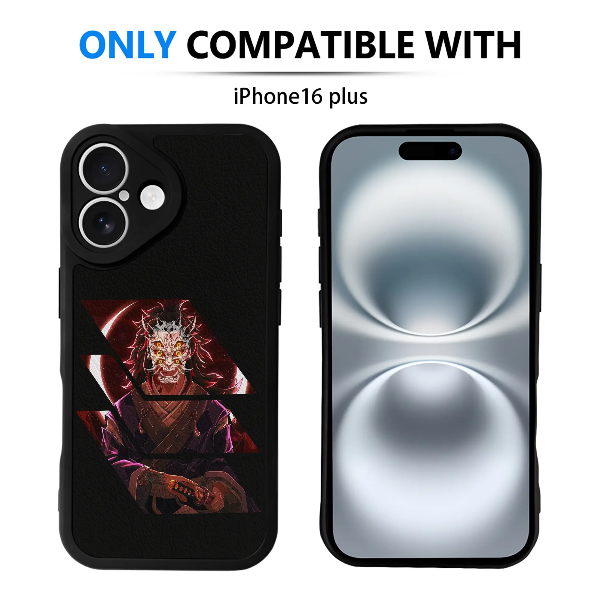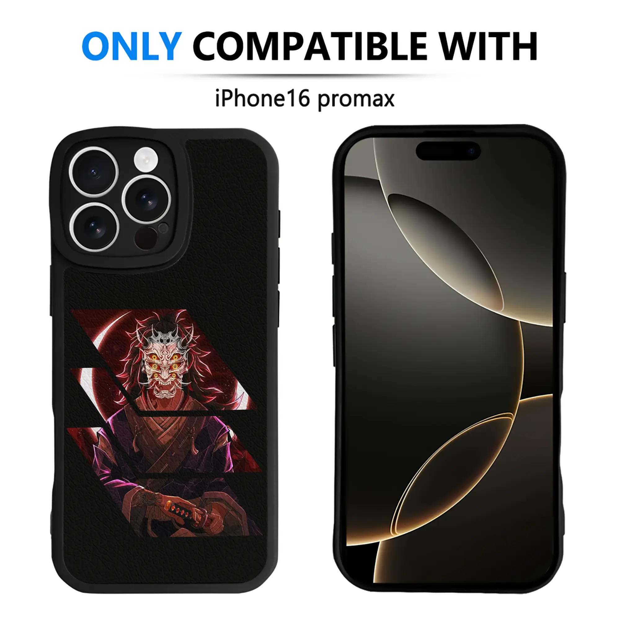 鬼滅の刃 グッズ,黒死牟 - IPhone 16シリーズ対応 ・ シリコンスマホケース ・ レザー調 ・ 高精度フィット ・ 耐衝撃 ・ ワイヤレス充電対応 ・ 精密カット